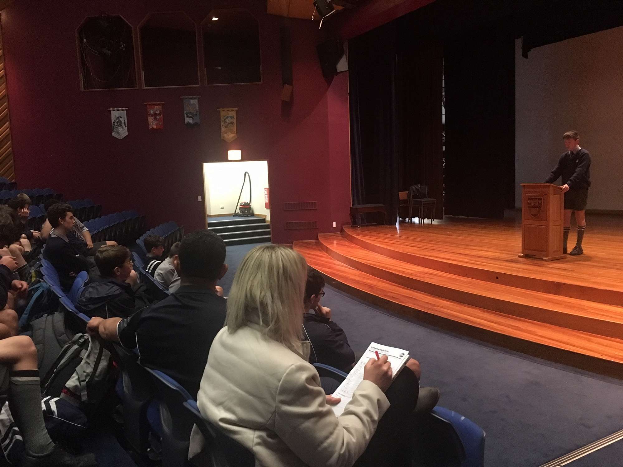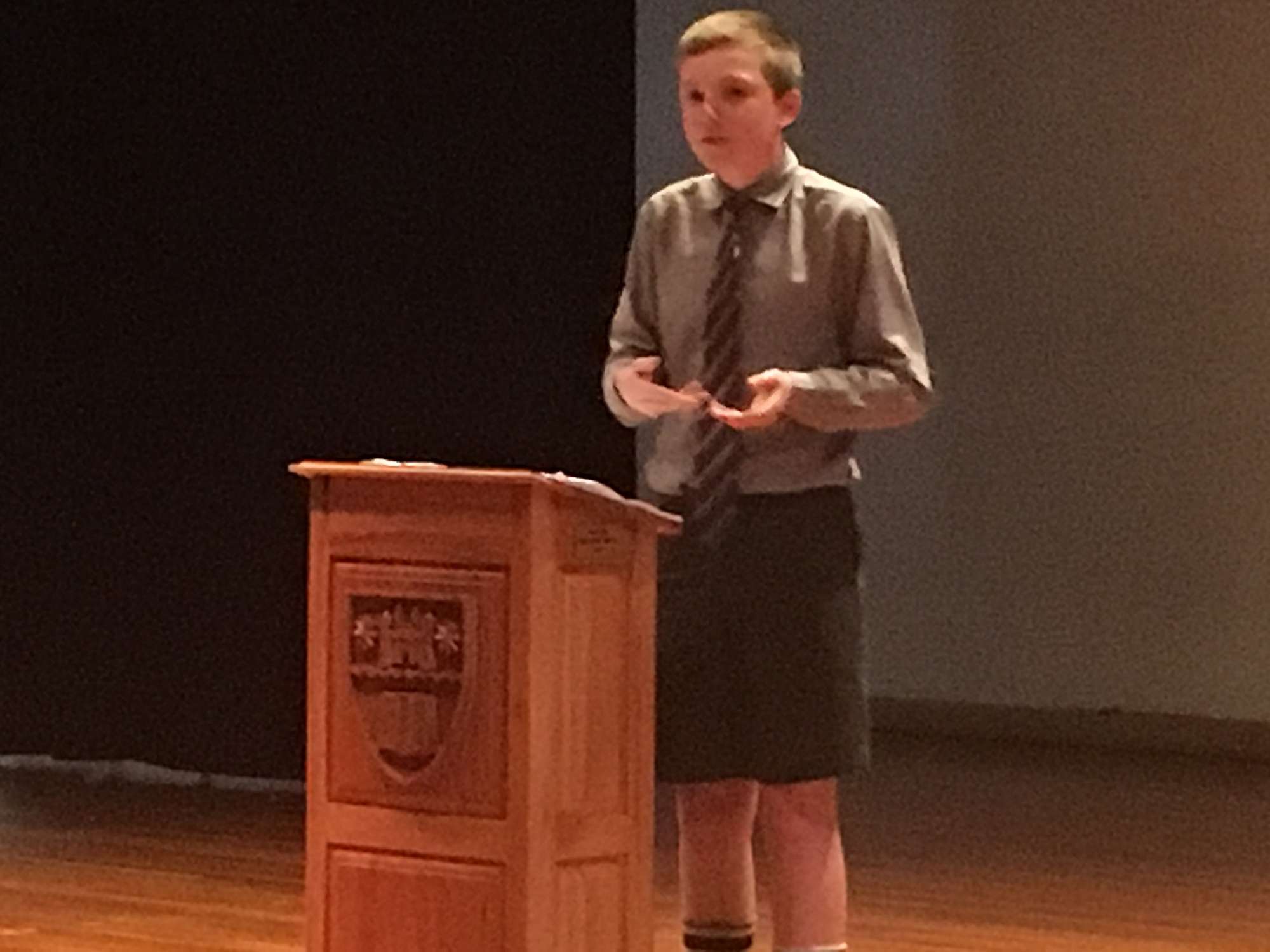 On Tuesday in the auditorium a large lunchtime crowd was treated to a feast of oratory as seven talented junior speakers battled it out in our annual public speaking competition.