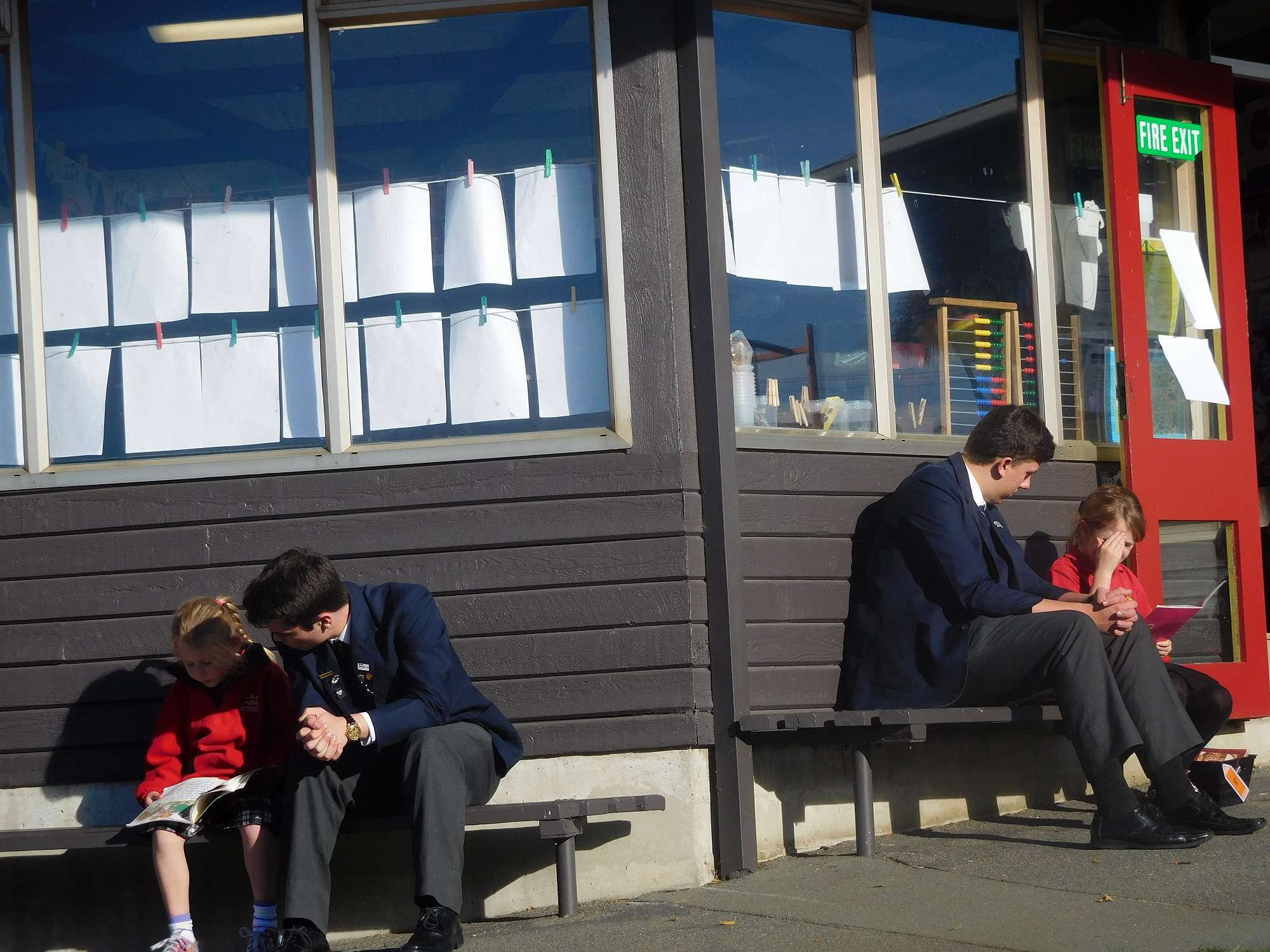 Year 13 students shared some reading time with pupils of Mornington School this morning.