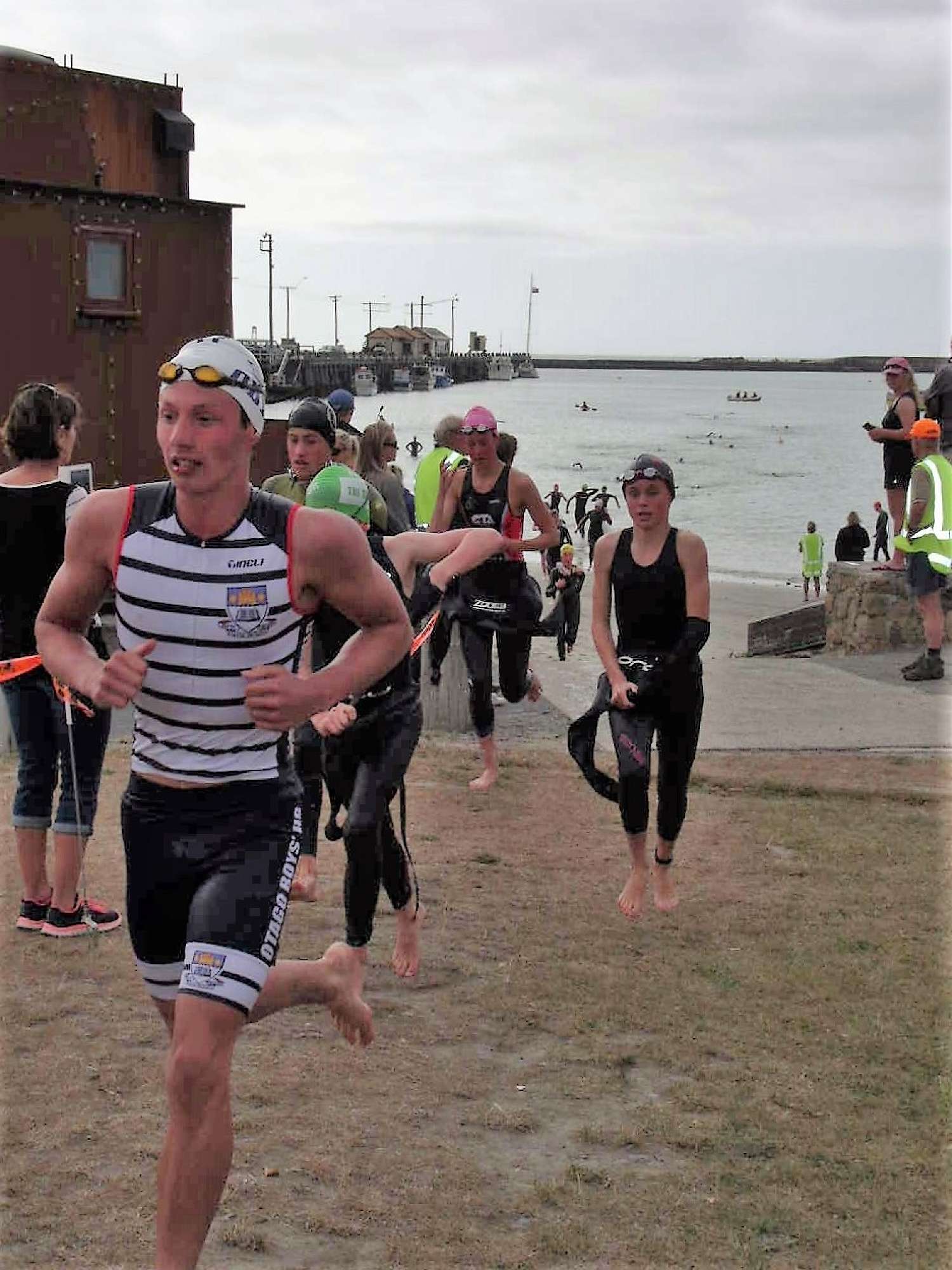 Bad news before the team had even departed. Louis Harris suffering a broken collar-bone and wrist while training on the eve of the race; our Intermediate boys’ team out.