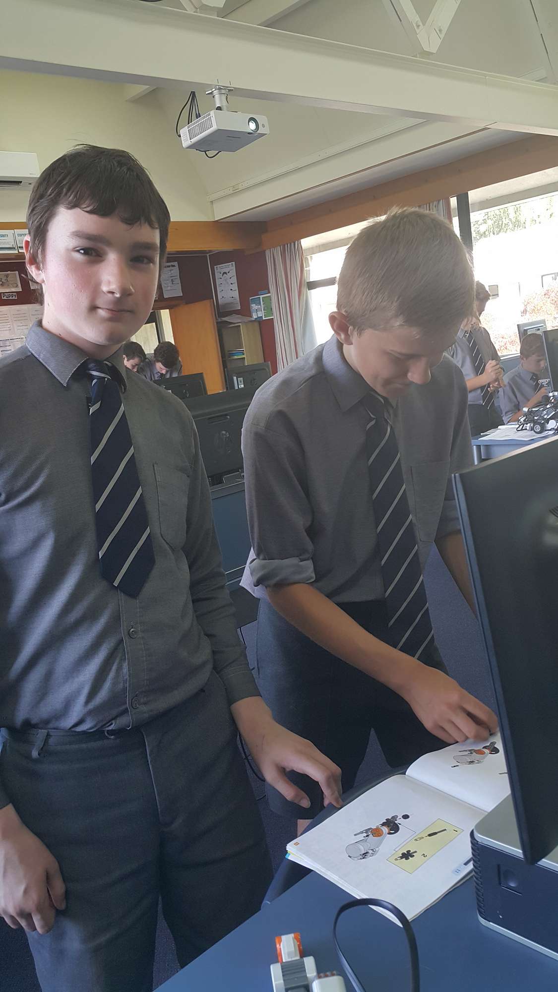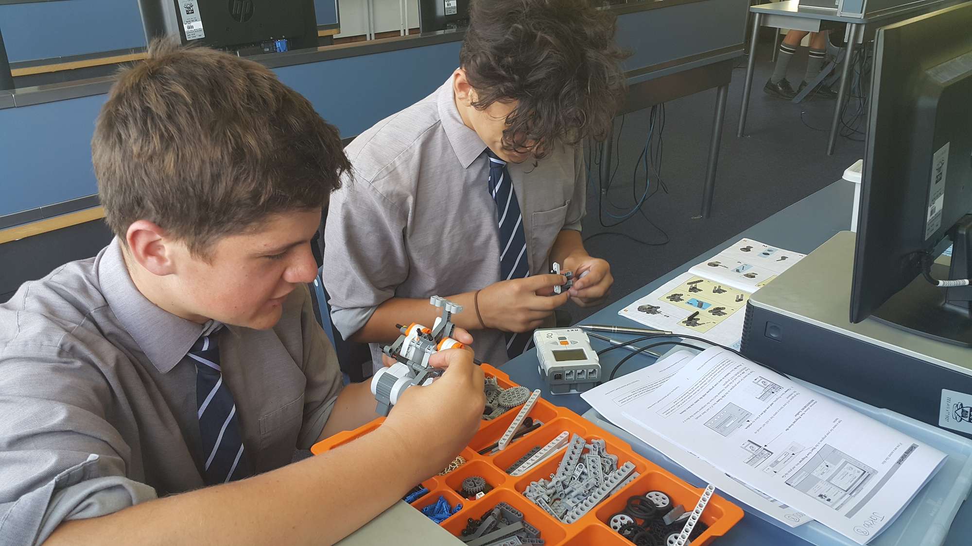 These Year 10 students are happily putting their building and problem solving skills to use. Through building and programming the NXT mindstorm the boys will prepare themselves for the ROBOCUP competition later on in the year. Competition will be rife once the boys begin completing the Green City Challenges!