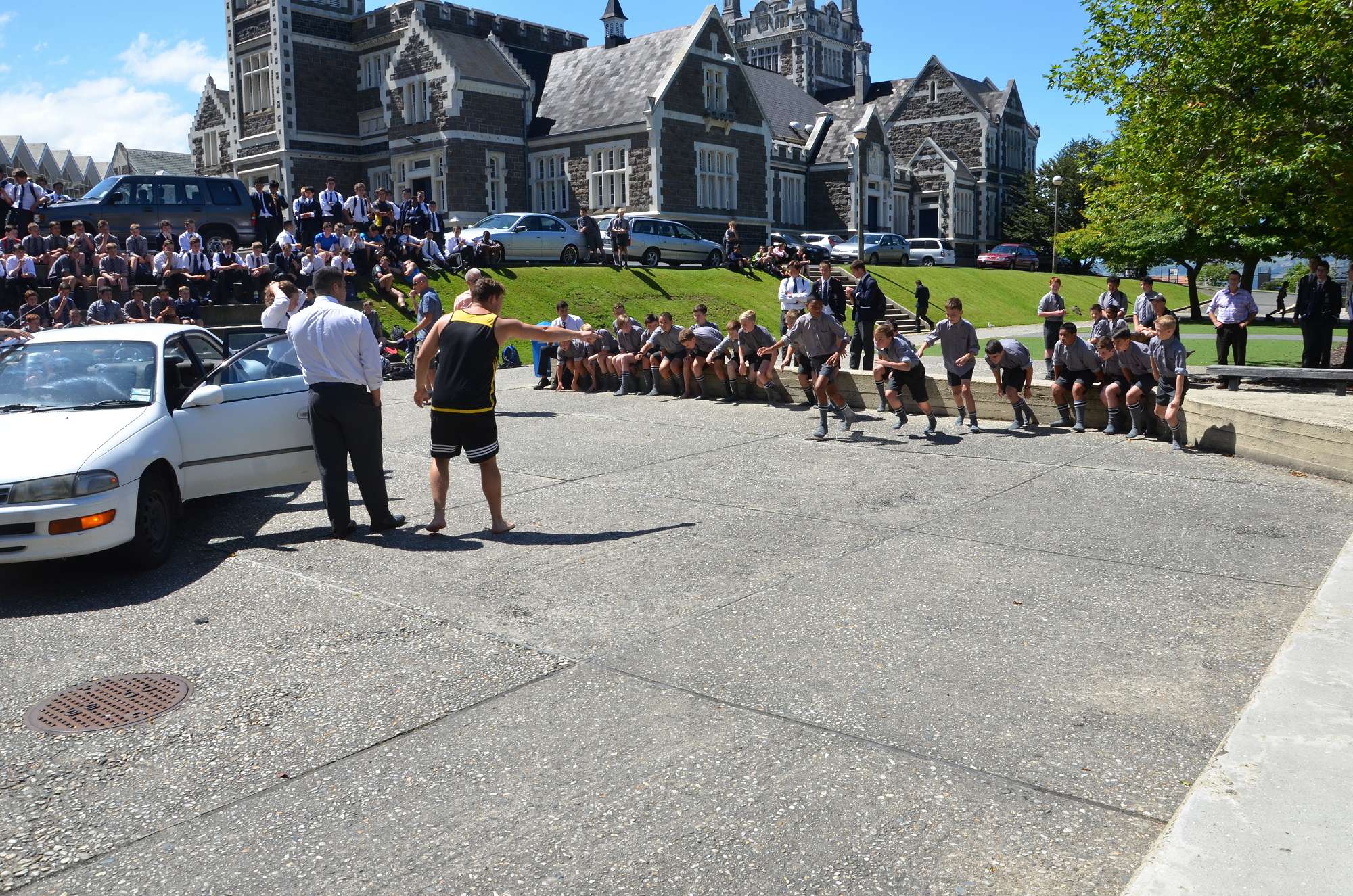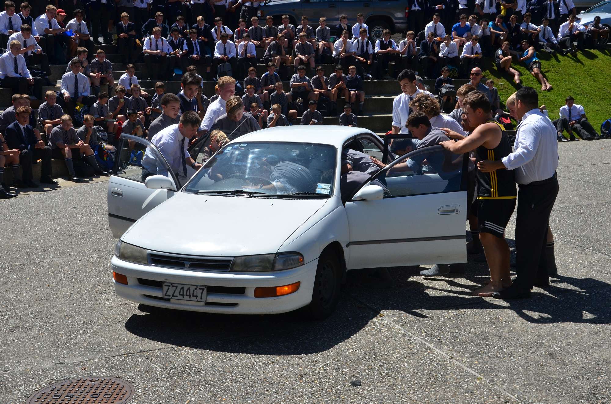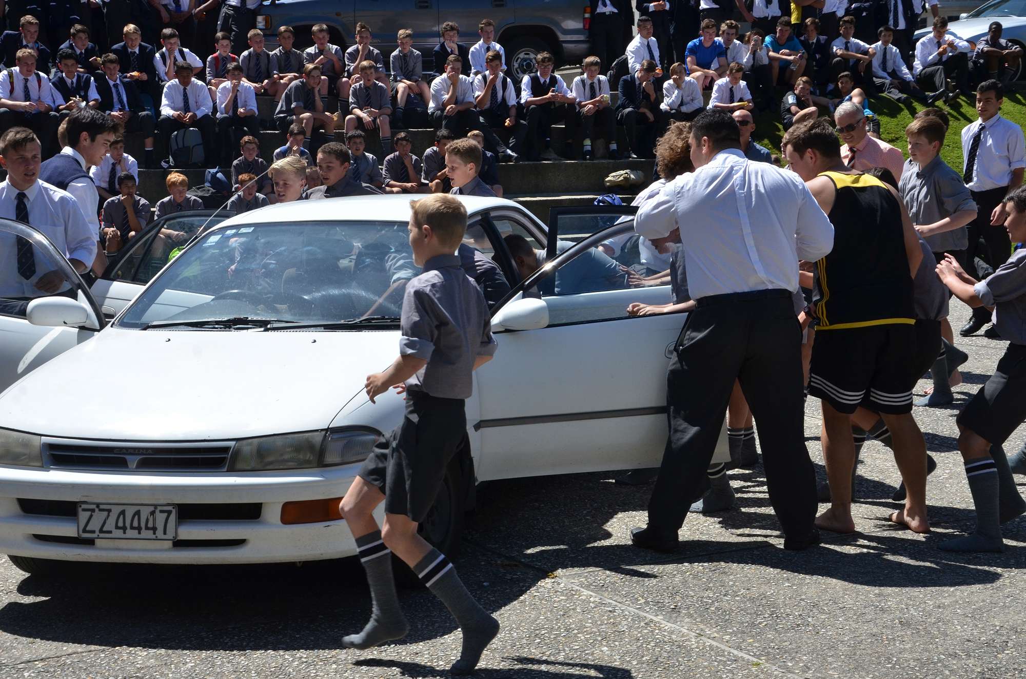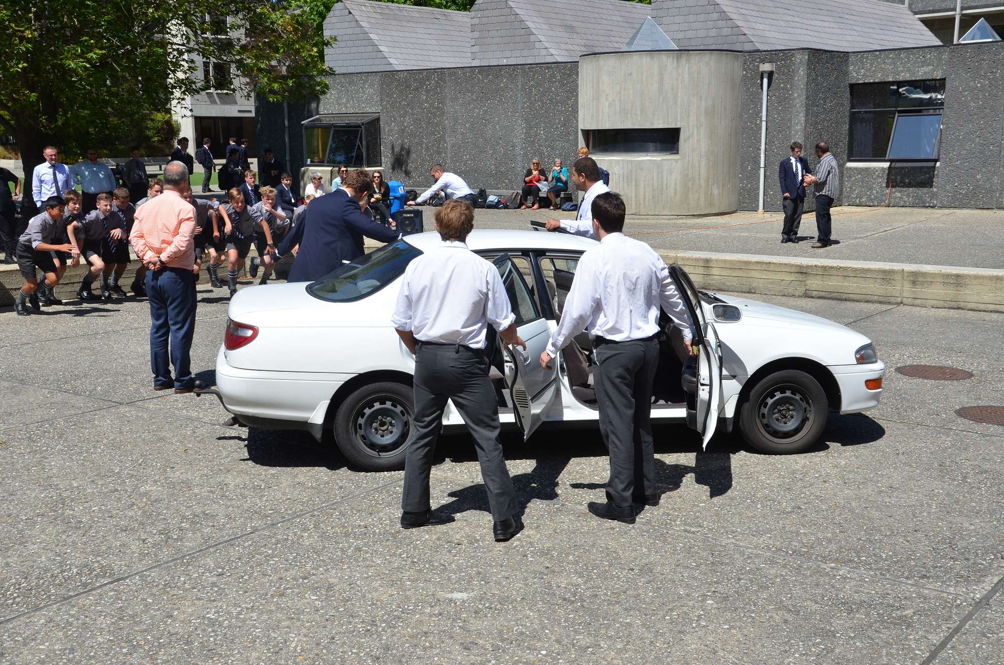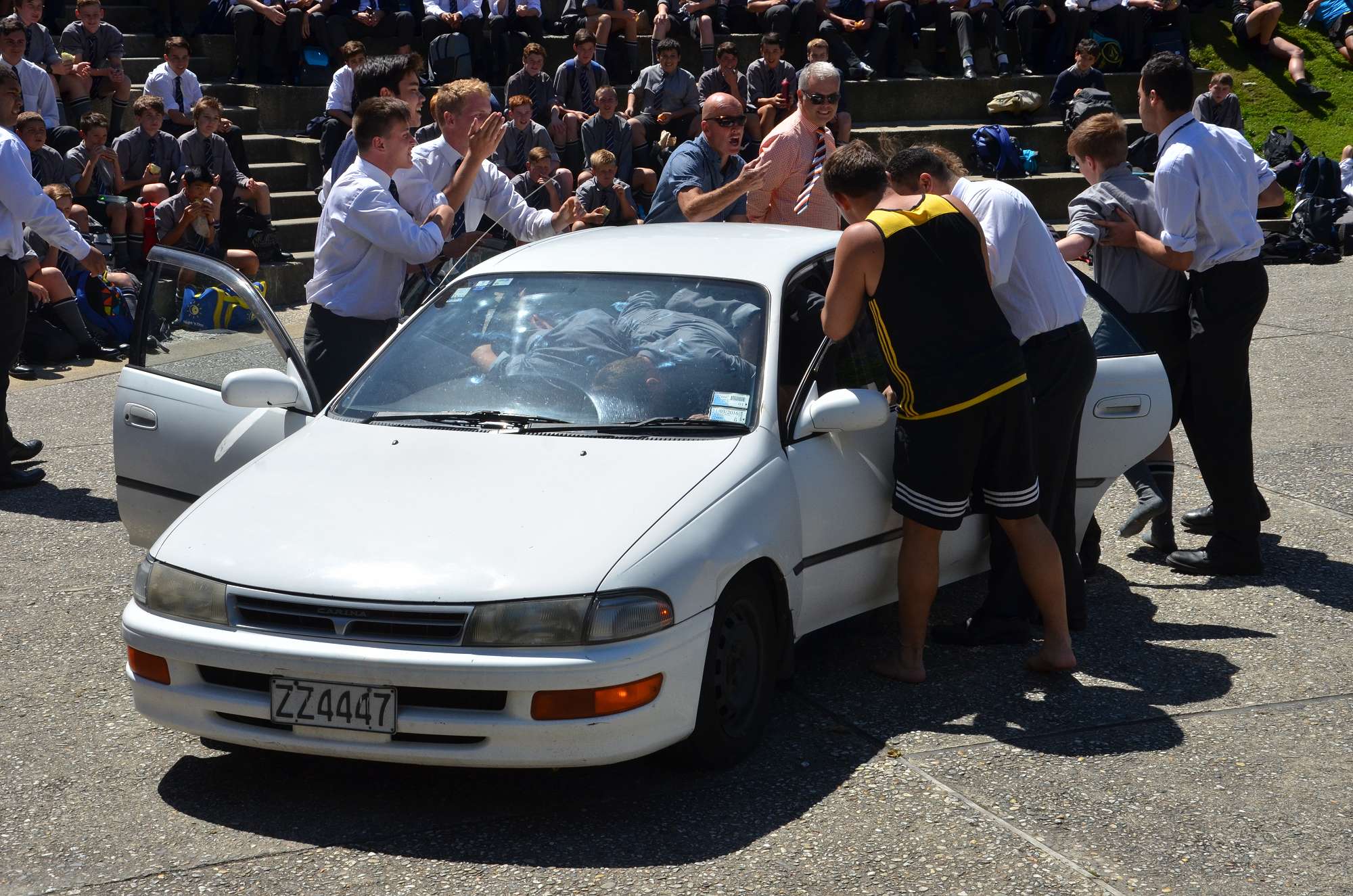 As part of our house competition house leaders tried to fit as many Year 9 boys as possibe into a staff member's car in 30 seconds. Park and McIndoe house teams both managed to squeeze 21 boys into the car. This made them 1st = in the house competition, ahead of both Saxton and Aspinall. All participants enjoyed themselves, showing huge smiles as they exited the vehcile at the end of each jam. The competition is sure to heat up in next Wednesday's House Sports Competition at the Caledonian Grounds.