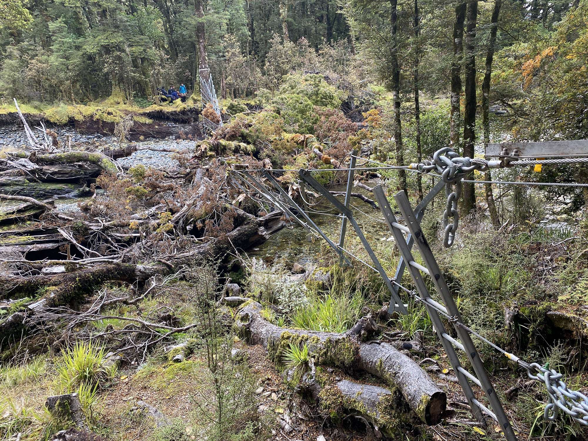 With our boat booked for 2:30pm, we were on the track early at 7:40am to make sure we would be in plenty of time. The going was much easier for most of the route with a reasonably gentle gradient following the Spey River downstream. One of the Day 6 obstacles thrown in our path was a very large tree which had completely destroyed one of the walkwire bridges. Fortunately, after 3 clear days (a Fiordland drought) the river level was low and fording the river was an easy option. We made it out to the Deep Cove road around 12:30pm, but sought the sanctuary of the West Arm Hut for our lunch so we wouldn’t be eaten before we had the chance to eat ourselves. Our boat transfer was right on time, we had a smooth crossing back to Manapouri, arriving back in Dunedin at 8pm.