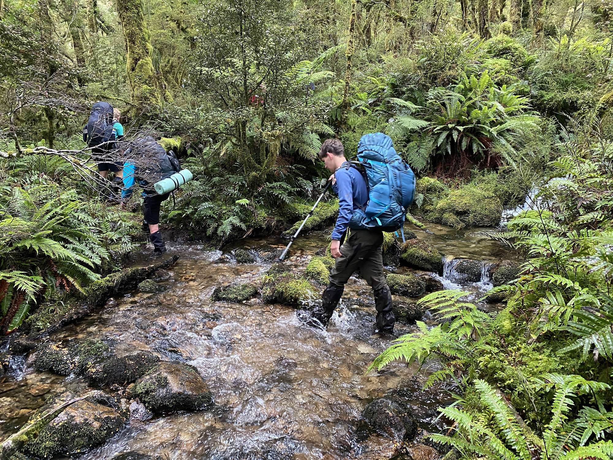 After some robust debate we abandoned our original ambitious plan of trying to fit in a day return trip from Loch Maree to Supper Cove in Dusky Sound, and instead decided to proceed onwards to Kintail Hut on Day 4. This was our longest day distance wise, but also relatively flat as we followed the Seaforth River upstream. One extremely gnarly section leading up to Gair Loch had us questioning the definition of “flat”, and even the track guide description of “rough”. All of us braved the refreshing waters of the Seaforth River that night to have a wash and so the aroma in the hut was much more pleasant that evening.