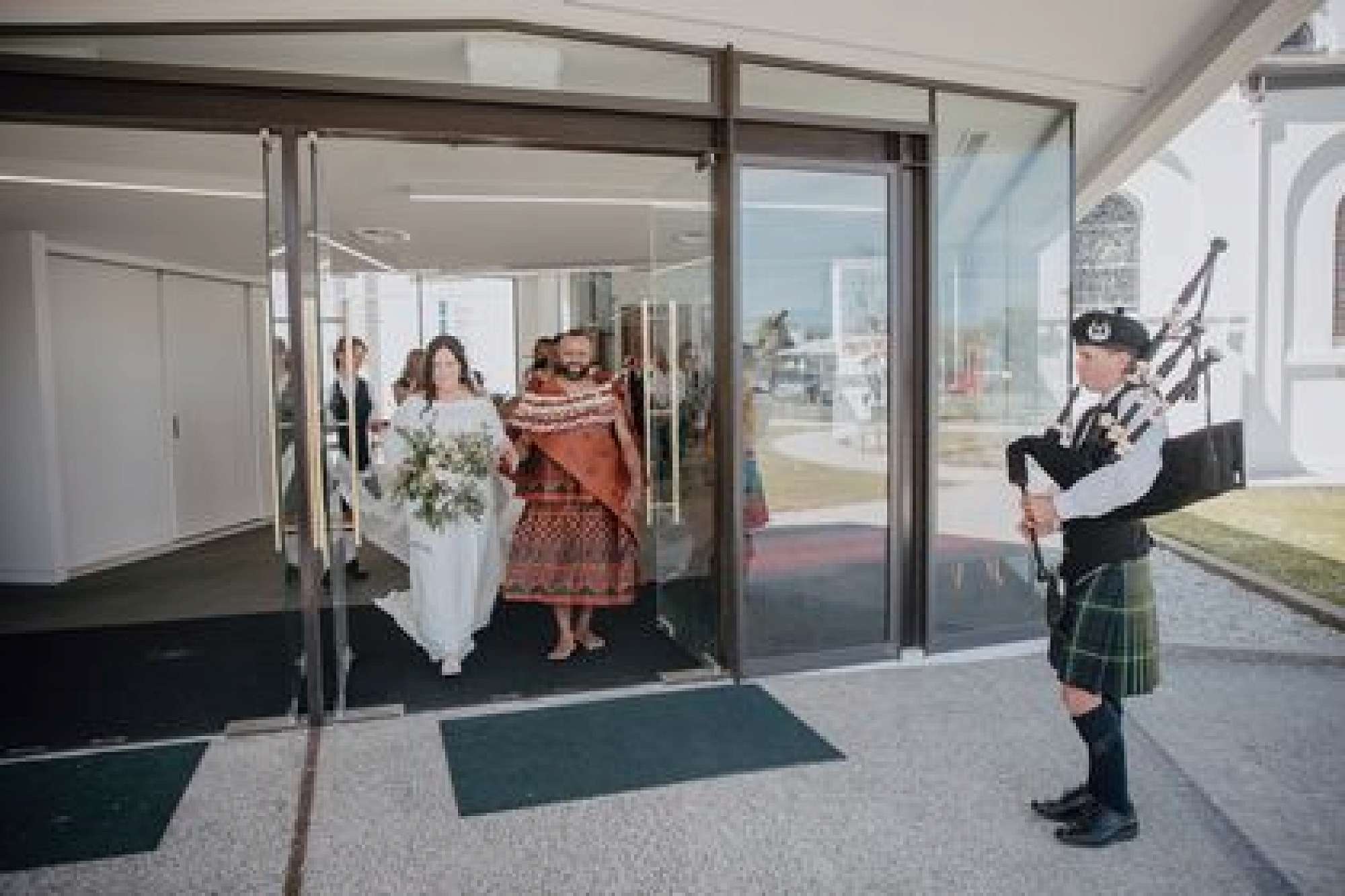 The wedding saw the union of Fijian and Scottish cultures. Hunter piped around the grounds of St Patrick’s Basilica as guests arrived, and at the end of the ceremony, the sound of the pipes in the church was stirring and memorable, especially so for our Scottish family.
