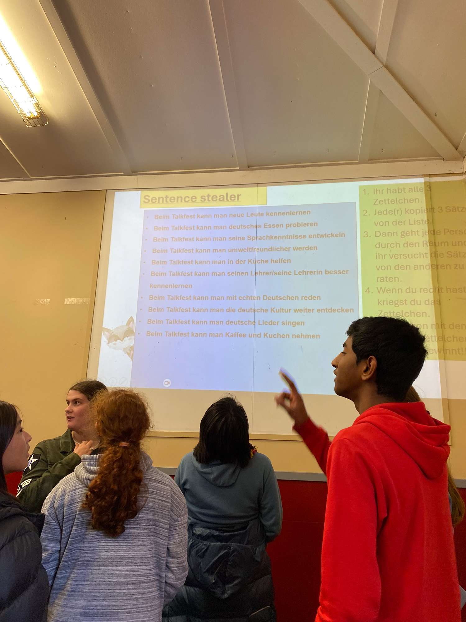 Students participate in several games and activities carefully designed to encourage them to speak as much German as they can. This is an invaluable confidence booster before students embark upon internal speaking standards for NCEA such as speech delivery and interactions with partners.
