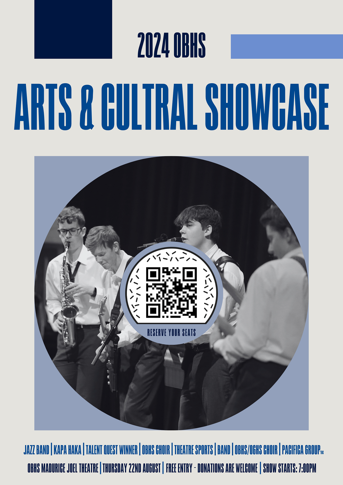 Join us in the OBHS Maurice Joel Theatre on Thursday, 22 August for an evening filled with talent, movement, and fun, showcasing the best of what our students and school has to offer. This in-person event is a celebration of art, music and culture. Support musicians and performers as they share their passion with you. Don't miss out on this exciting opportunity to immerse yourself in the vibrant arts and cultural community of our school.
