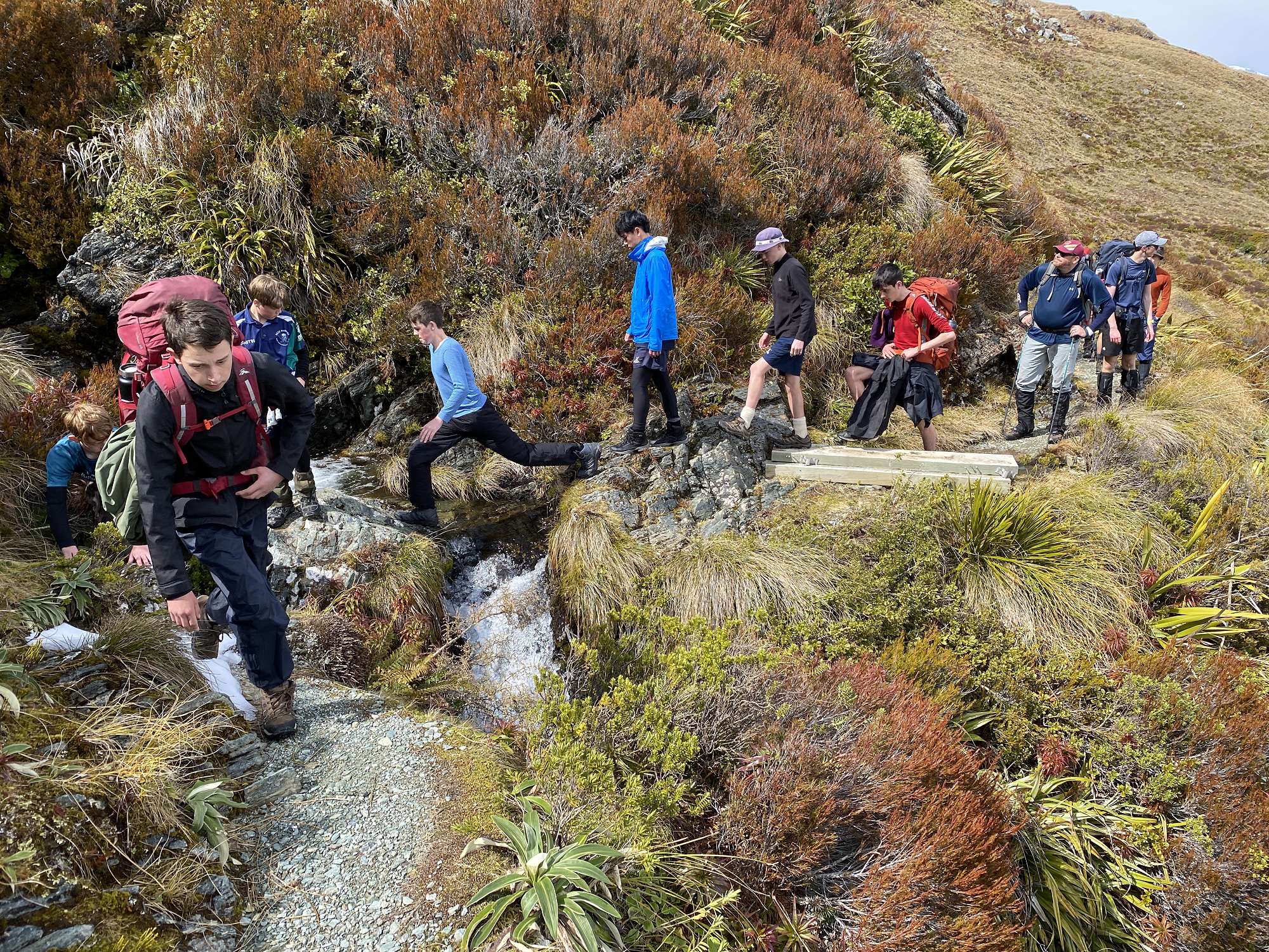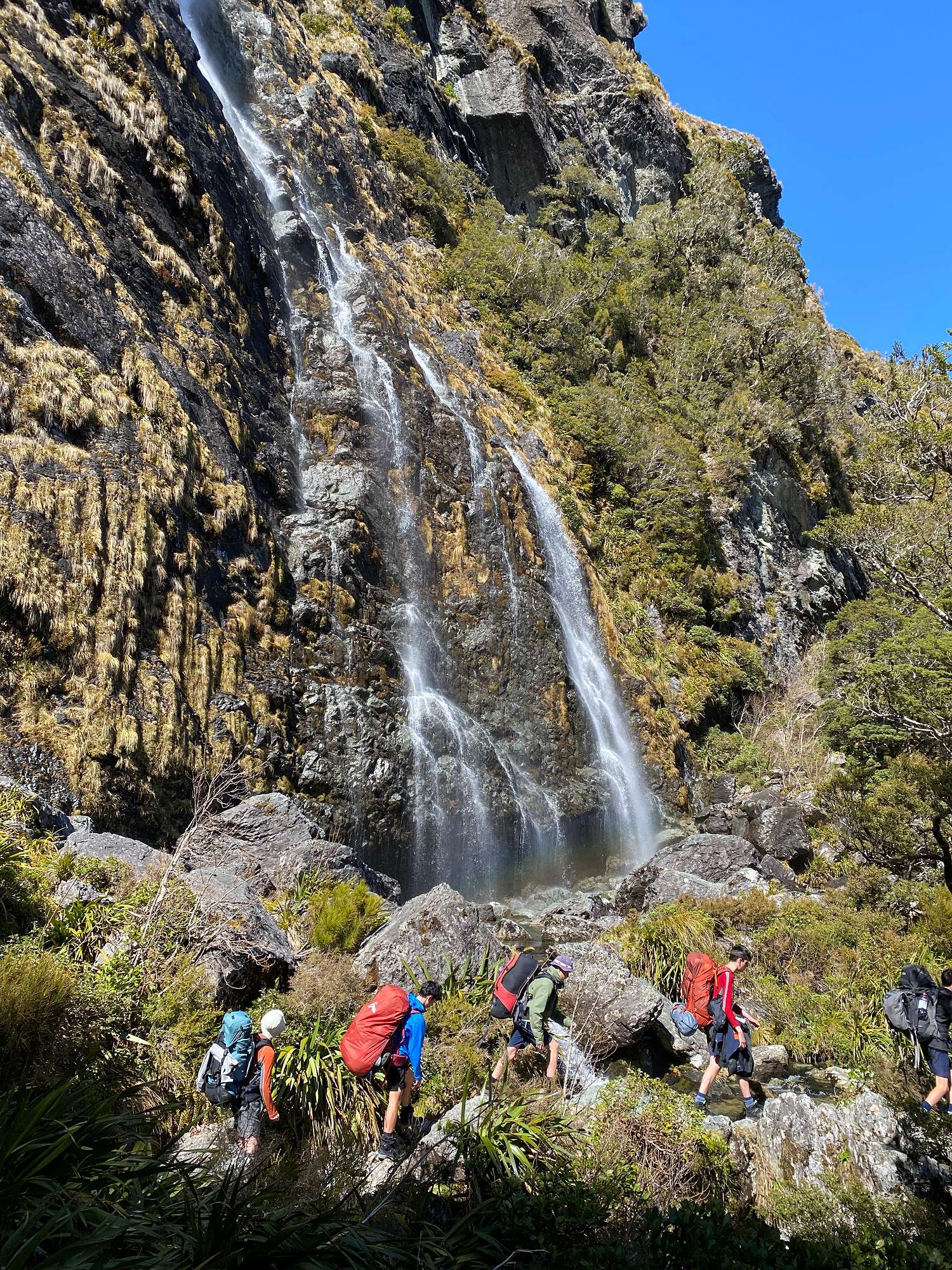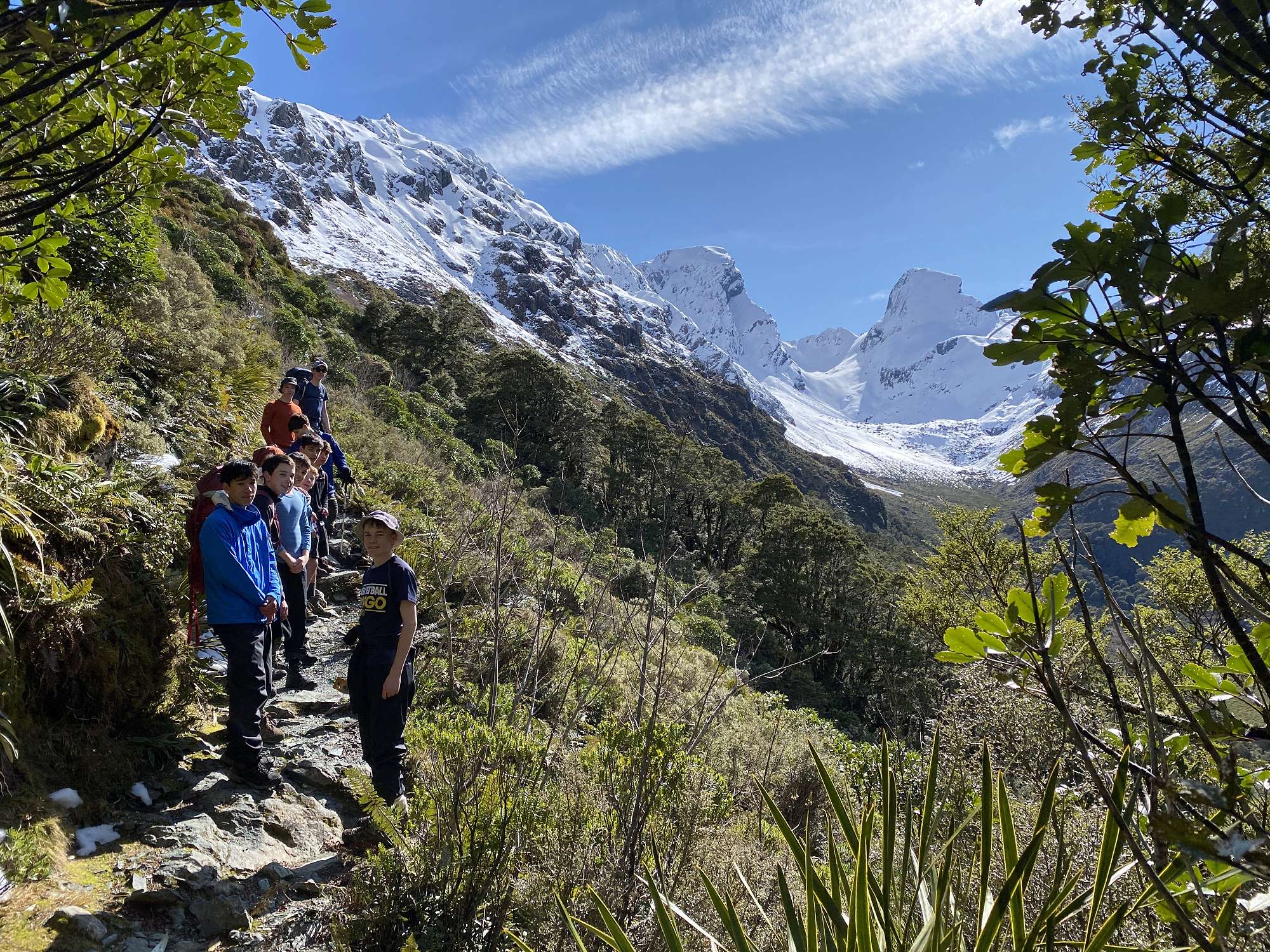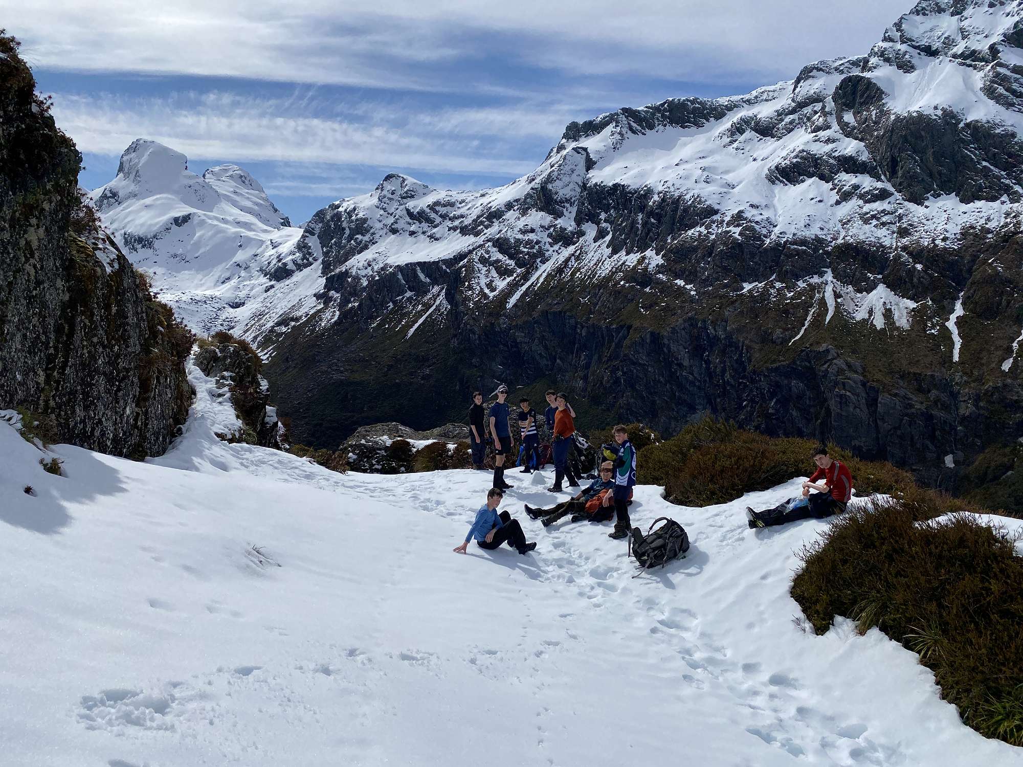 Eleven members of our Duke of Edinburgh Award tramping group thought so anyway and set off on the last day of the holidays to explore the Routeburn Track area. Despite a questionable weather forecast and even some snow flurries on the drive southwest, spirits were high as we set off from The Divide just after 1pm. The clouds even cleared enough to make a scenic side trip up Key Summit worthwhile. Progress was slowed significantly as we negotiated our way around a large slip that had taken out a chunk of the track, then it was pretty easy going from there on. The 174m high Earland Falls were looking magnificent, and the sun came out in the late afternoon for some stunning views of a calm Lake Mackenzie which was where we would spend the first two nights. Based on a forecast which had promised overnight snow to low levels, we had ditched the tents in favour of accommodation at the Lake Mackenzie Hut. As it turned out, all we had to endure was a couple of cracking frosts and not a drop of precipitation the entire trip.