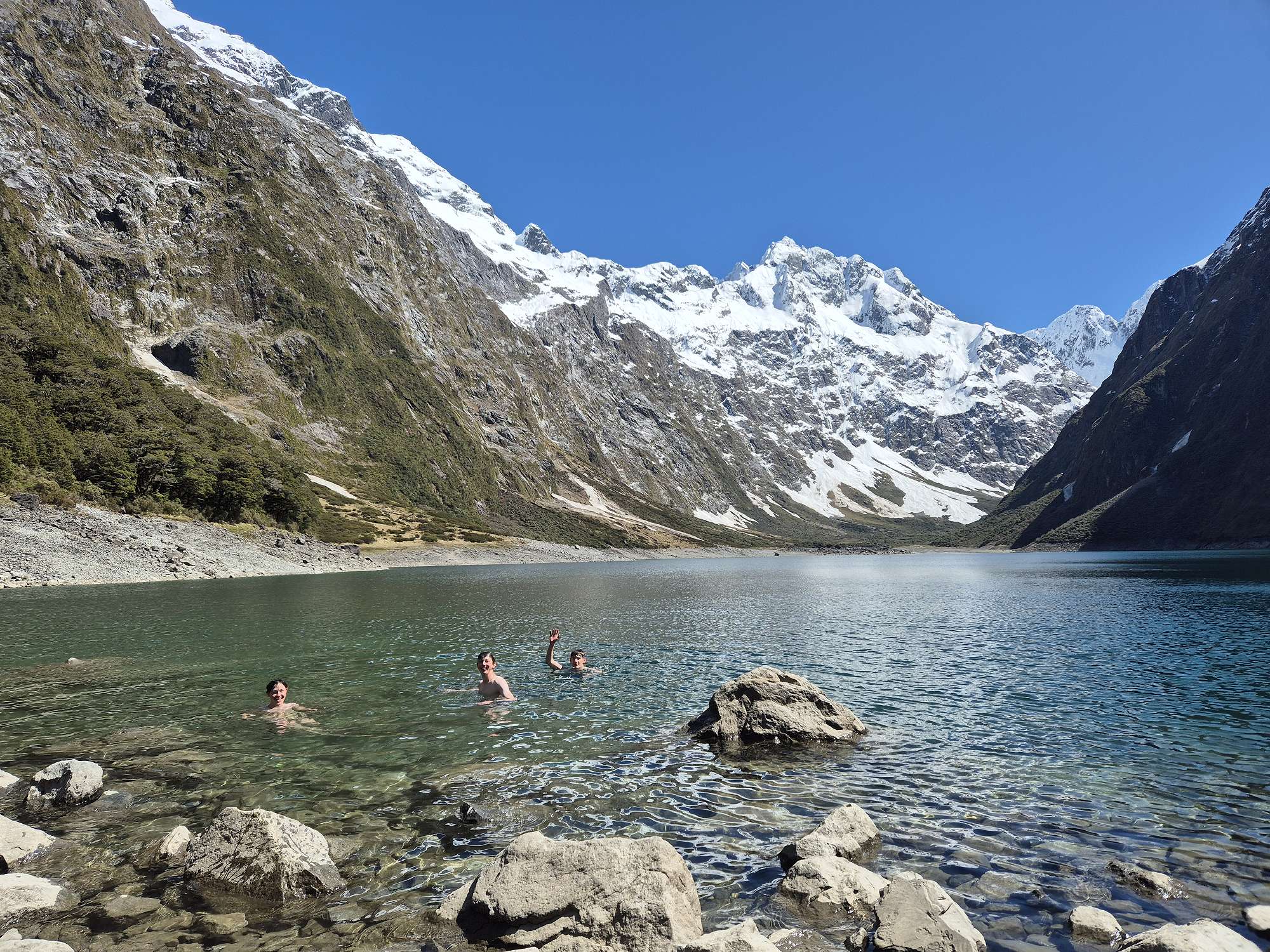 On our final day, after dismantling tents and packing gear into the van, we drove back towards the Milford Road and tackled the track up to the picturesque Lake Marion for lunch. Several boys chose to cleanse themselves in the icy waters once again, which was definitely appreciated for the long van ride home.