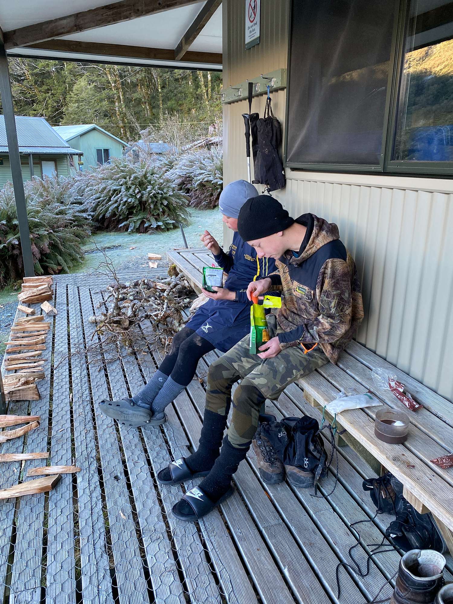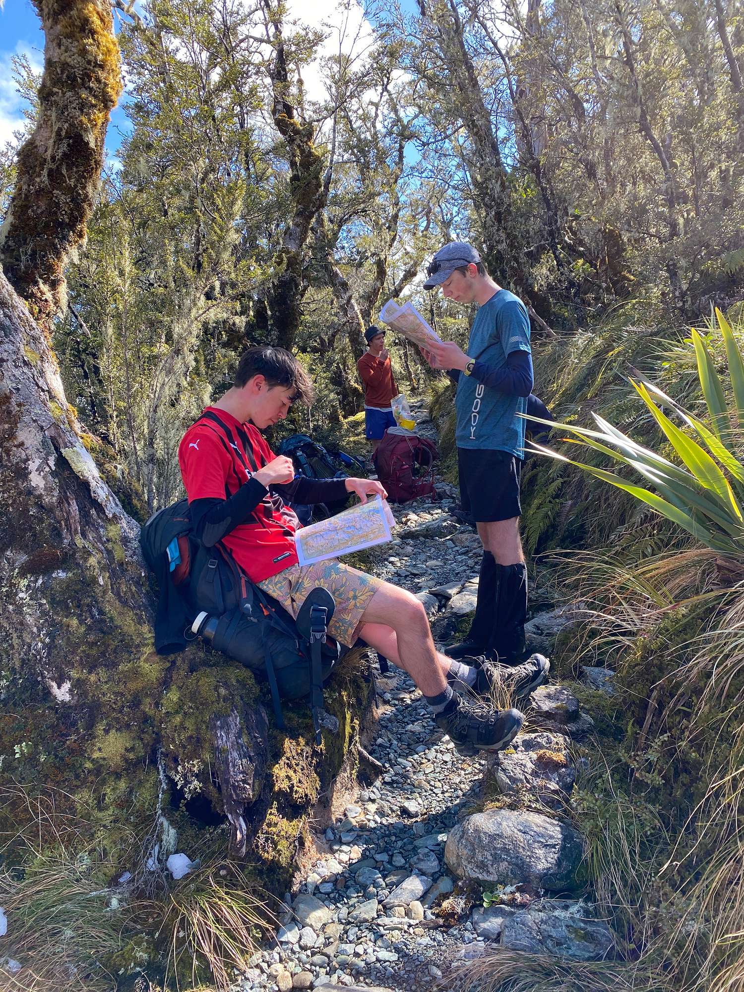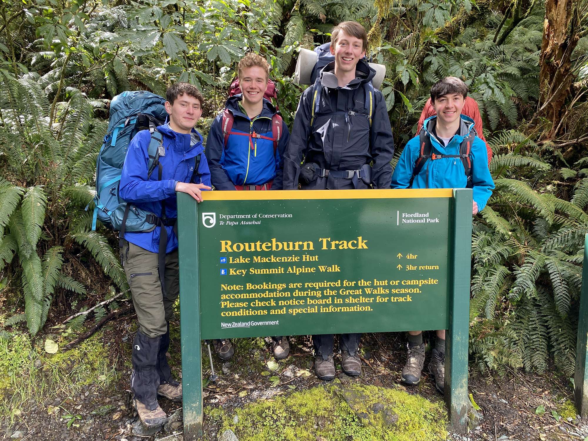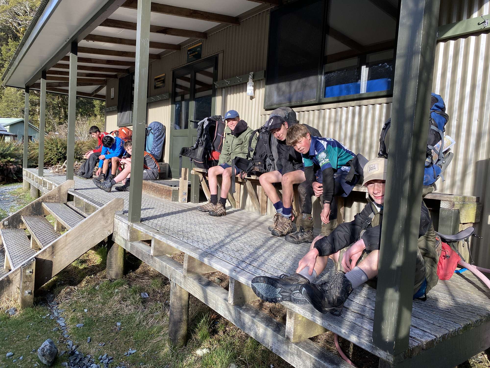Day 3 saw us retracing our steps to The Divide, with another stop at Earland Falls and lunch at the site of the demolished hut at Lake Howden. From here the Year 13 group took the Pass Creek track down to the Hollyford Road, and the rest went back up to Key Summit to appreciate even better views without the cloud cover from the first day. That evening we drove down to the derelict Gunn’s Camp (destroyed in a landslip almost 5 years ago) and set up camp there beside the Hollyford River.
