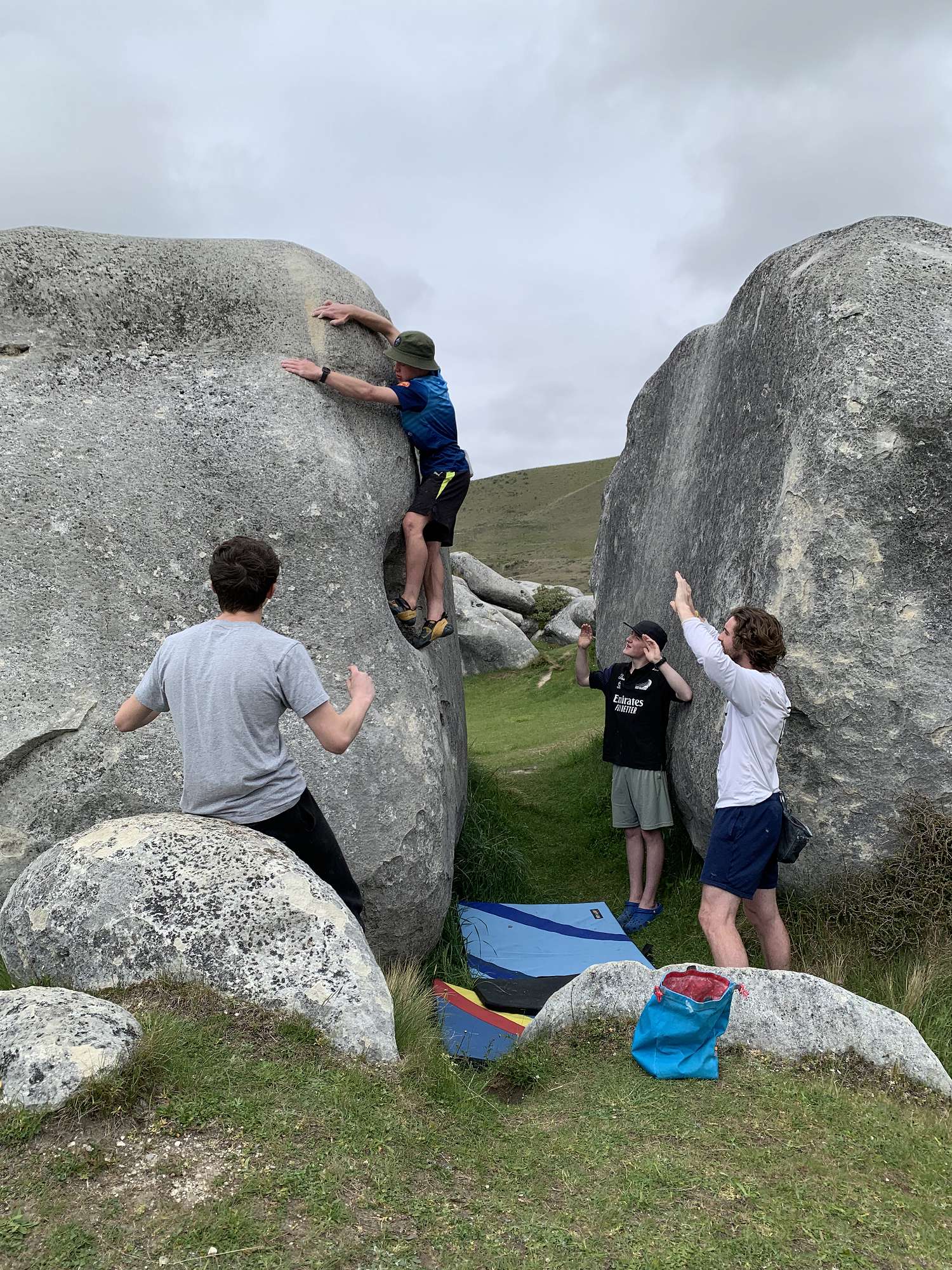 Saturday was a day spent in the Quantum Field trying as many boulder problems as possible. The weather was perfect, the climbing challenging and the smiles big. A highlight was Flynn, Luca and Mr Adler climbing the slab classic “Bliss”. In the afternoon we were joined by 2023 Old Boys James Huyler, Connor Purvis and Jensen Smith along with Summer from OGHS. This added to our fun group exploring all that was to be climbed. The day finished with the classic fun problem called, “Run and Jump” which provided a lot of entertainment.