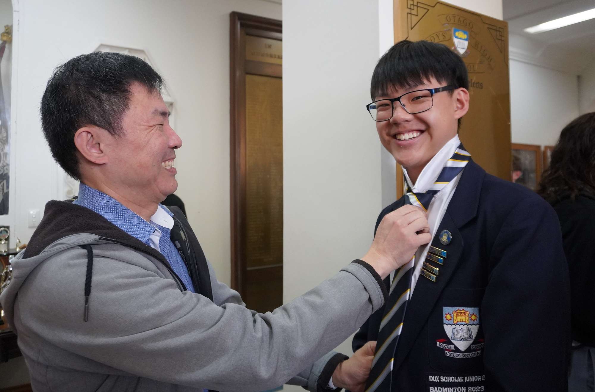 Each young man was presented with his prefect tie and badge. These two items represent the contract between them and the school; that they will always uphold our values, that they will be honest and truthful, and most importantly, that they have a community of people behind them who will support them.