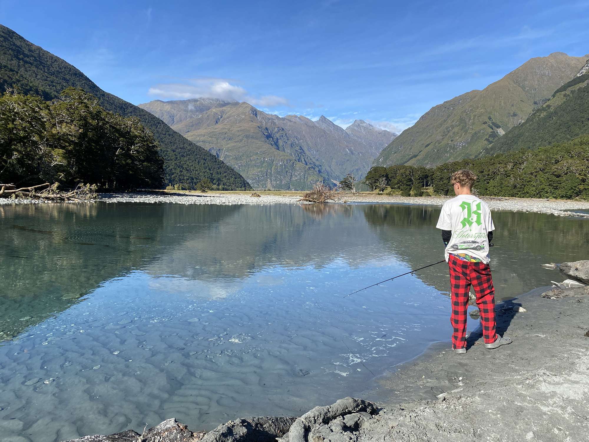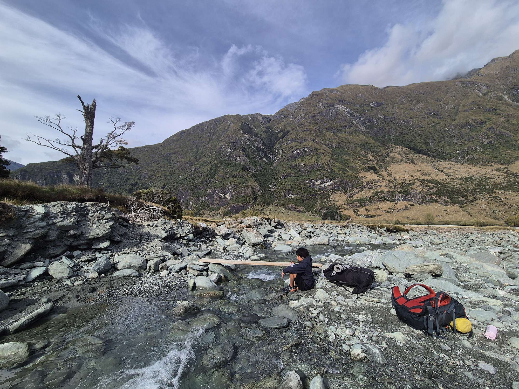 We were very lucky with the weather. Normally in April we would expect frosts in the morning and snow on the hills keeping daytime temperatures down. Instead, we were treated to mild conditions which until the second last day meant we could get out and enjoy all that the Matukituki Valley had to offer.