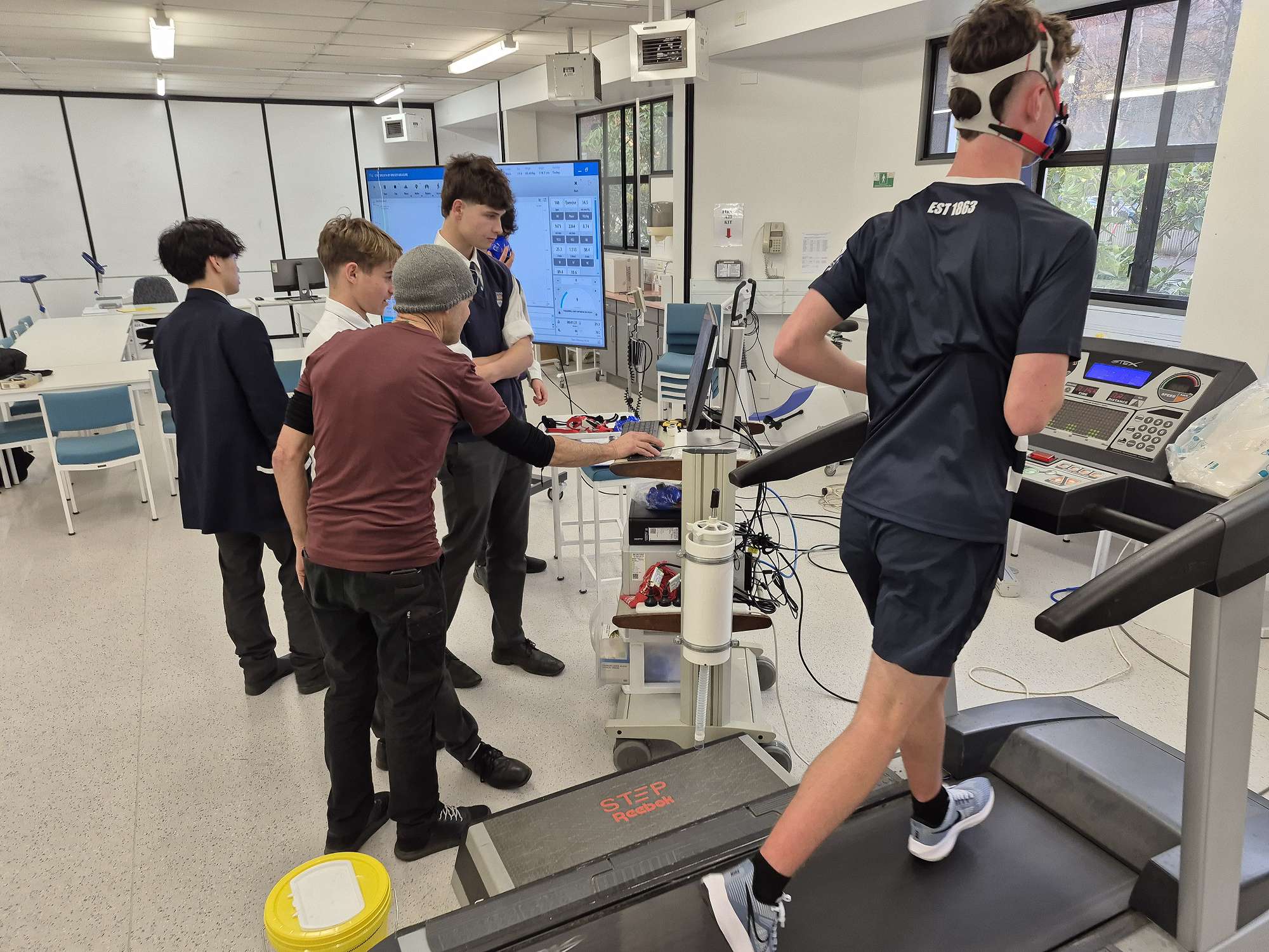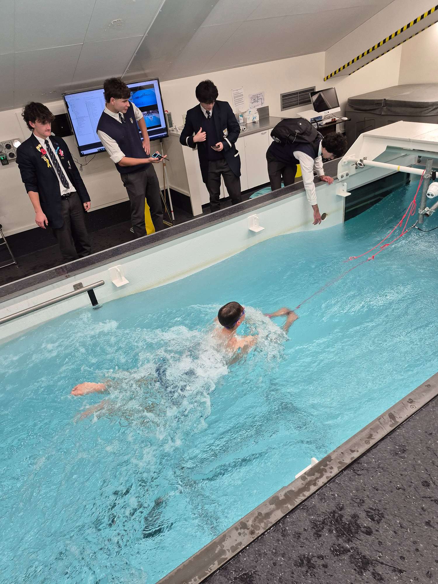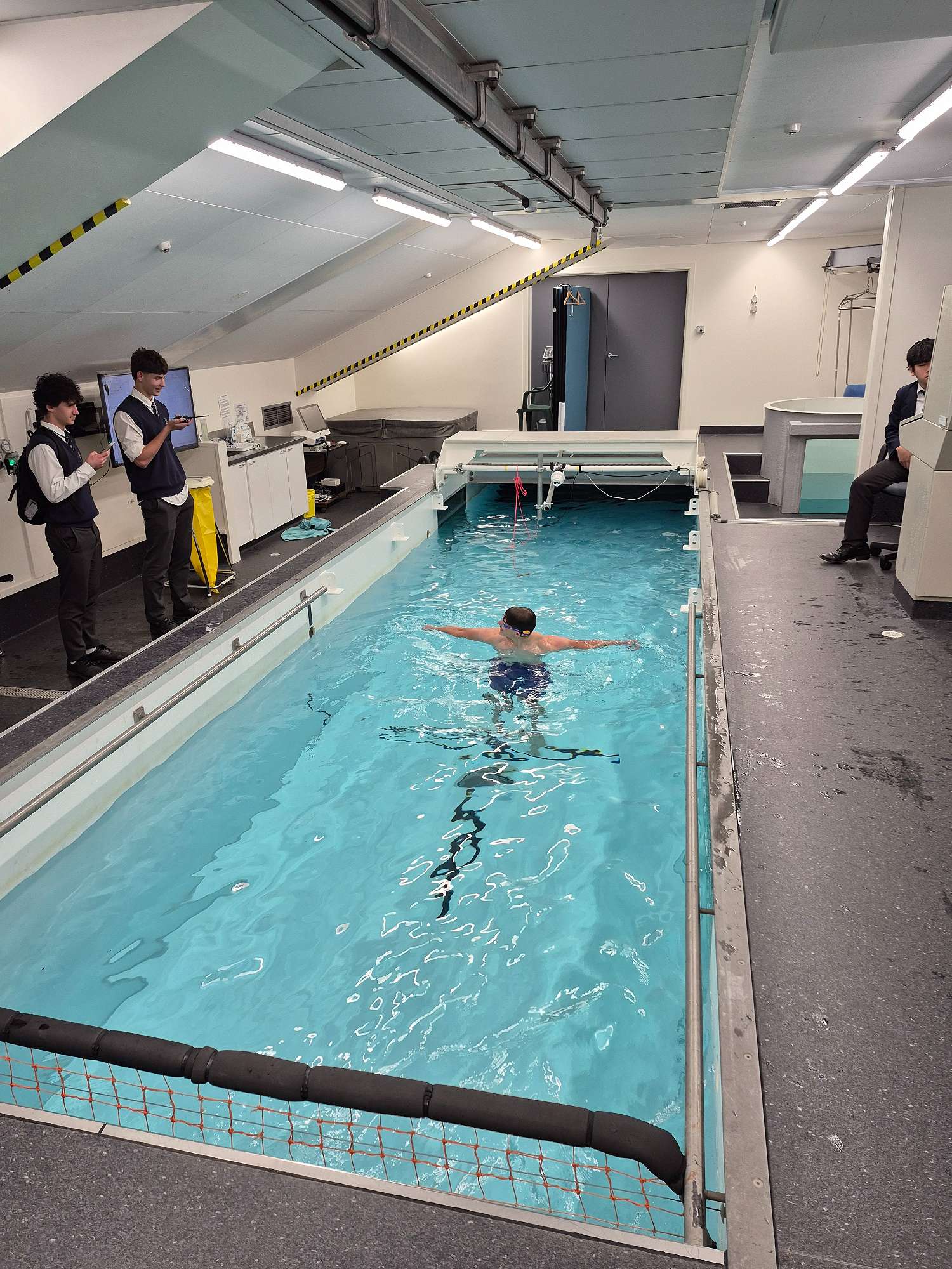 In the afternoon, students visited the University of Otago School of Physical Education, Sport and Exercise Sciences. It was a hands-on experience where students engaged with practical applications of what they’ve been learning. Volunteers Brayden Thorburn, Toby Kerr, Victor Edwards, and Vance Butler took part in VO₂ max testing and flume drag analysis, while their group members operated equipment and recorded data. Brayden recorded an impressive VO₂ max of 66.4 mL/min/kg—surpassed only by Ruie Hyslop, who achieved 70.6 mL/min/kg in Tuesday’s testing with Mr McGarry’s class. Both students recorded values in the top 1% for their age group, highlighting the high level of aerobic fitness within our cohort (the population average for their age group is 44.9 mL/min/kg).