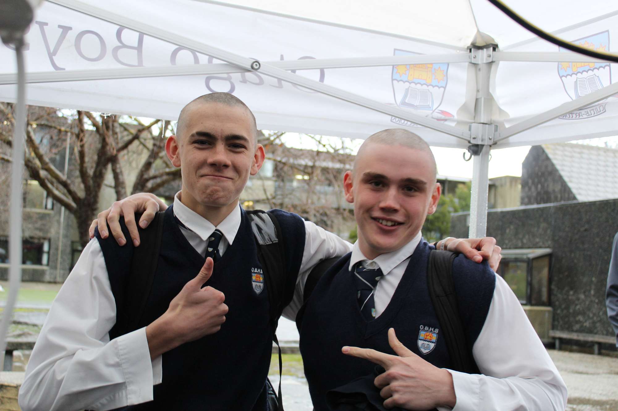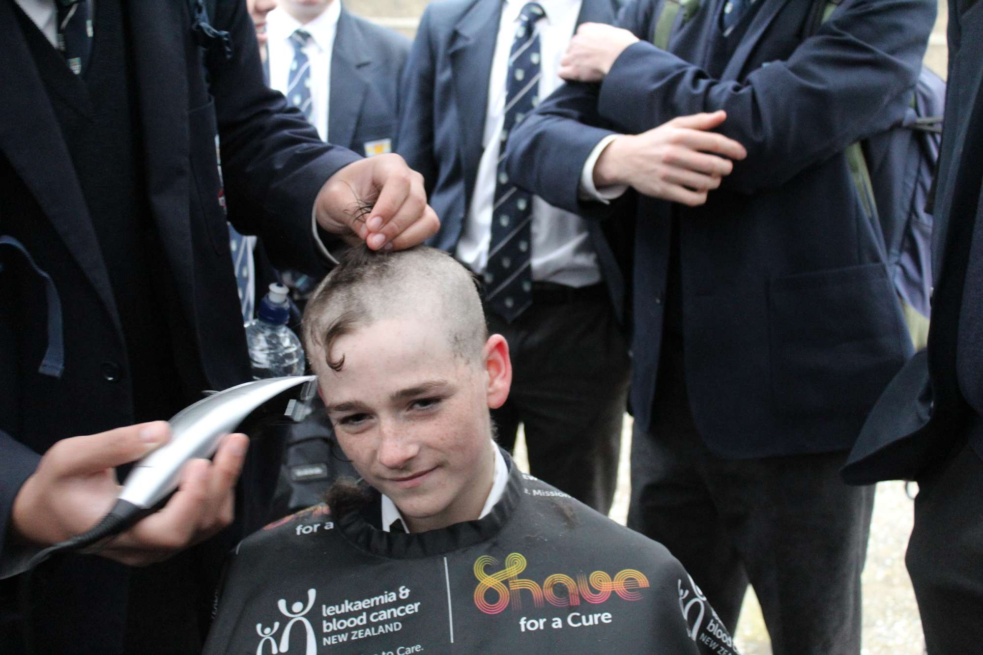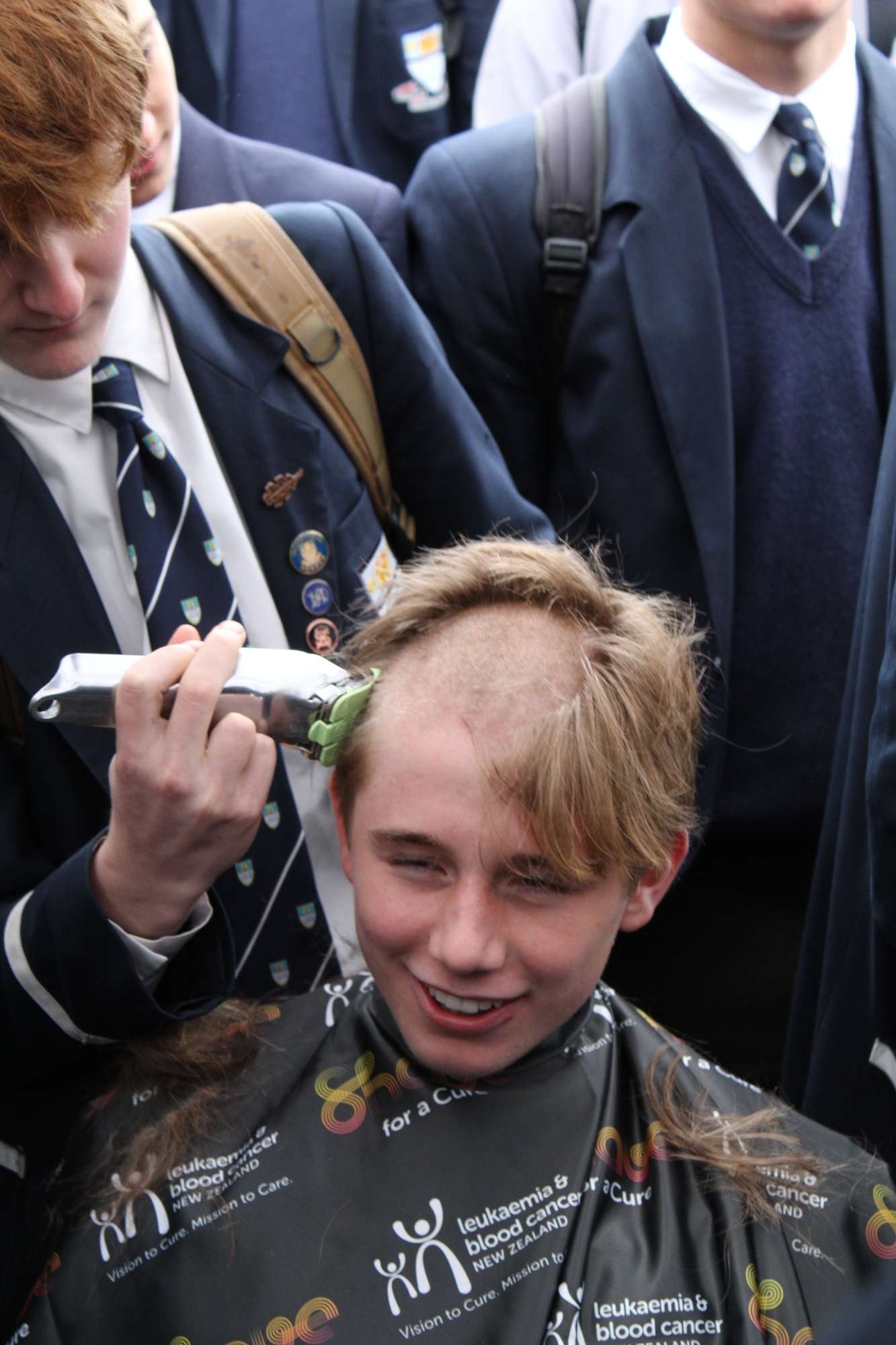 Last Friday, June 6th, over 45 Otago Boys’ High School students braved the cold and rain in the school’s open-air theatre—and shaved their heads in solidarity with those facing these illnesses.