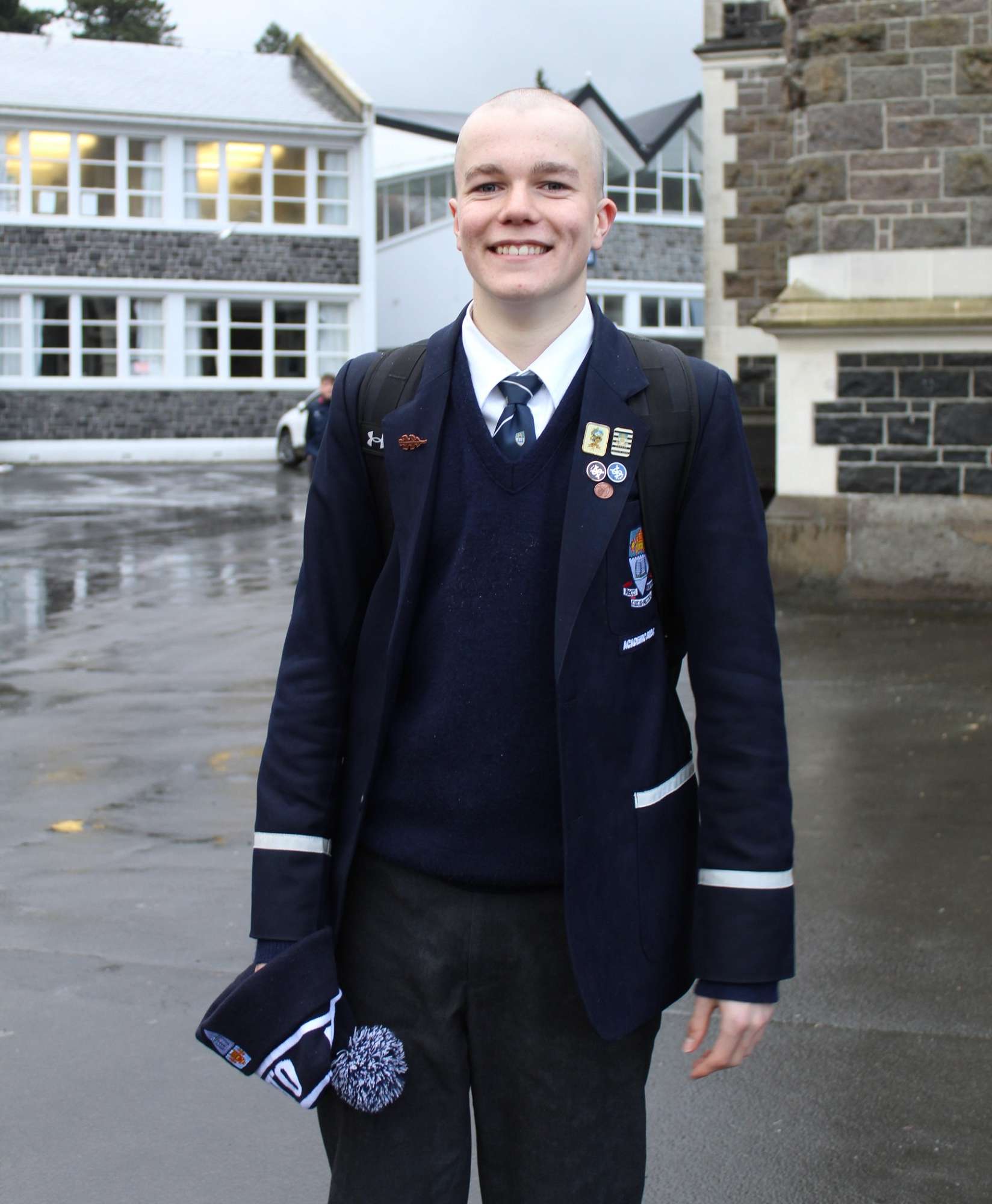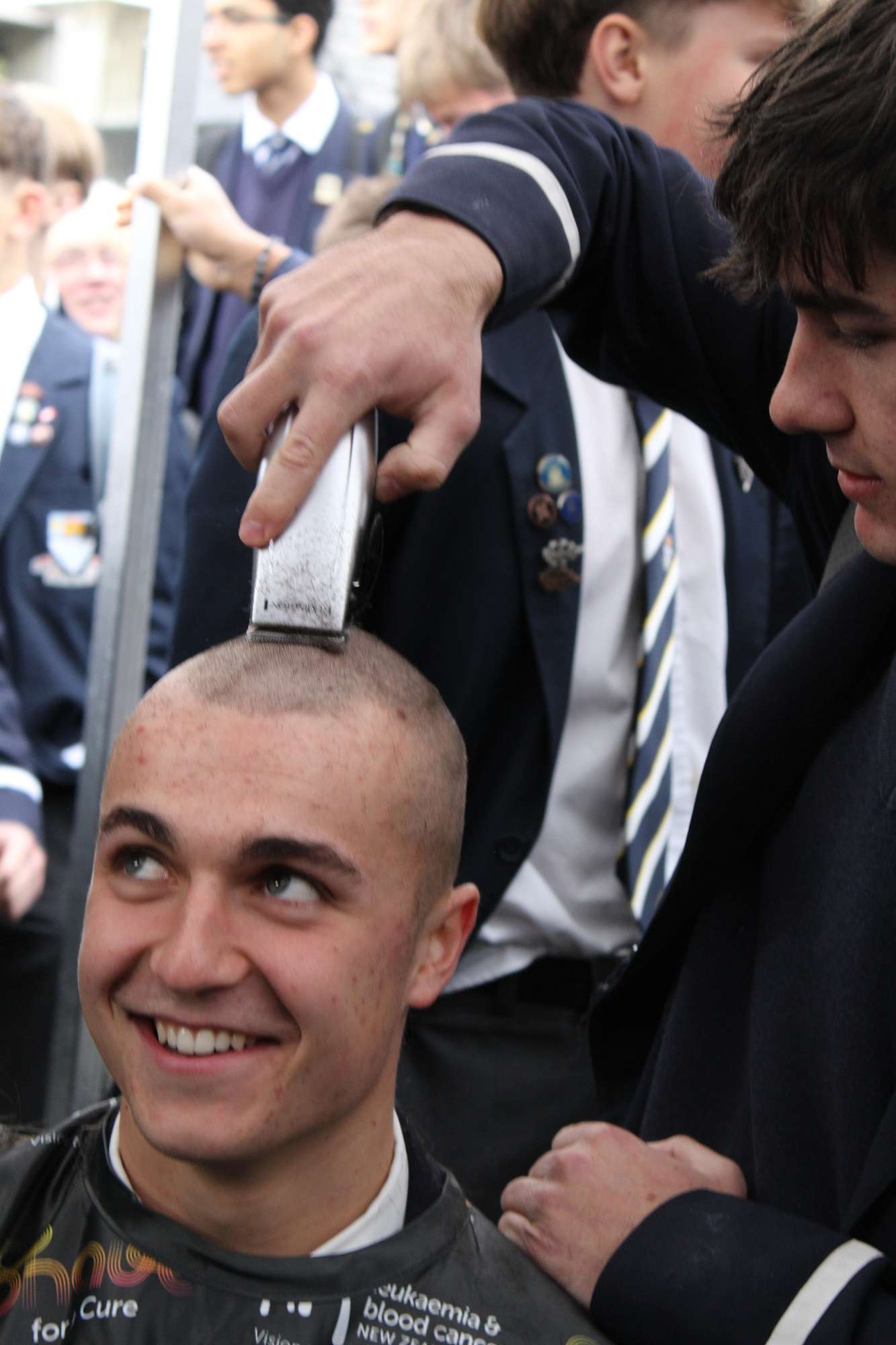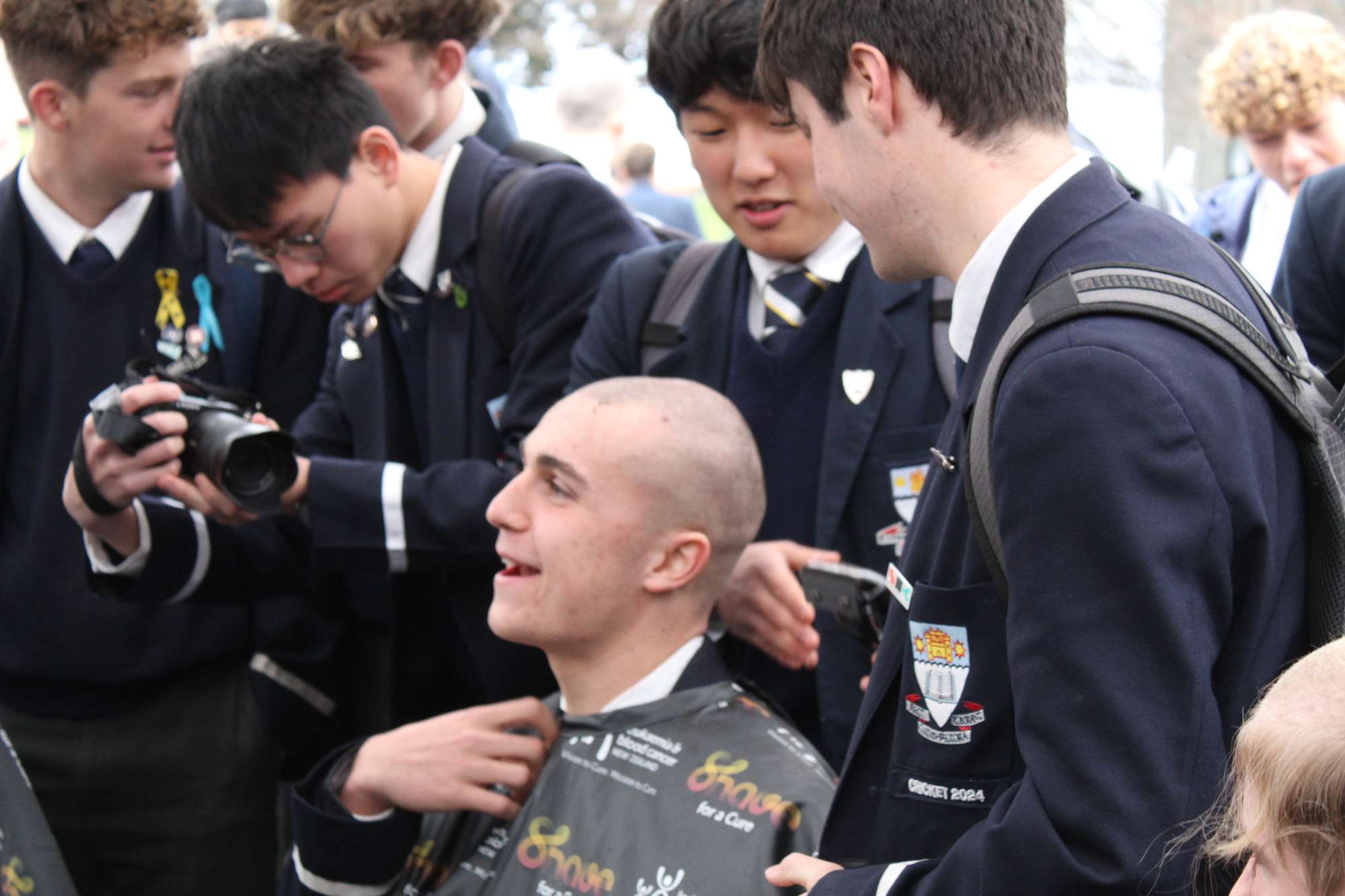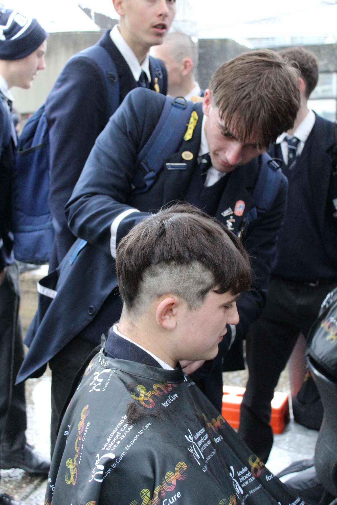 Last Friday, June 6th, over 45 Otago Boys’ High School students braved the cold and rain in the school’s open-air theatre—and shaved their heads in solidarity with those facing these illnesses.