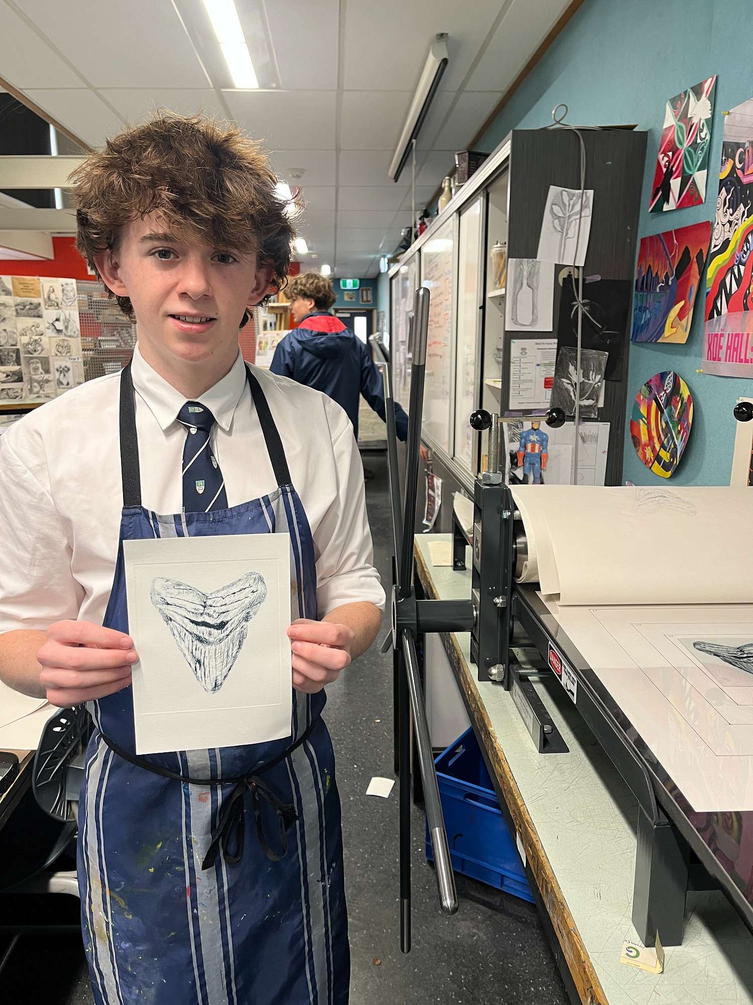 It was very exciting when it arrived, as it had to come from the United States and there had been some delay. The press enables us to create prints on a larger scale and extend our learning in this medium. Year 11 students are currently working on drypoint etchings as part of their NCEA coursework.