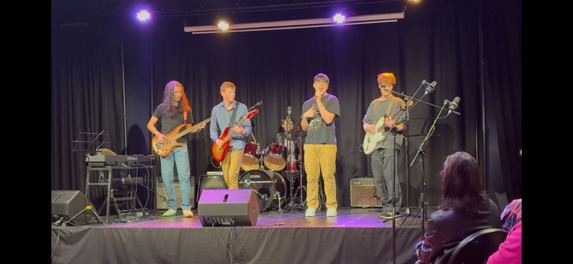 With Rockquest looming, OBHS band Hold Up were invited to perform their set. They opened with Johnny B. Goode, a classic from Chuck Berry, followed by their original Waffle Ladden.