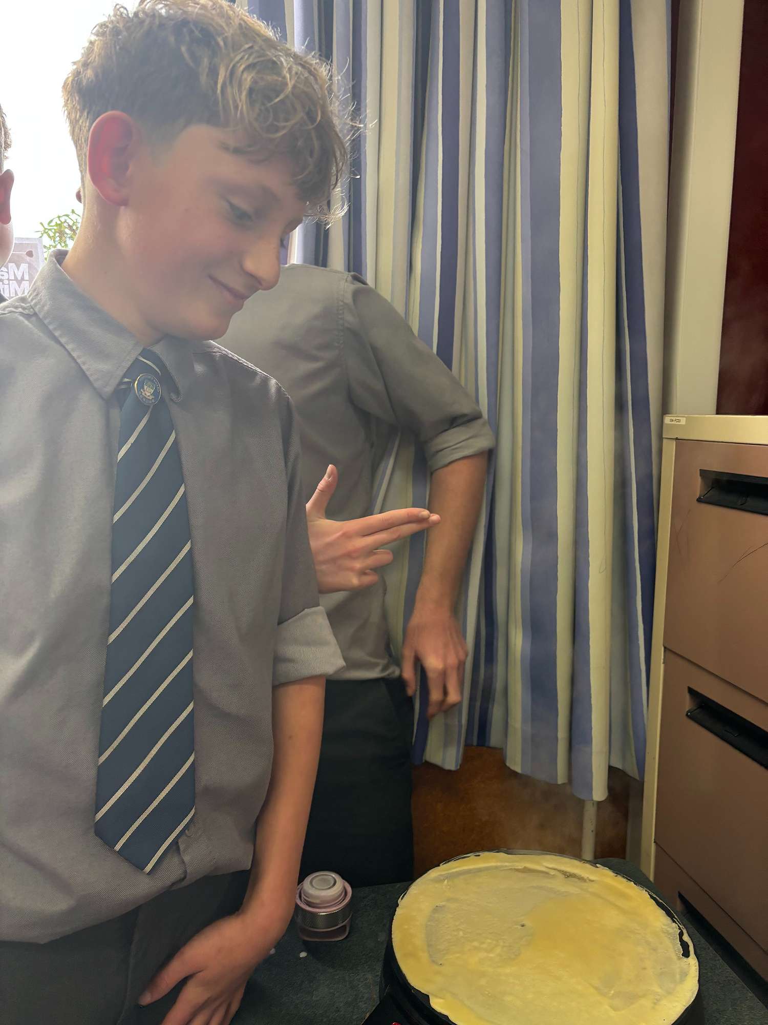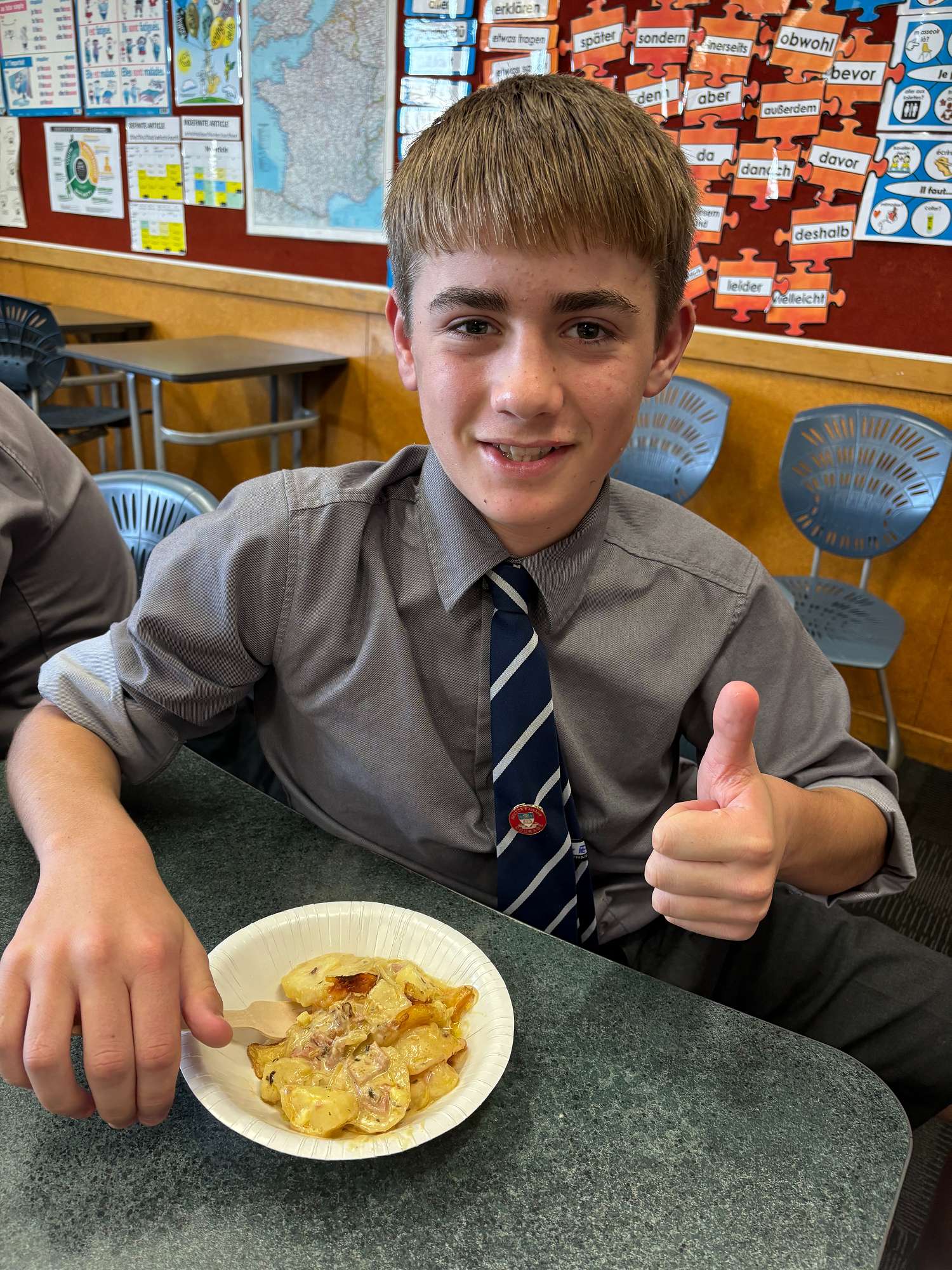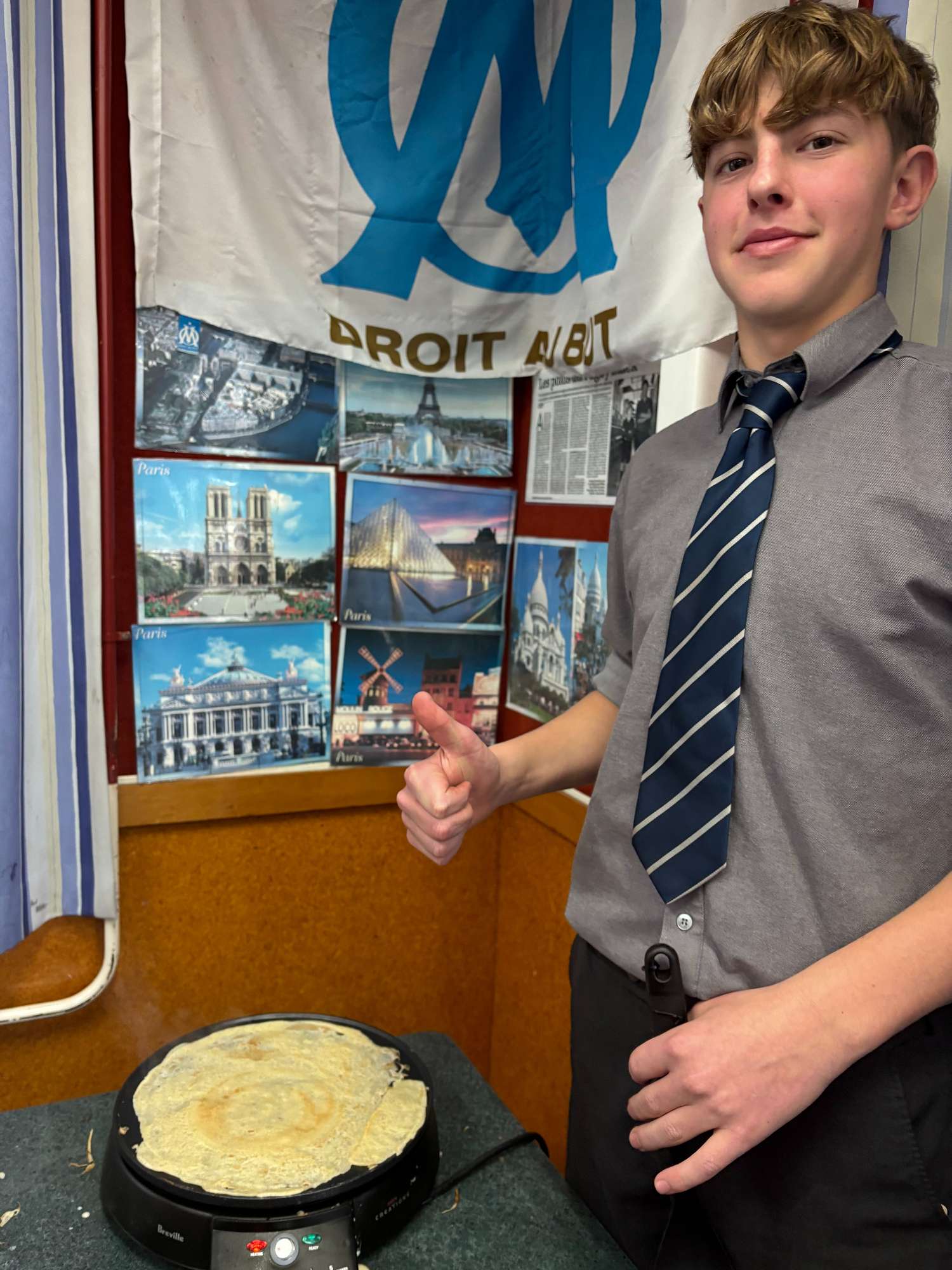 As the cold weather continues to set in, the warming comfort of Tartiflette was a welcome treat for the Year 9 French boys. This hearty dish, featuring potatoes, bacon, onions, cheese, and crème fraîche, originates from the Savoie region in the French Alps and is often served at winter markets in France. Year 10 French had fun experimenting with crêpe making on the newly acquired crêpières électriques, with some boys excelling at this skill, which is not as easy as it looks!