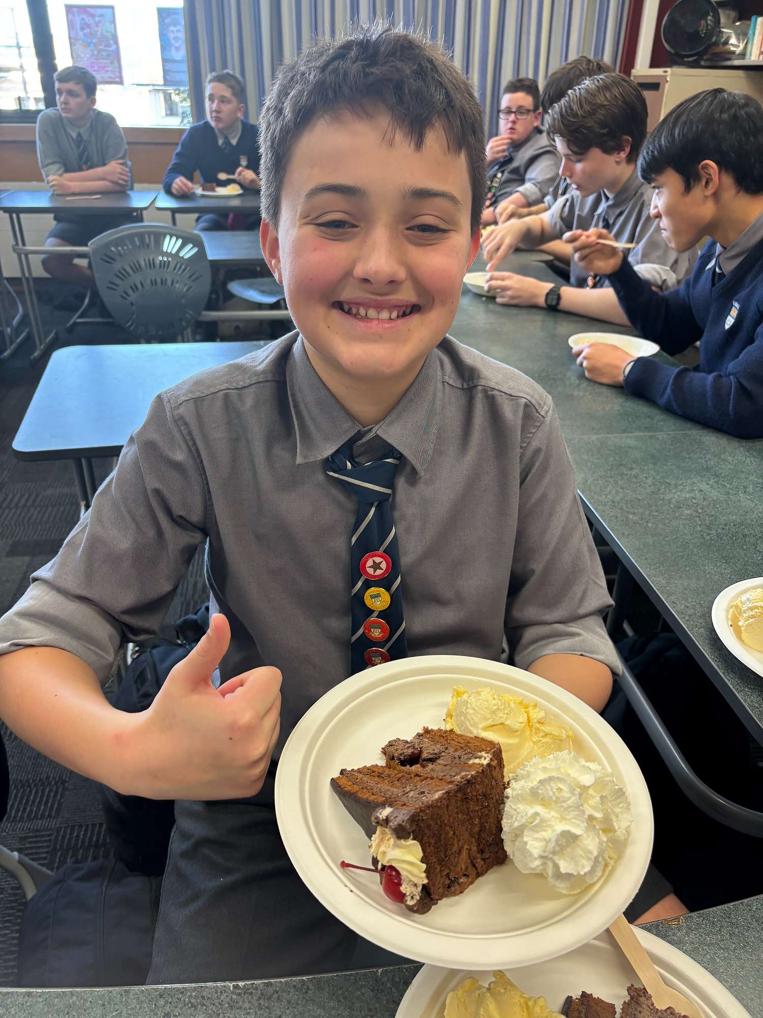 What better way to celebrate all this hard mahi than with some delicious kai, giving boys a flavour of typical French and German cuisine. The good old German bratwurst made a reappearance alongside a delicious dessert of Spaghetti Eis for Year 9 German students. You can watch a clip about the history of this immigrant-inspired dish here. Year 10 German stuck to the sweet stuff, tucking into Apfelstrudel and Schwarzwälder Kirschtorte.