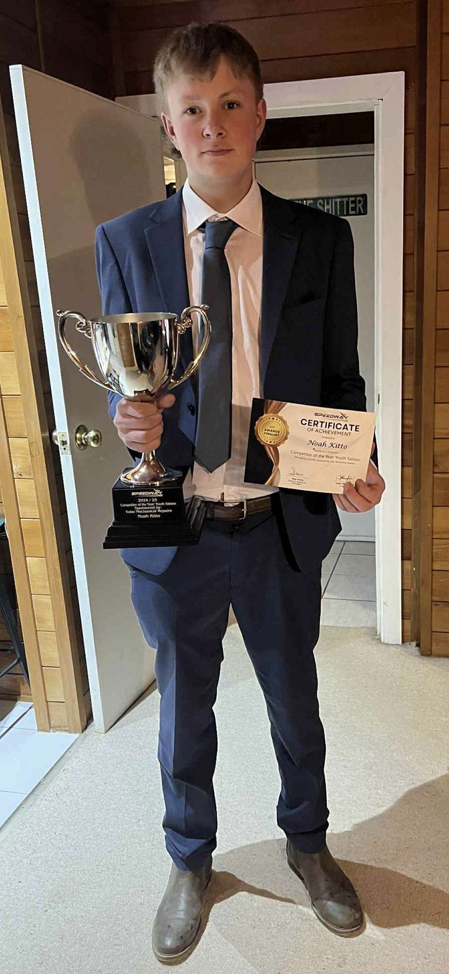 The talented driver and mechanic, who races with invaluable support from his father, has been tearing up tracks across the country, culminating in him being awarded the prestigious Speedway New Zealand Competitor of the Year in Auckland during the school holidays.