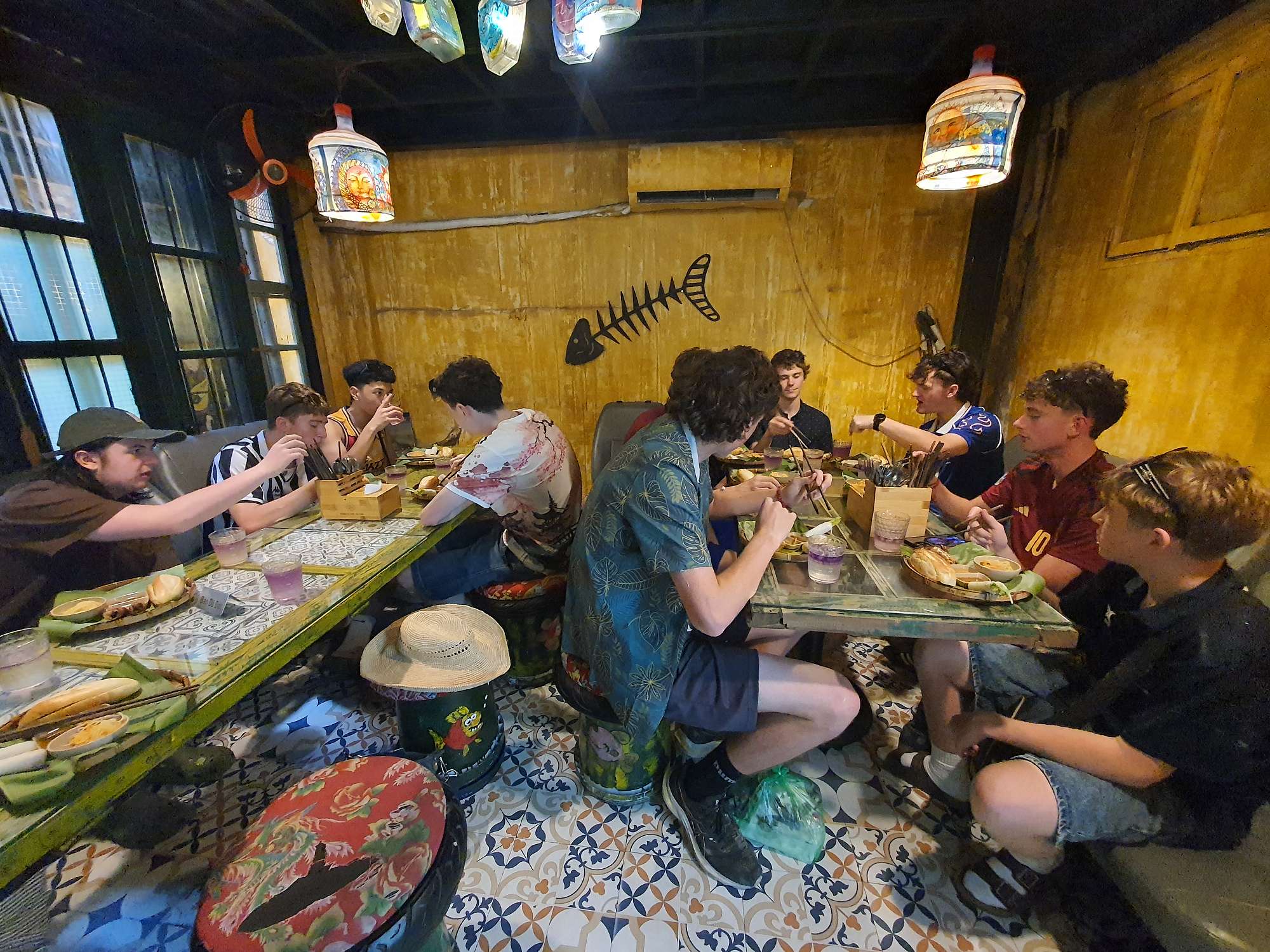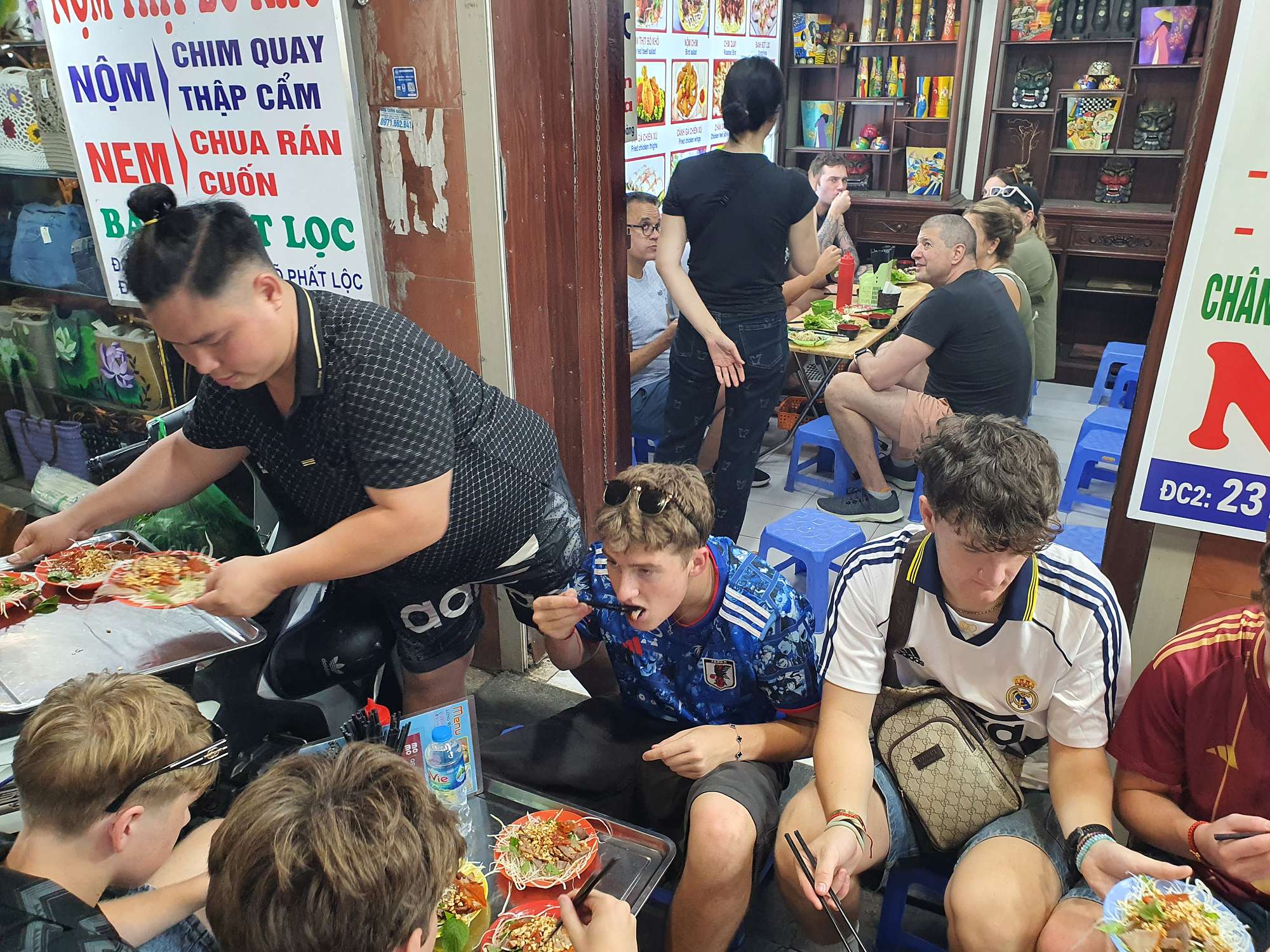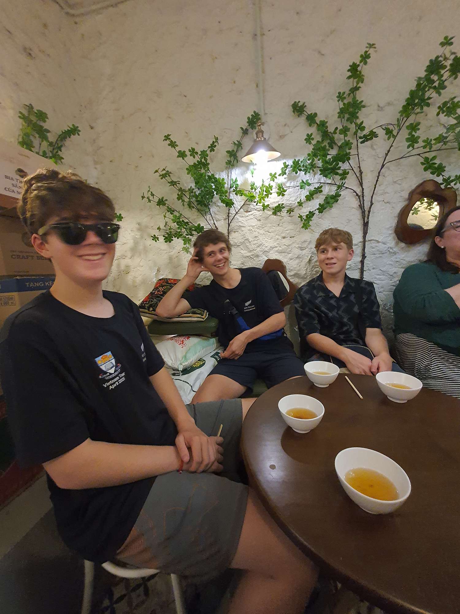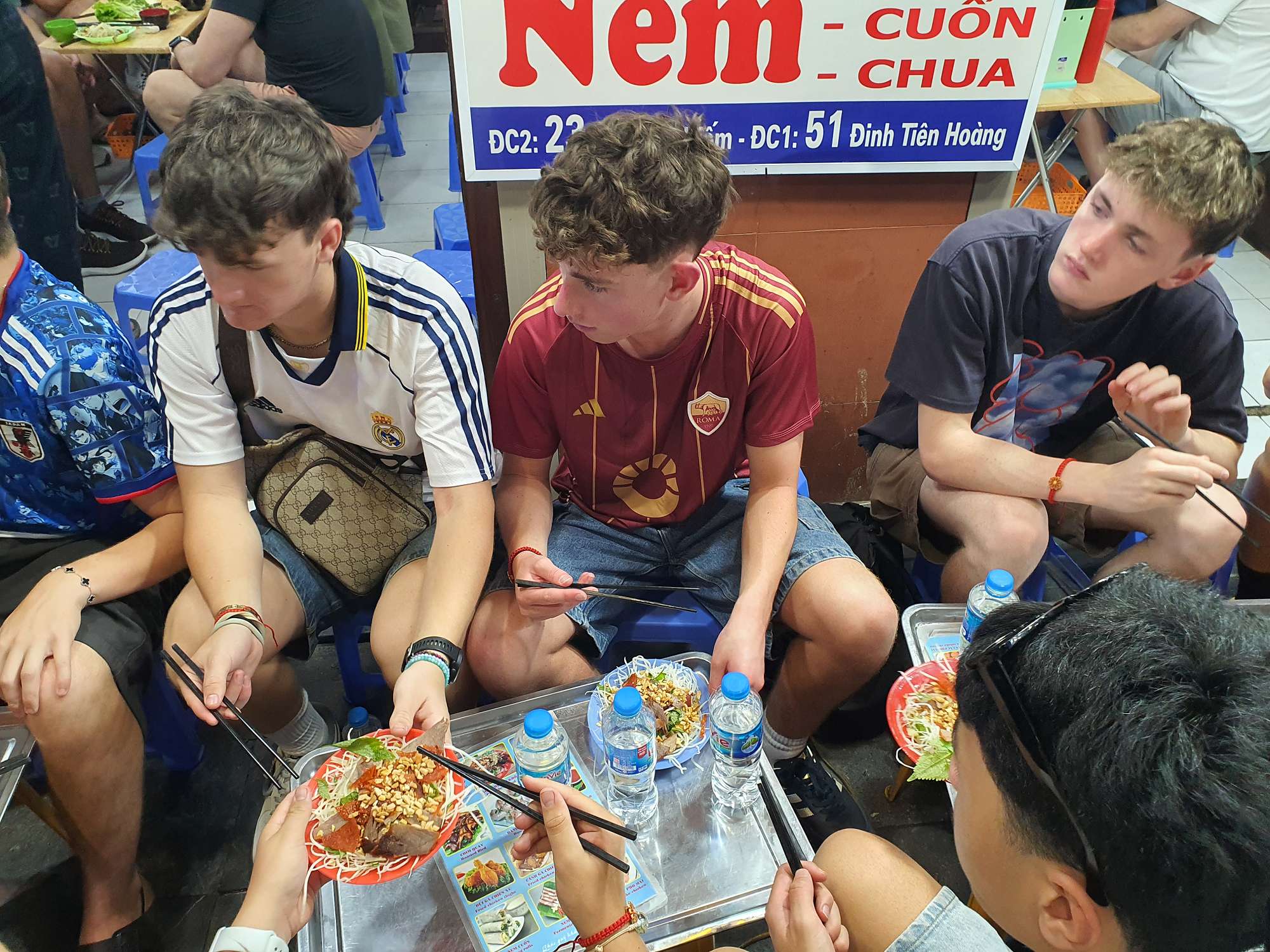 We also had many food experiences in Hanoi: egg coffee, Cộng Cà Phê (Cong Café), Bún Chả (a personal favourite – BBQ pork in a sweet, hot, and savoury broth), Phở (a traditional Vietnamese broth usually eaten for breakfast), and spring rolls. The boys spent a lot of time shopping at the local night markets – picking up even more football shirts and sunglasses.