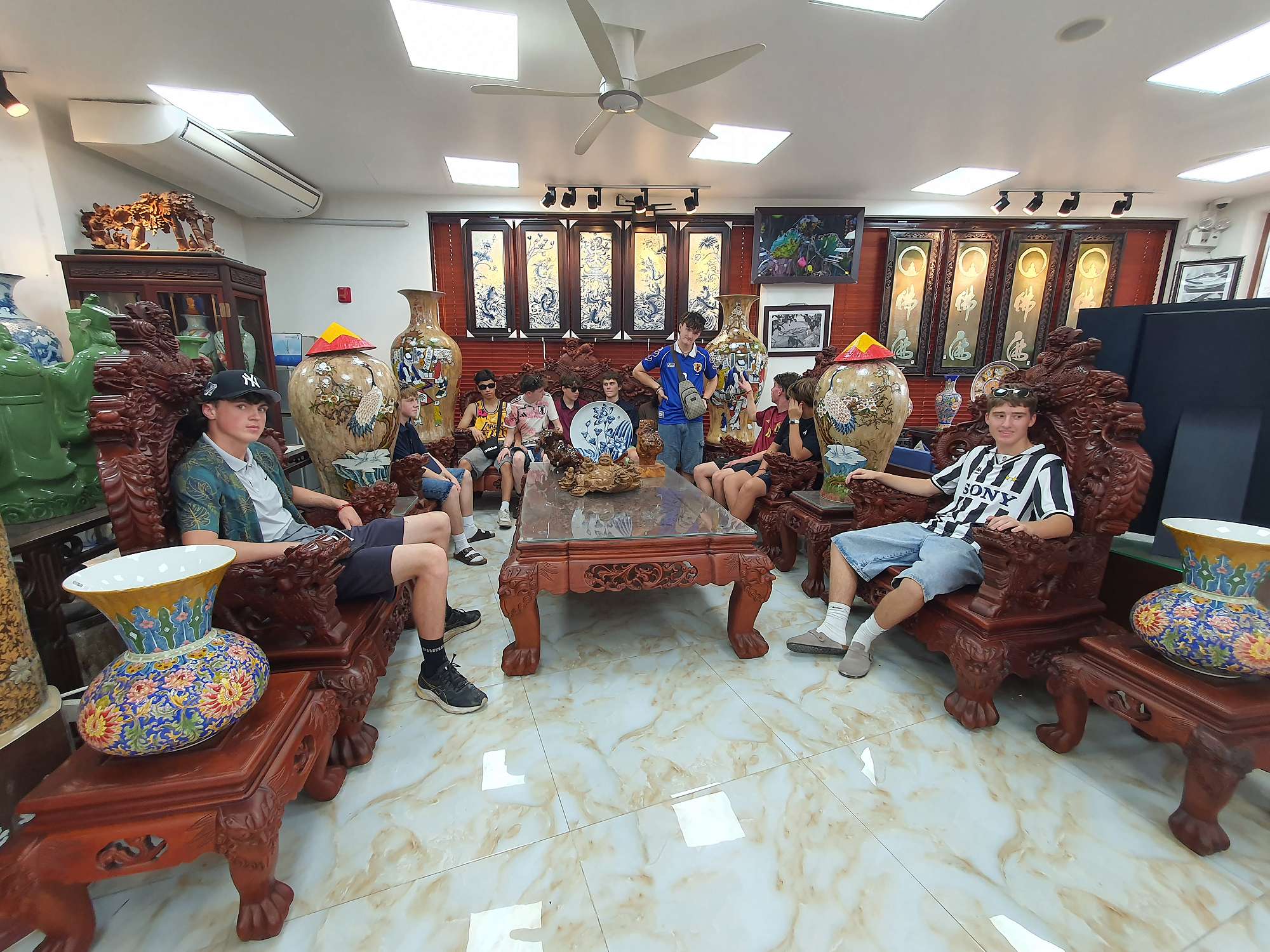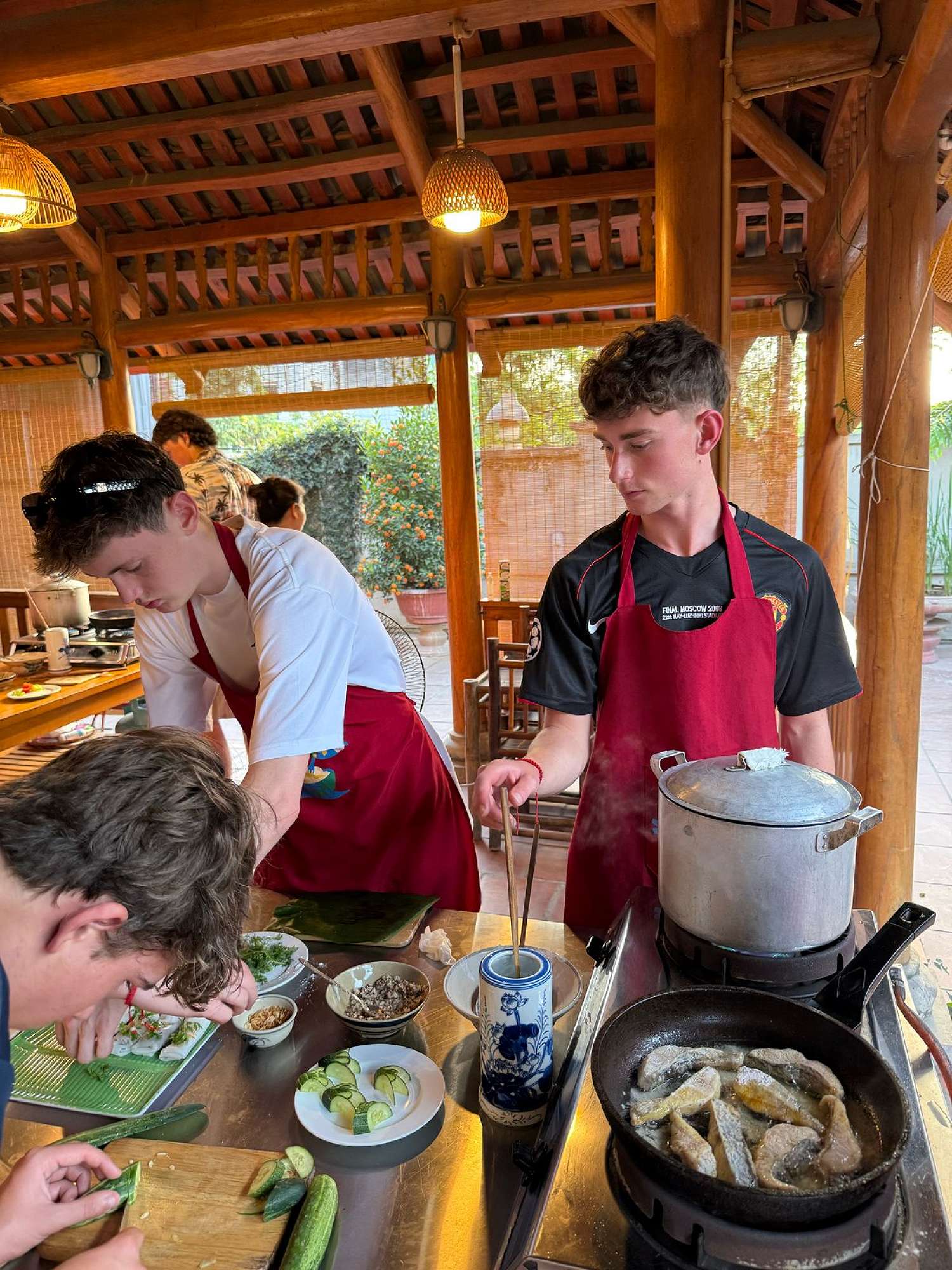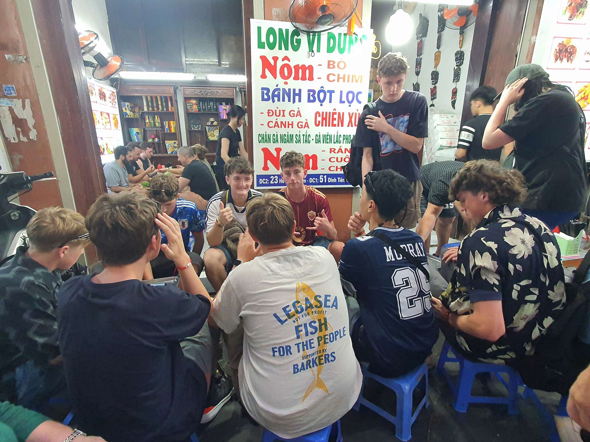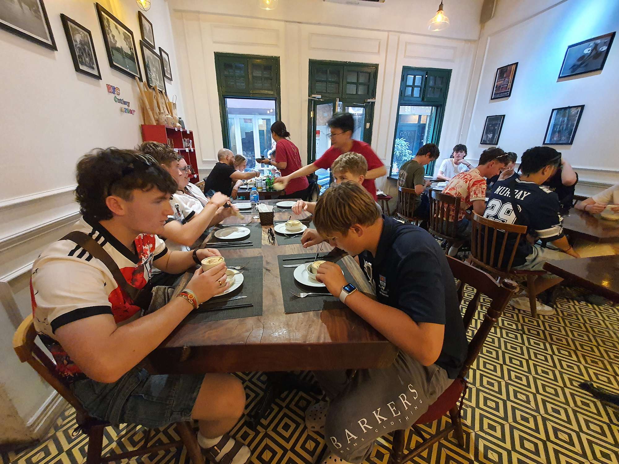 We also had many food experiences in Hanoi: egg coffee, Cộng Cà Phê (Cong Café), Bún Chả (a personal favourite – BBQ pork in a sweet, hot, and savoury broth), Phở (a traditional Vietnamese broth usually eaten for breakfast), and spring rolls. The boys spent a lot of time shopping at the local night markets – picking up even more football shirts and sunglasses.
