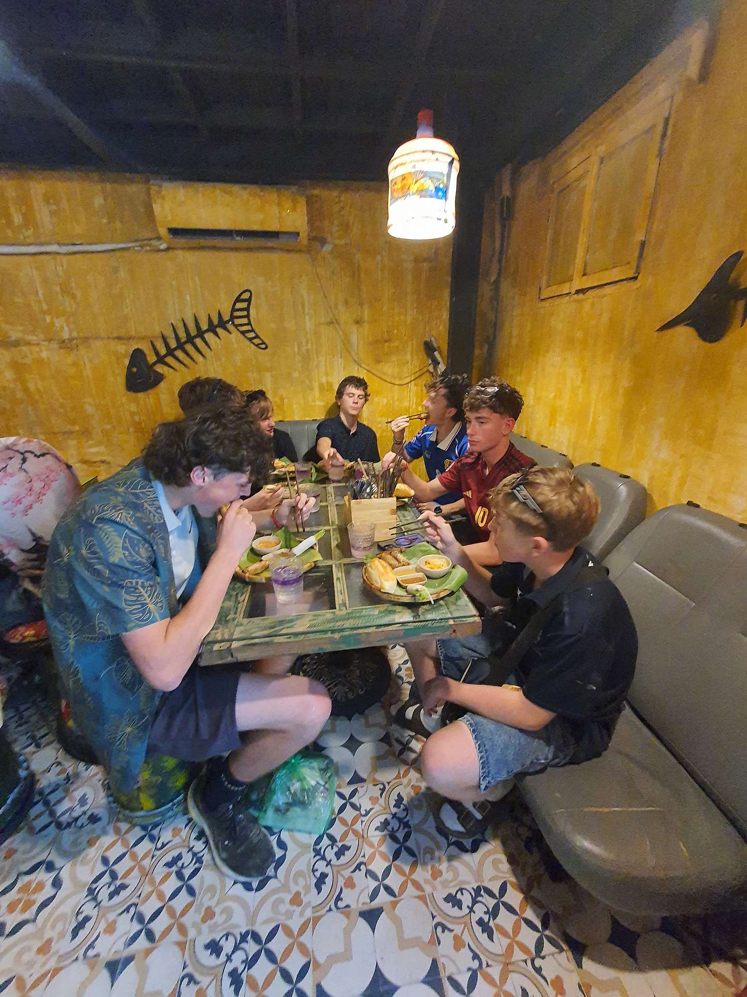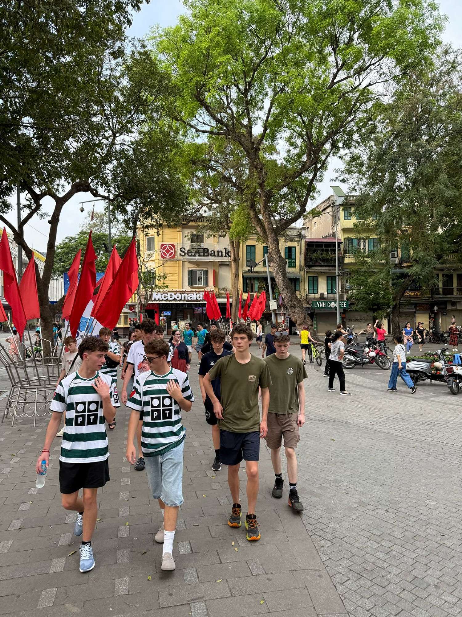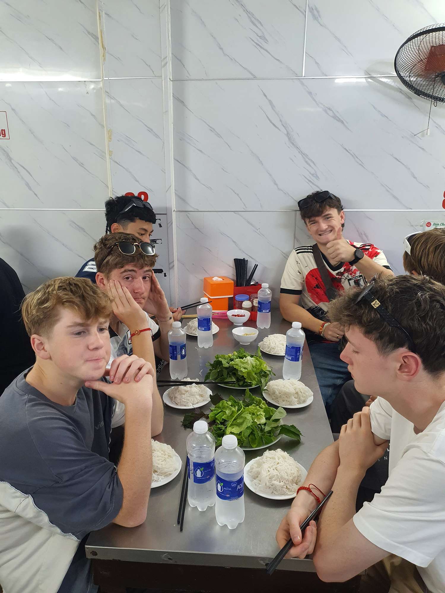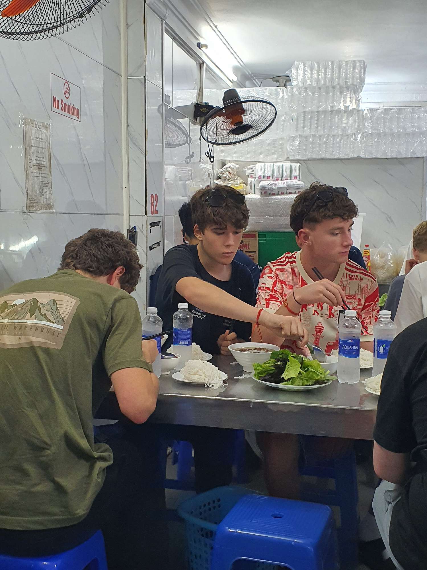 We also had many food experiences in Hanoi: egg coffee, Cộng Cà Phê (Cong Café), Bún Chả (a personal favourite – BBQ pork in a sweet, hot, and savoury broth), Phở (a traditional Vietnamese broth usually eaten for breakfast), and spring rolls. The boys spent a lot of time shopping at the local night markets – picking up even more football shirts and sunglasses.