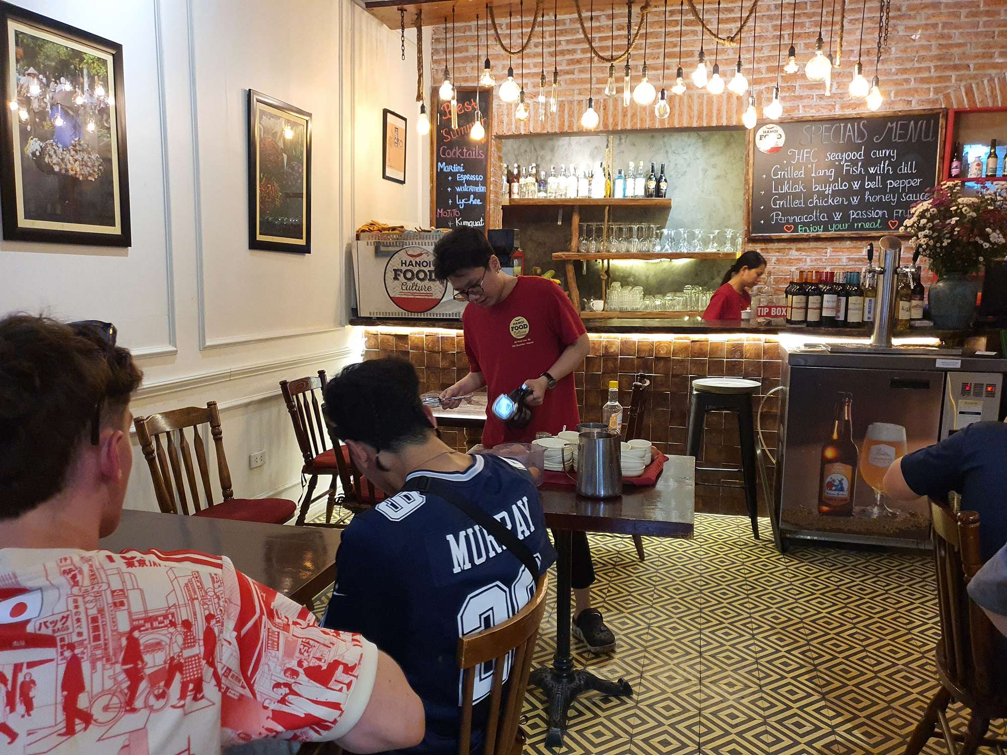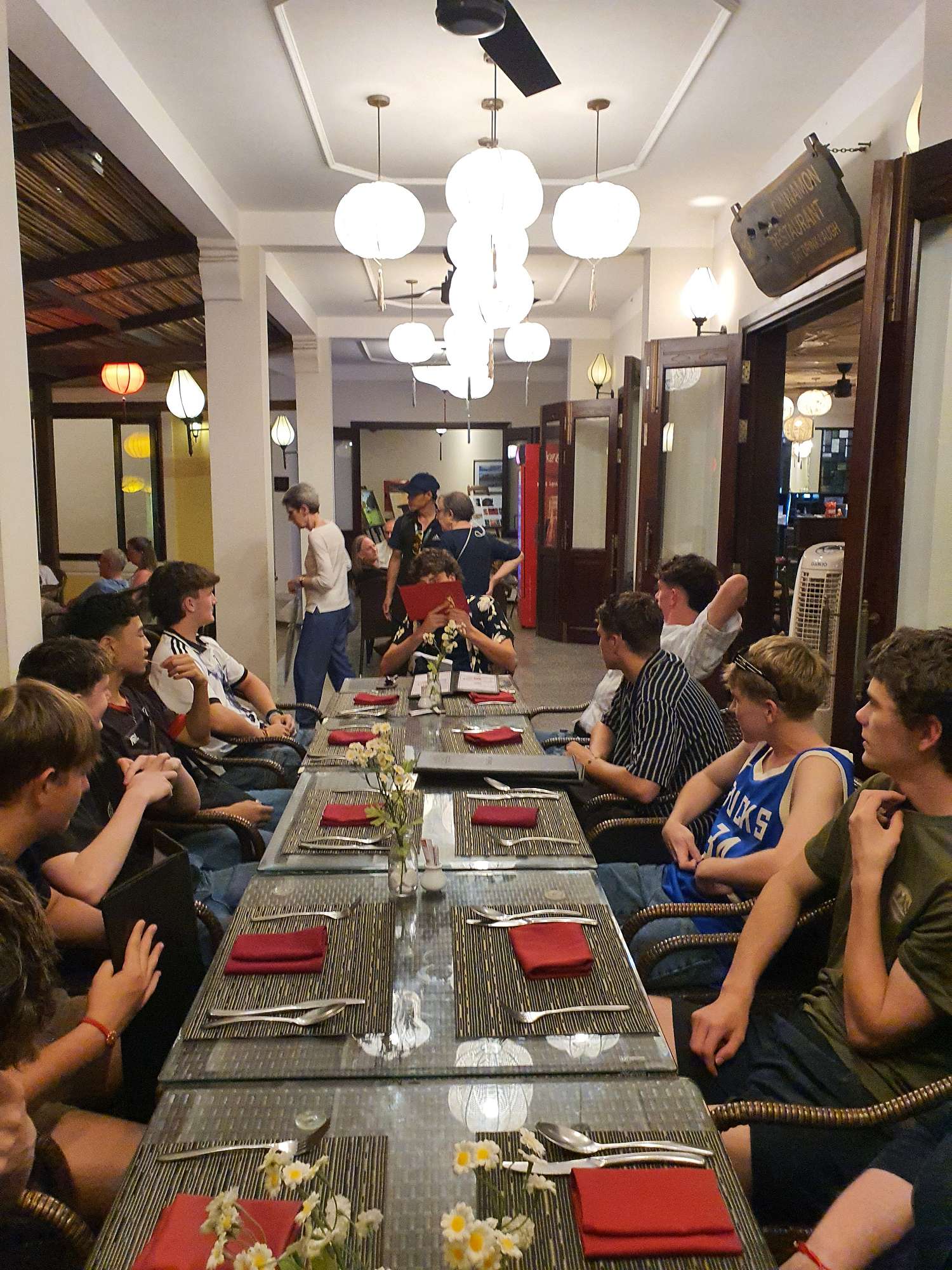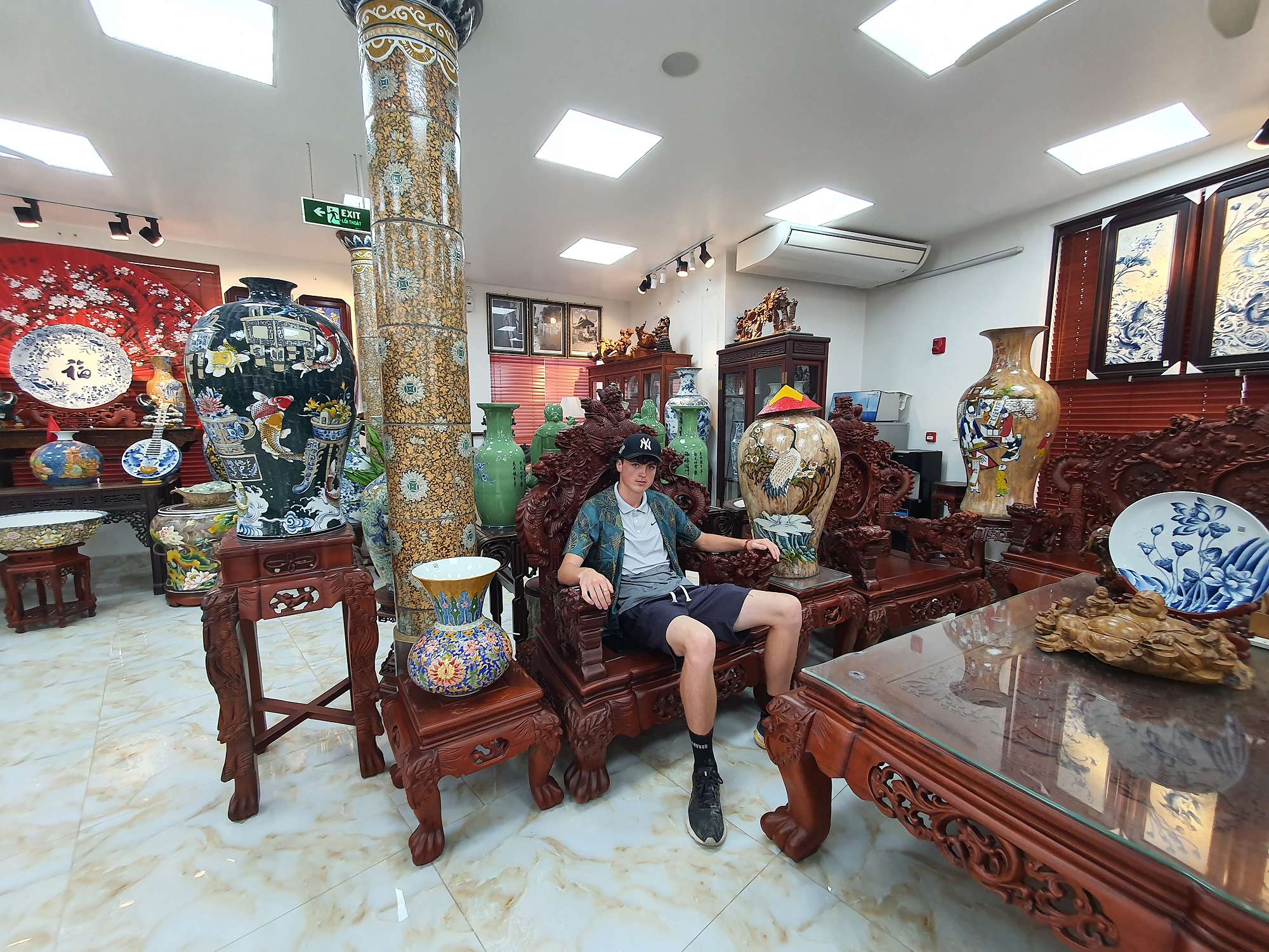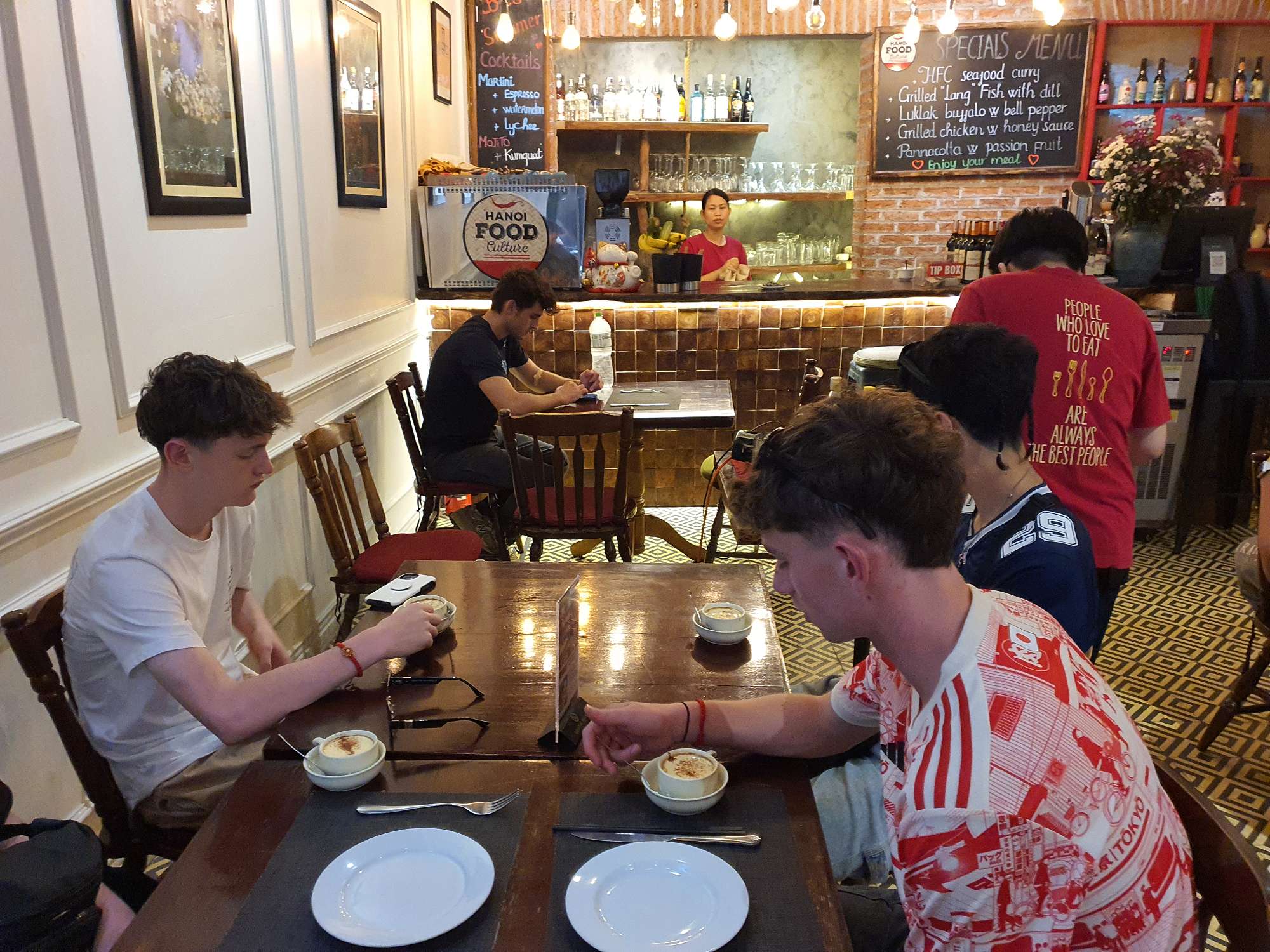We also had many food experiences in Hanoi: egg coffee, Cộng Cà Phê (Cong Café), Bún Chả (a personal favourite – BBQ pork in a sweet, hot, and savoury broth), Phở (a traditional Vietnamese broth usually eaten for breakfast), and spring rolls. The boys spent a lot of time shopping at the local night markets – picking up even more football shirts and sunglasses.