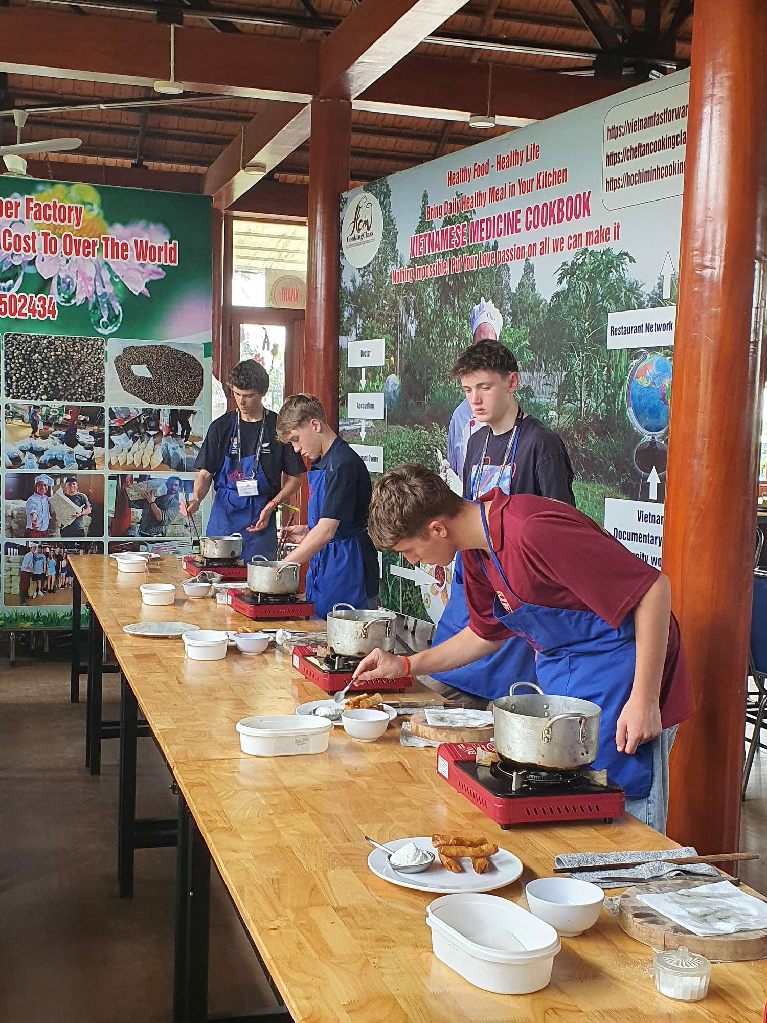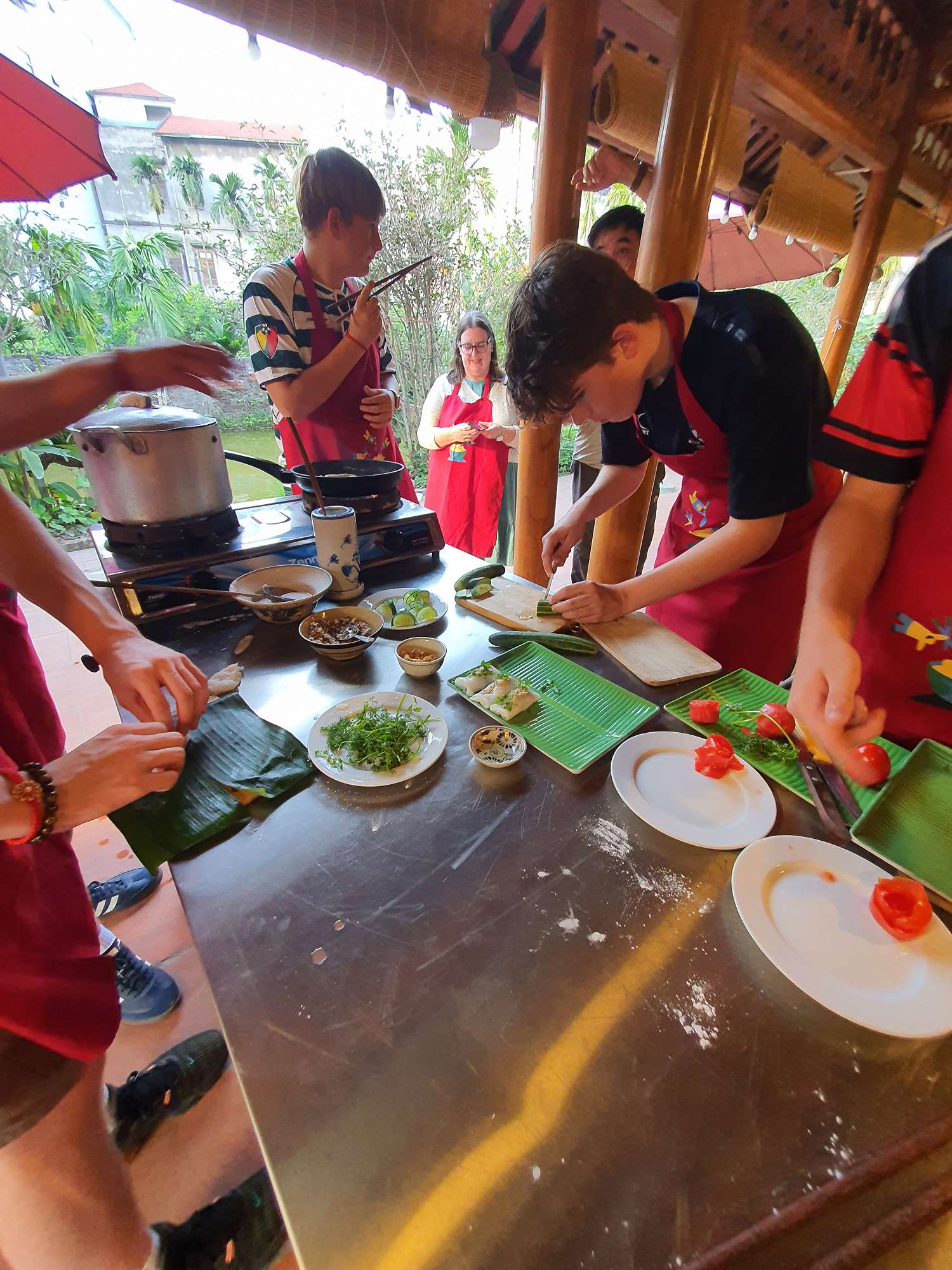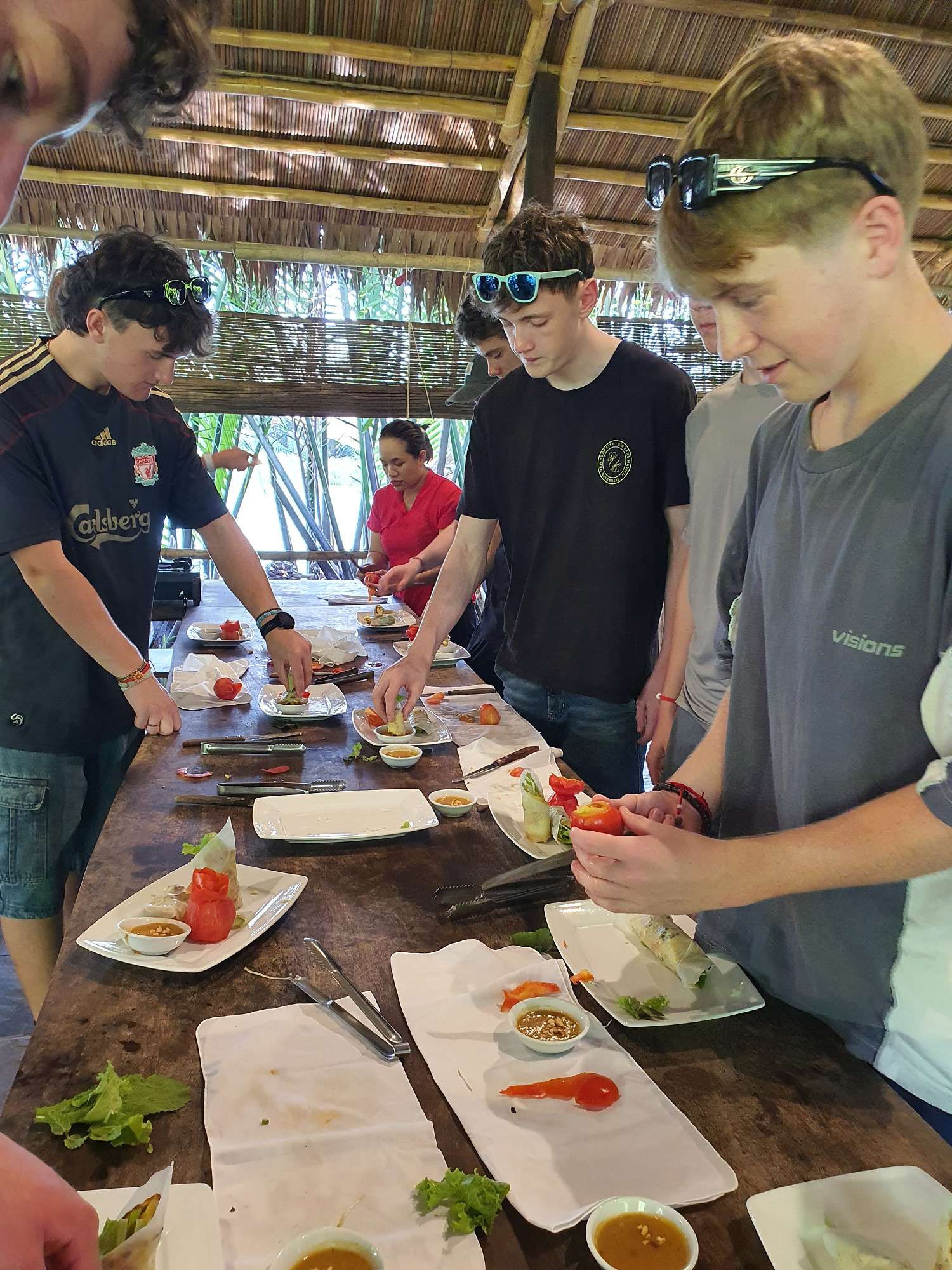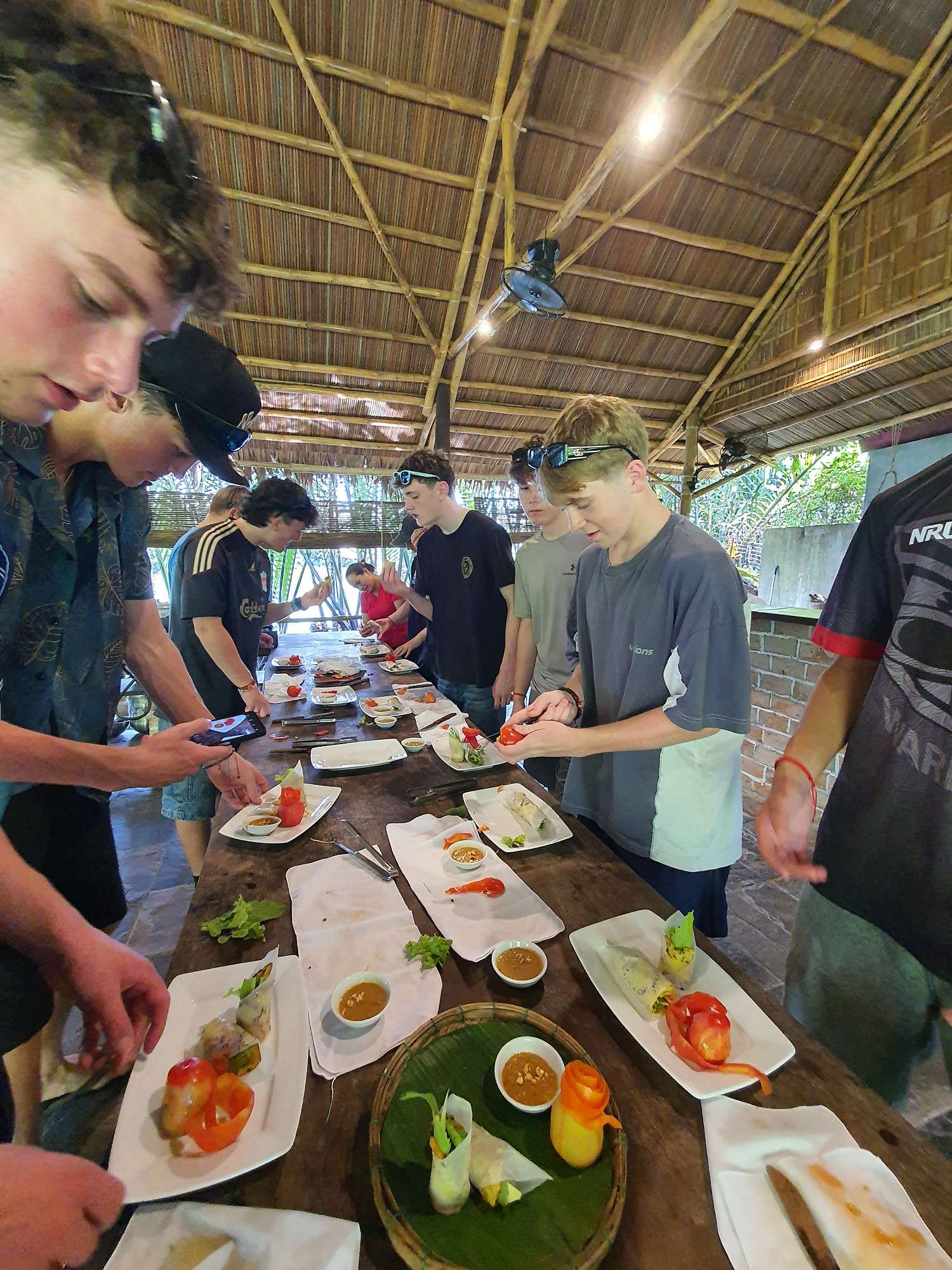 Students were then treated to a visit to an agricultural village outside Ho Chi Minh City, where they learned about local produce and picked their own ingredients to create three local dishes: a spicy pork salad, chicken curry, and banana spring rolls. This was an absolute highlight! The cooking class was a hit, and the food was sensational.