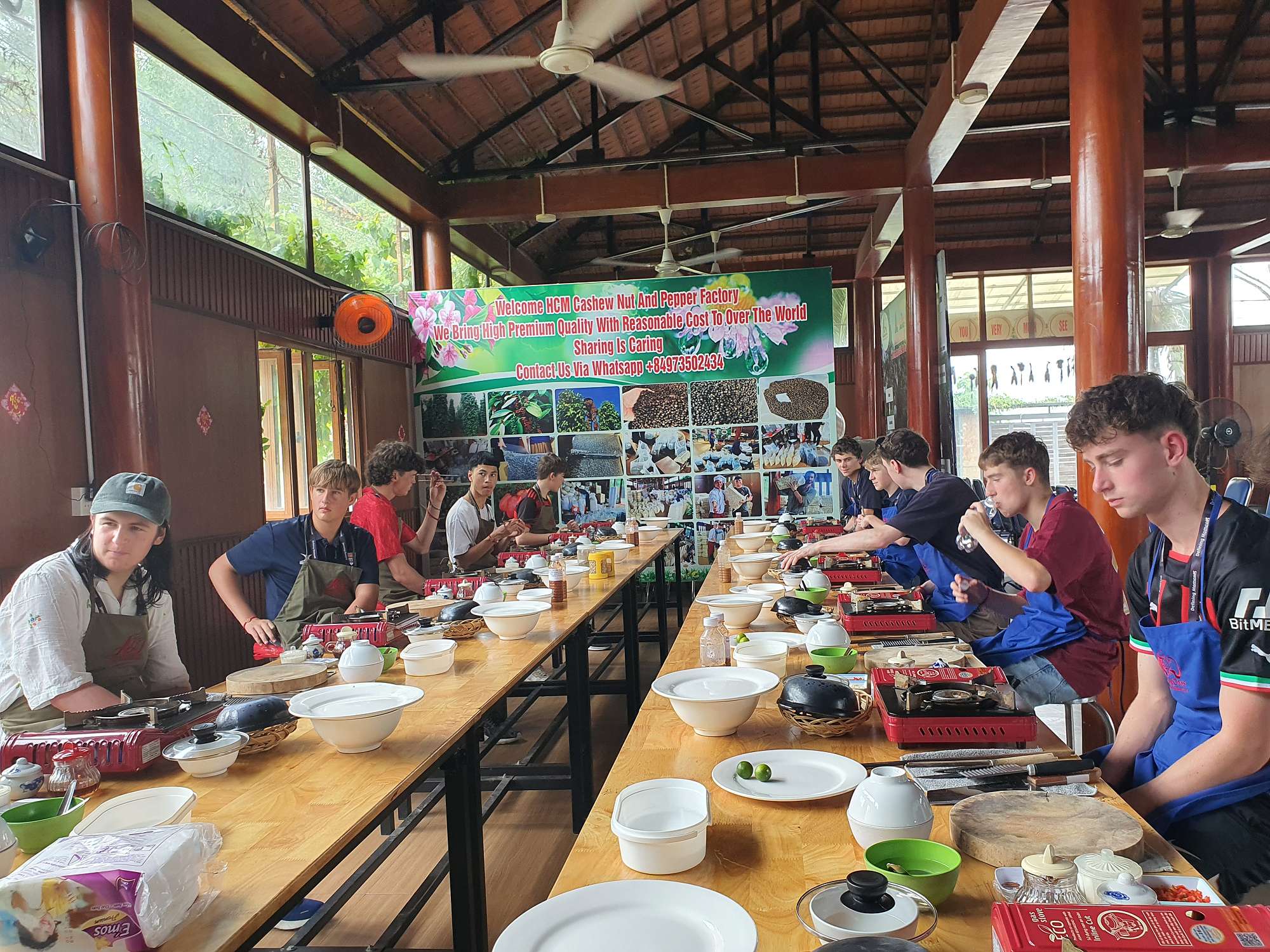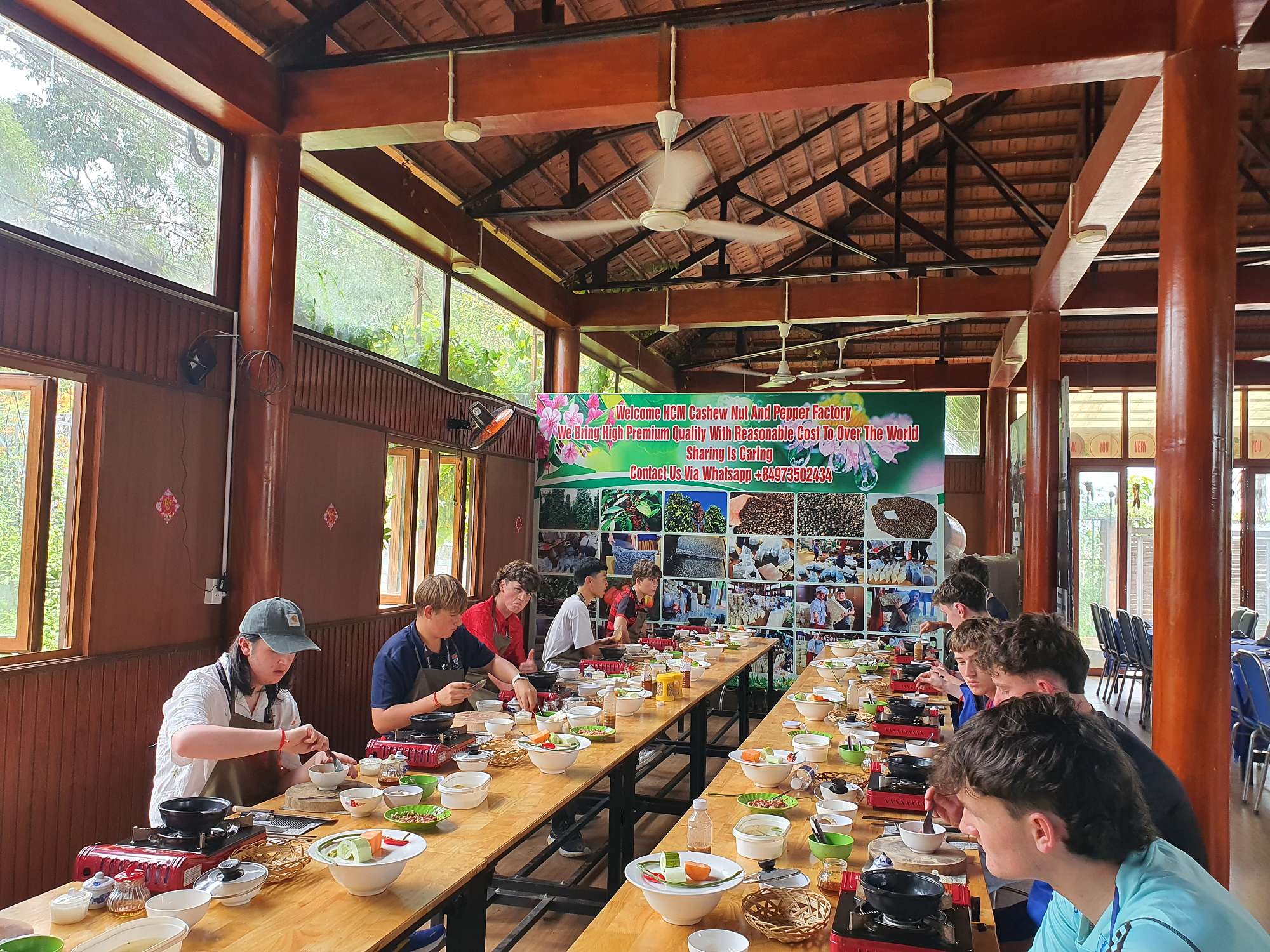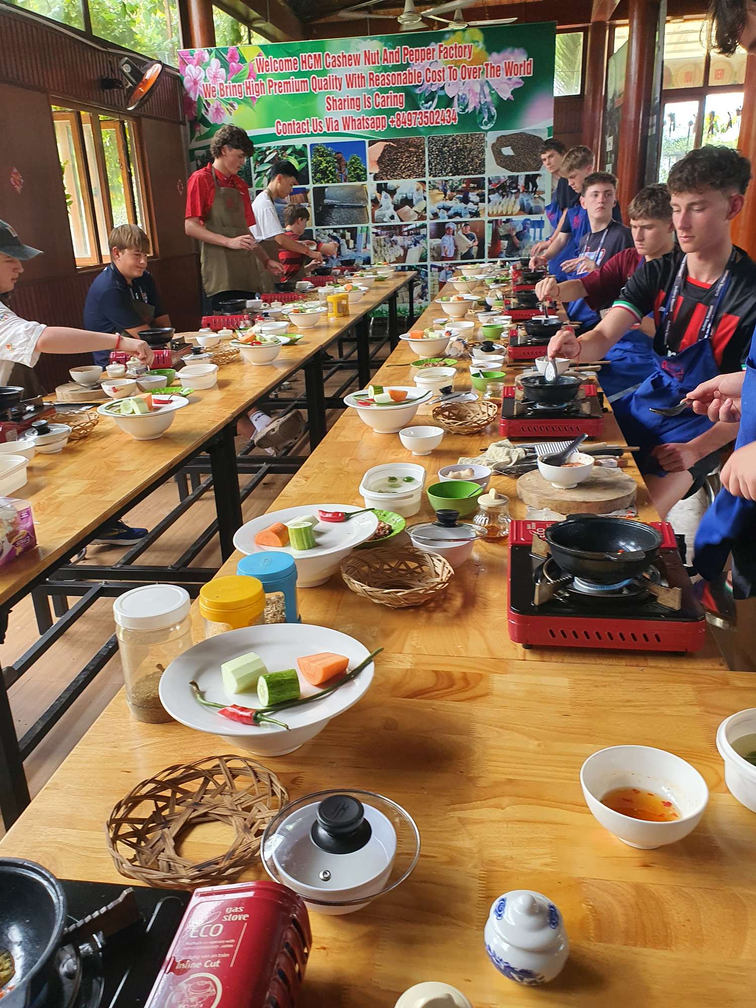 Students were then treated to a visit to an agricultural village outside Ho Chi Minh City, where they learned about local produce and picked their own ingredients to create three local dishes: a spicy pork salad, chicken curry, and banana spring rolls. This was an absolute highlight! The cooking class was a hit, and the food was sensational.