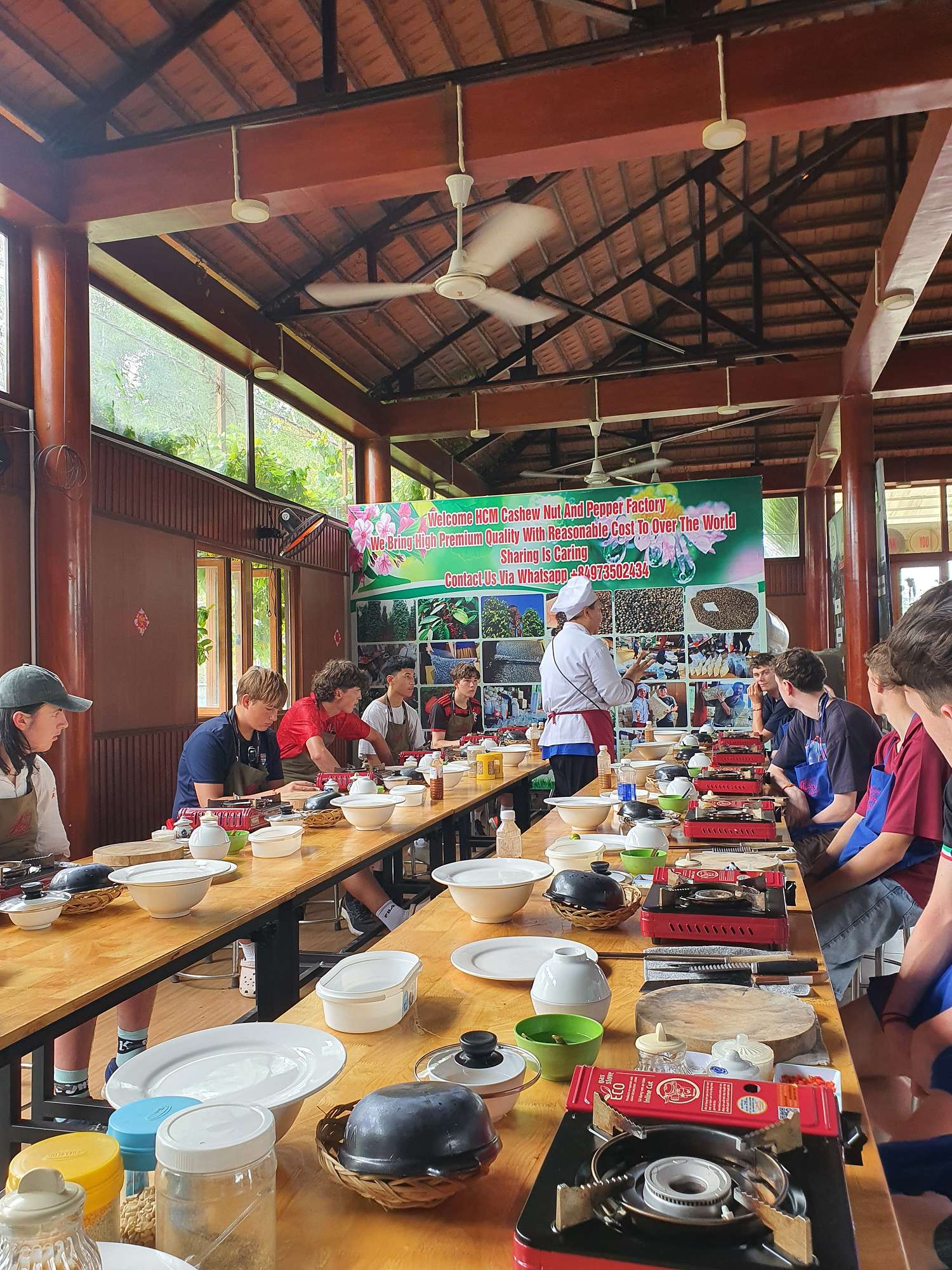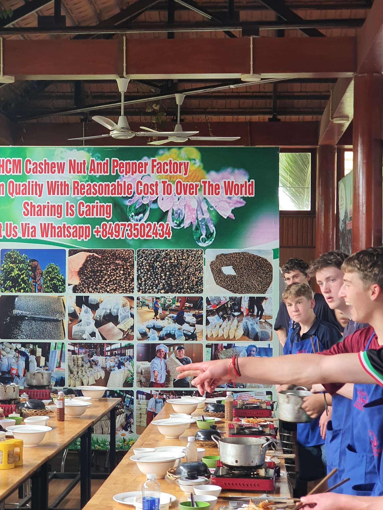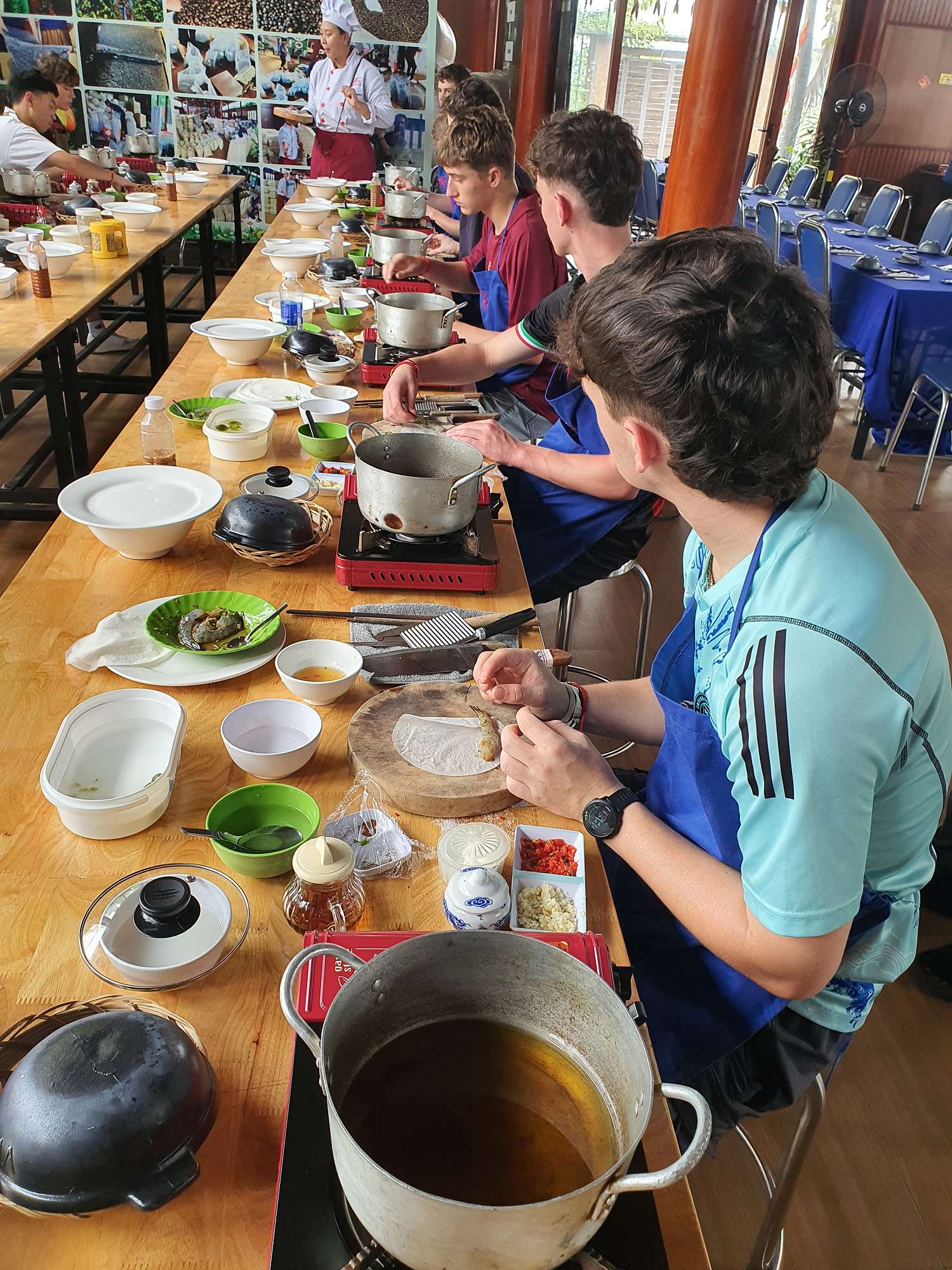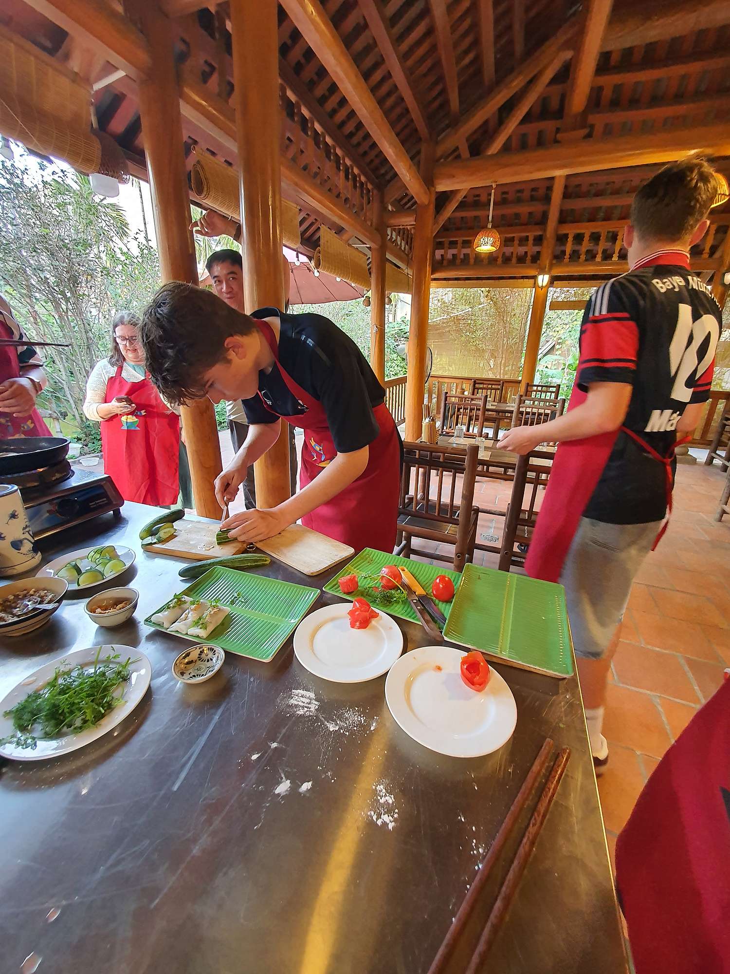 Students were then treated to a visit to an agricultural village outside Ho Chi Minh City, where they learned about local produce and picked their own ingredients to create three local dishes: a spicy pork salad, chicken curry, and banana spring rolls. This was an absolute highlight! The cooking class was a hit, and the food was sensational.