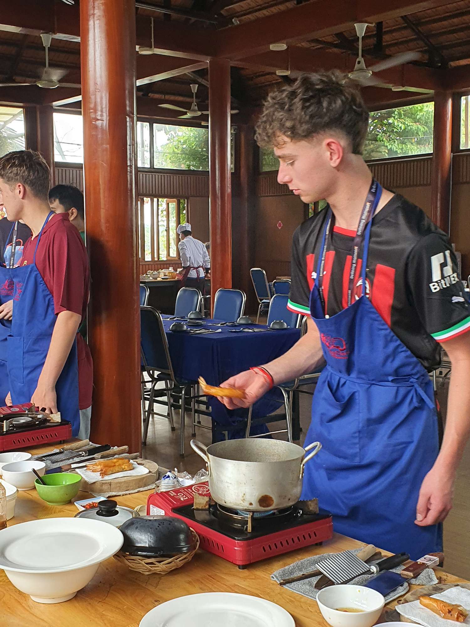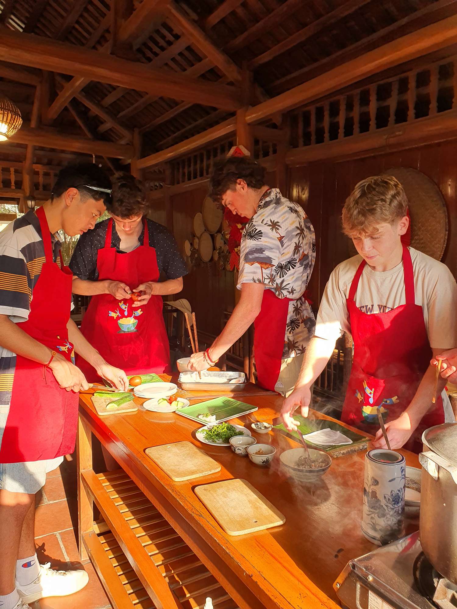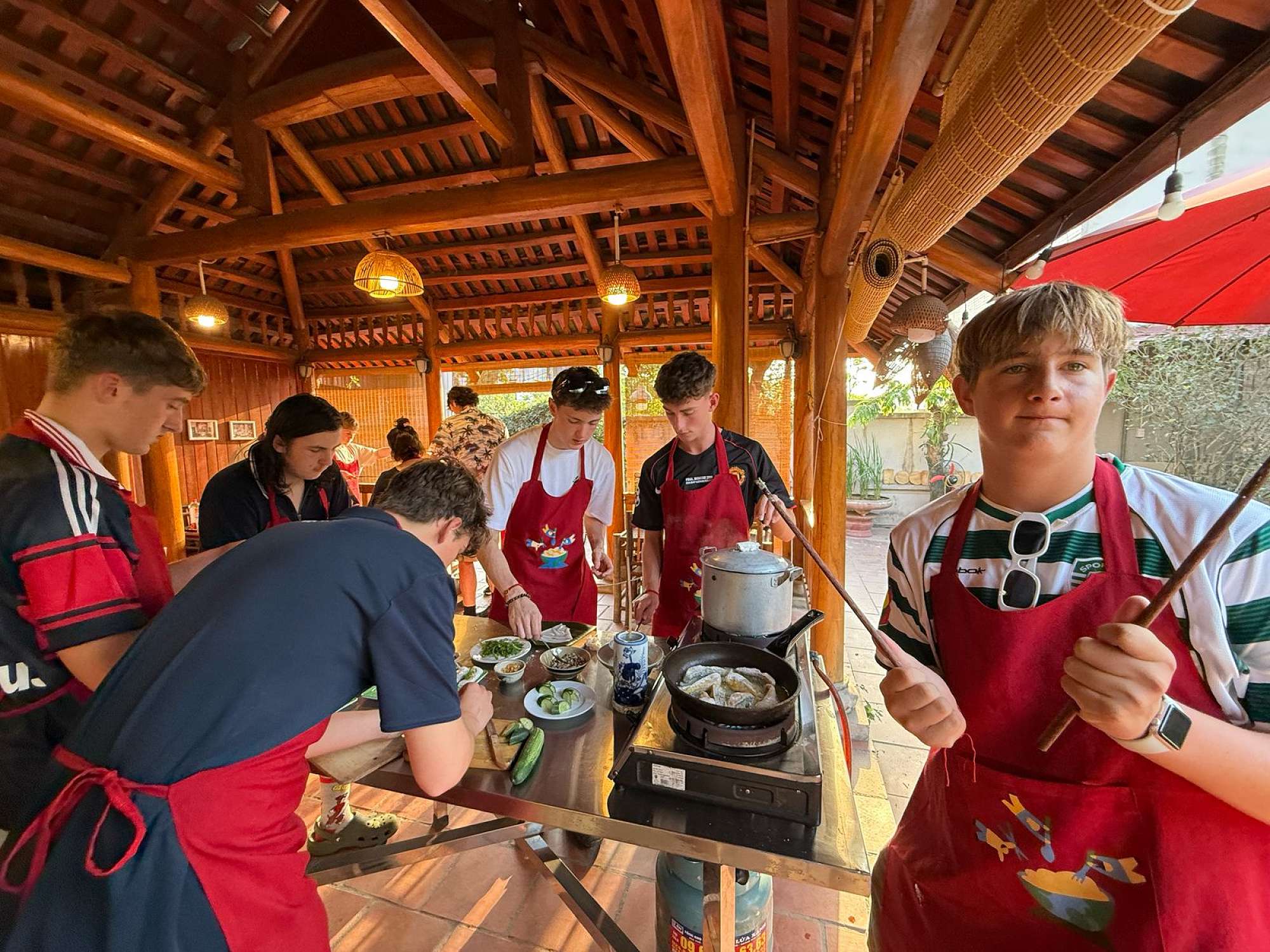 The next place of interest was Hội An – a UNESCO World Heritage Site. A stunning location, with ancient buildings and beautiful streets. Hội An is well known for its lanterns and White Rose Dumplings. We sampled homemade dumplings and tried iced coconut coffee for the first time. We also enjoyed a market tour and a local cooking class, which included a river cruise and a surprise birthday cake for Tom Bankshaw! This was also the place to have clothing made. Tom had his Year 13 formal suit tailored in Hội An – made to measure and completed in just 24 hours.