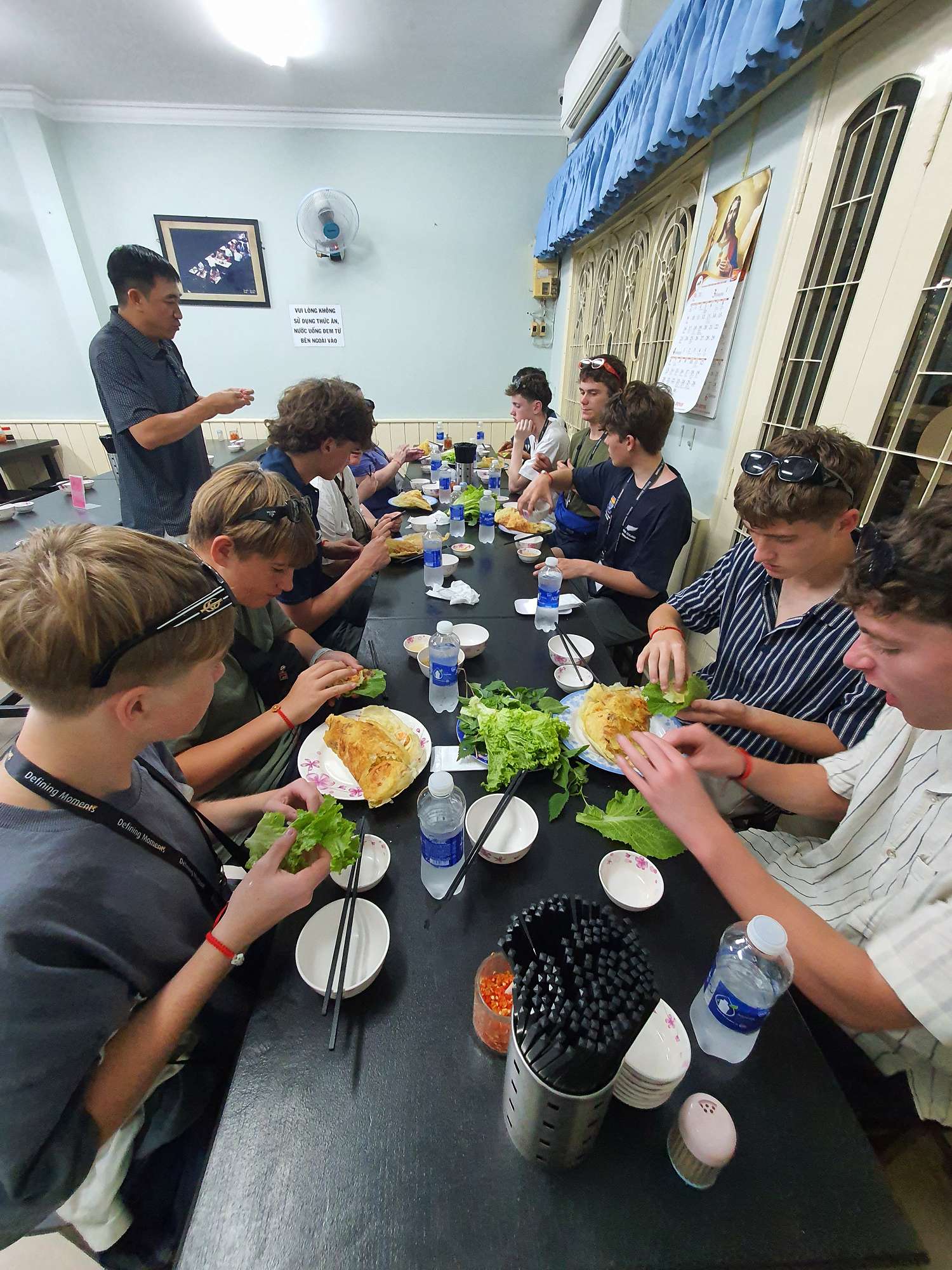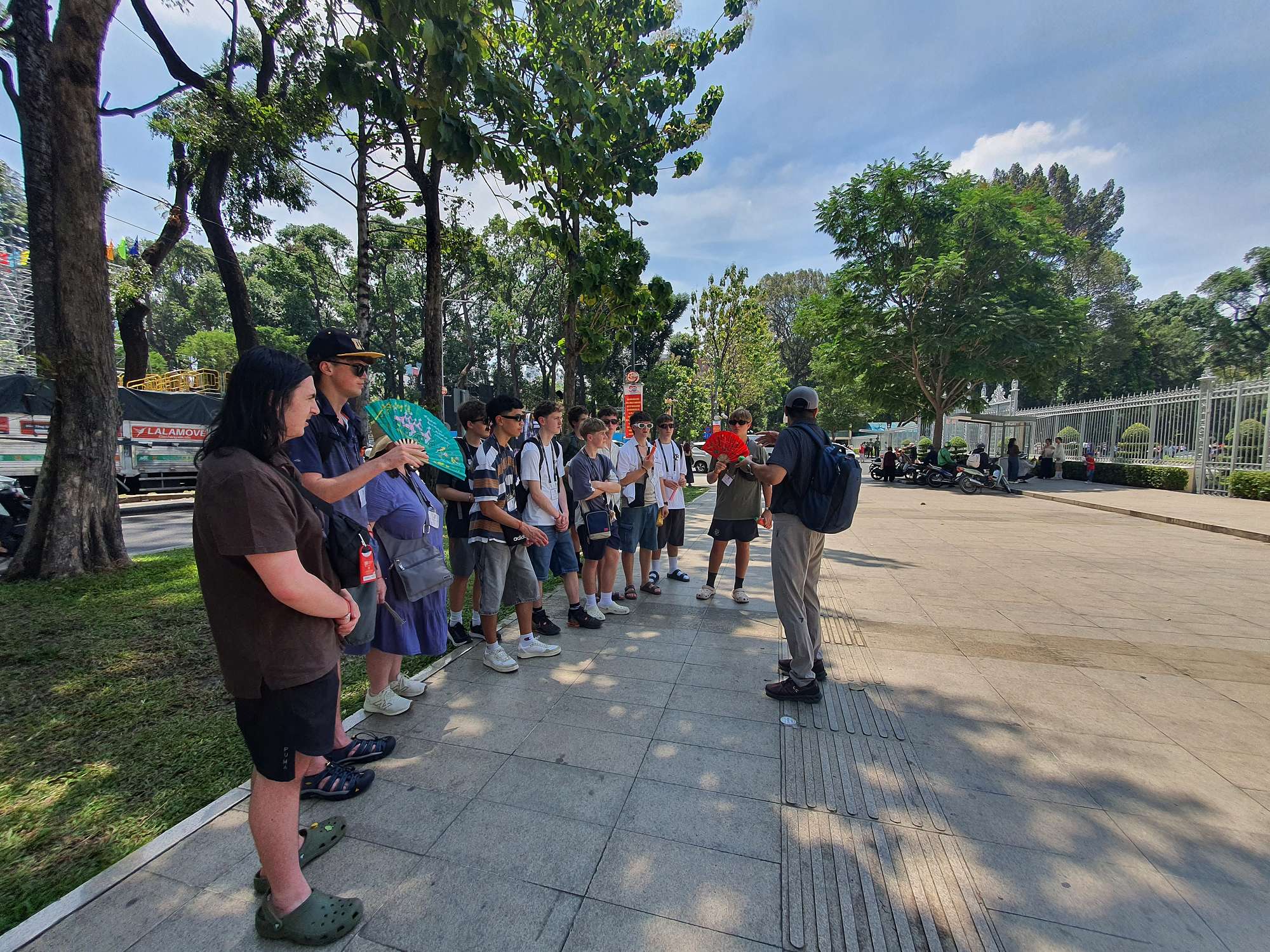 The trip started in Ho Chi Minh City (Saigon), with 38°C heat and students recovering from a long-haul flight. But they were straight into it. We began with a walking tour of Ho Chi Minh City, which included the War Remnants Museum – a confronting view of the Vietnam War and its impact. Other stops included the Reunification Palace, the Saigon Notre Dame Cathedral, the Old Central Post Office, Ho Chi Minh Square, the Saigon Opera House, and we finished with a traditional Bánh Mì Huynh Hoa – a Vietnamese baguette served with pork pâté.