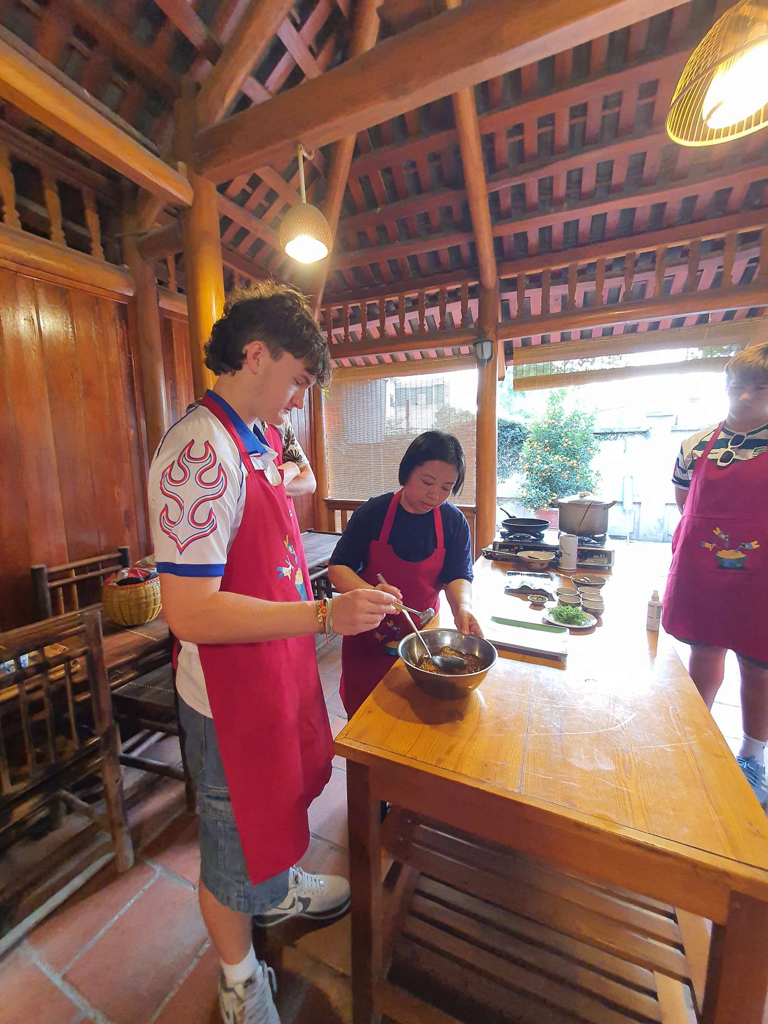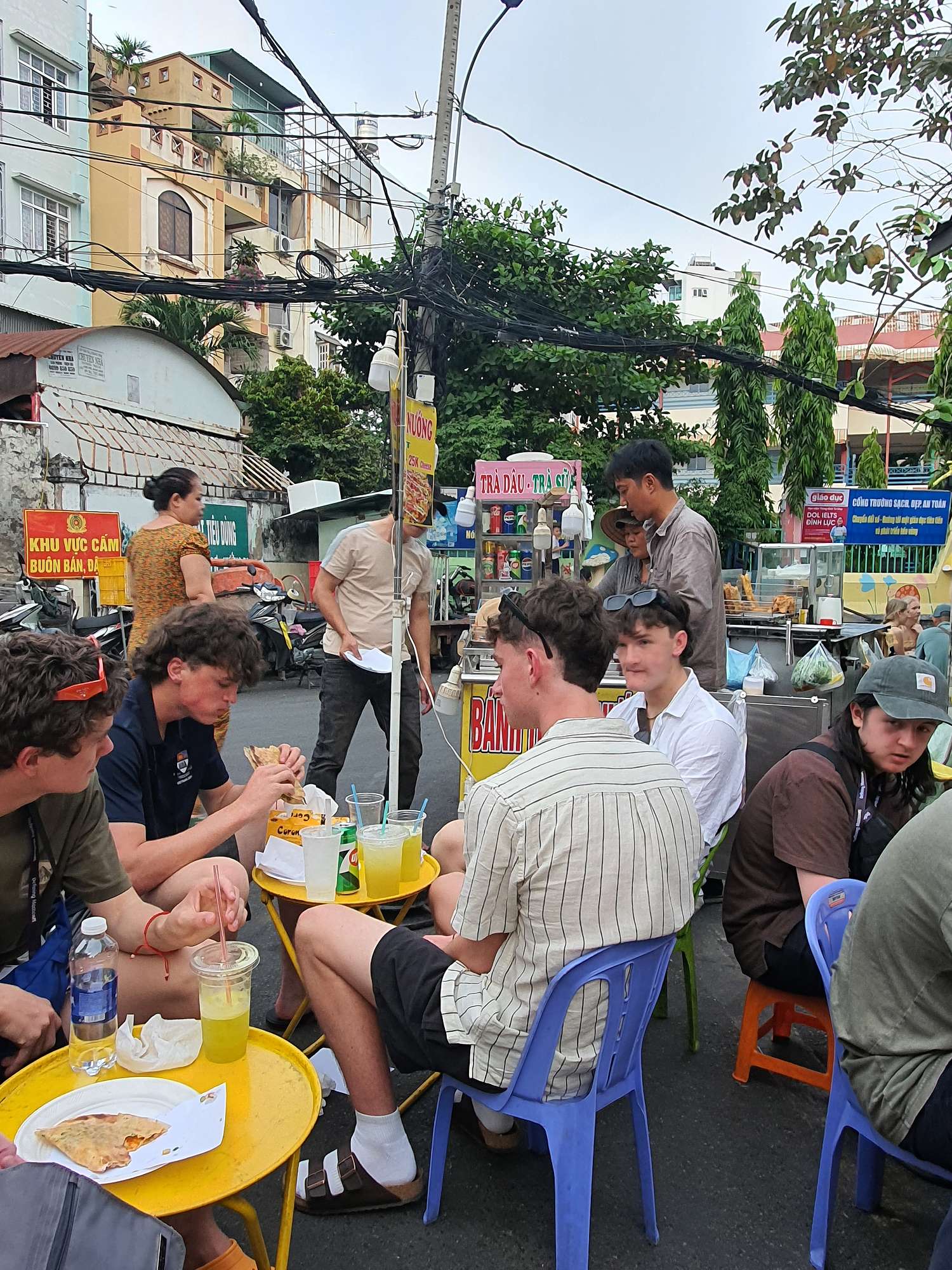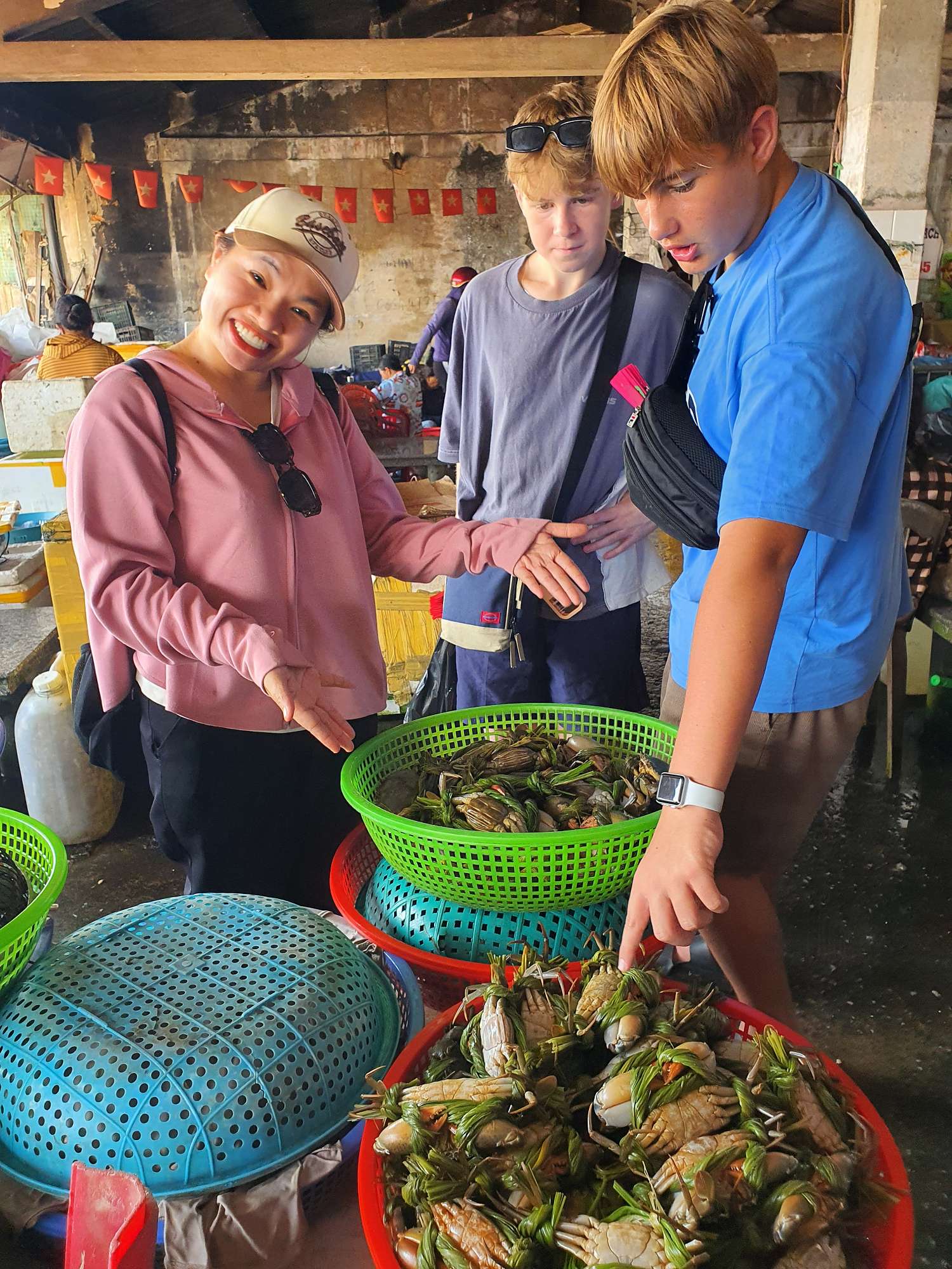 We ended the day with a street food tour, where we tried Vietnamese pizza and pancakes. The boys had a great time at Bến Thành Market, enjoying the hustle of bartering and browsing the endless stalls of football shirts, sunglasses, and handbags.