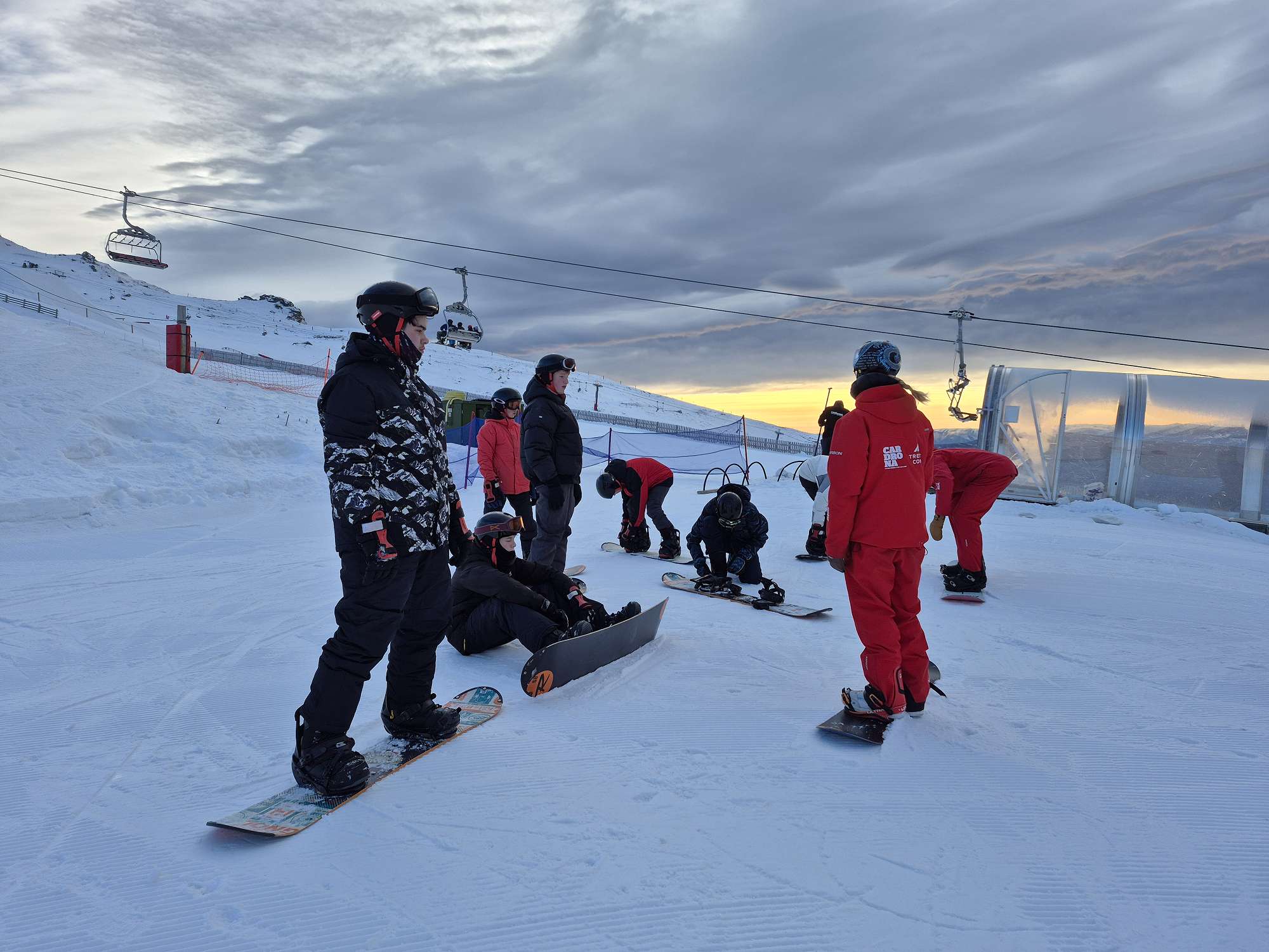Cardrona had considerably more snow than the surrounding mountains, and the still weather and warm sunshine added to the overall enjoyment. Photos and videos of happy students are evidence of the fun had by all.