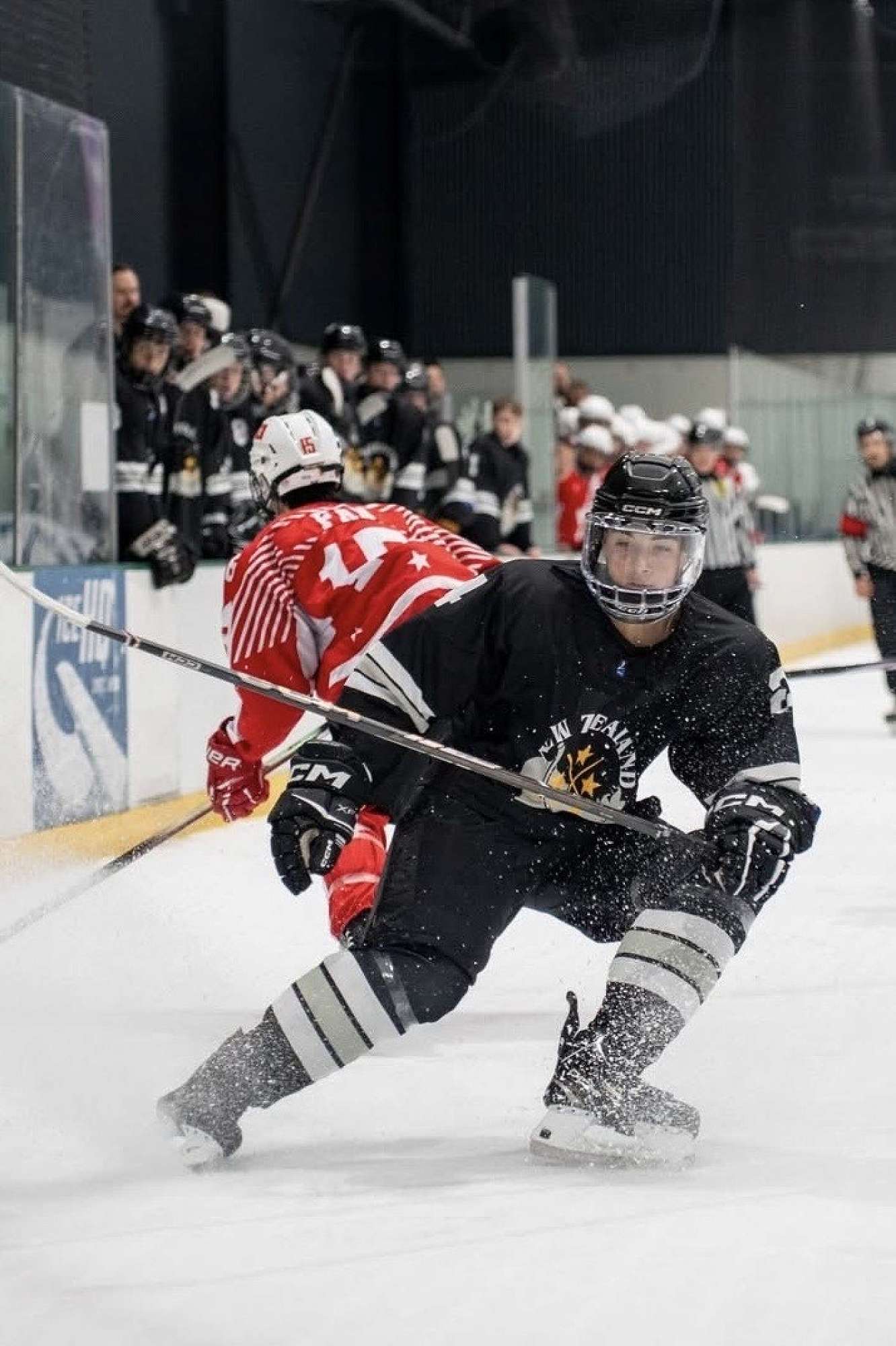 "Our trip to Melbourne to represent New Zealand in ice hockey was an unforgettable experience. Traveling with our team filled us with pride and excitement as we wore the New Zealand jersey and stepped onto the ice against tough Australian and Hong Kong Teams. The atmosphere in the rink was intense, but it pushed us to play our best and support each other. Competing at that level showed me how much teamwork and dedication matter, and it made me even more determined to keep improving and represent our country."
