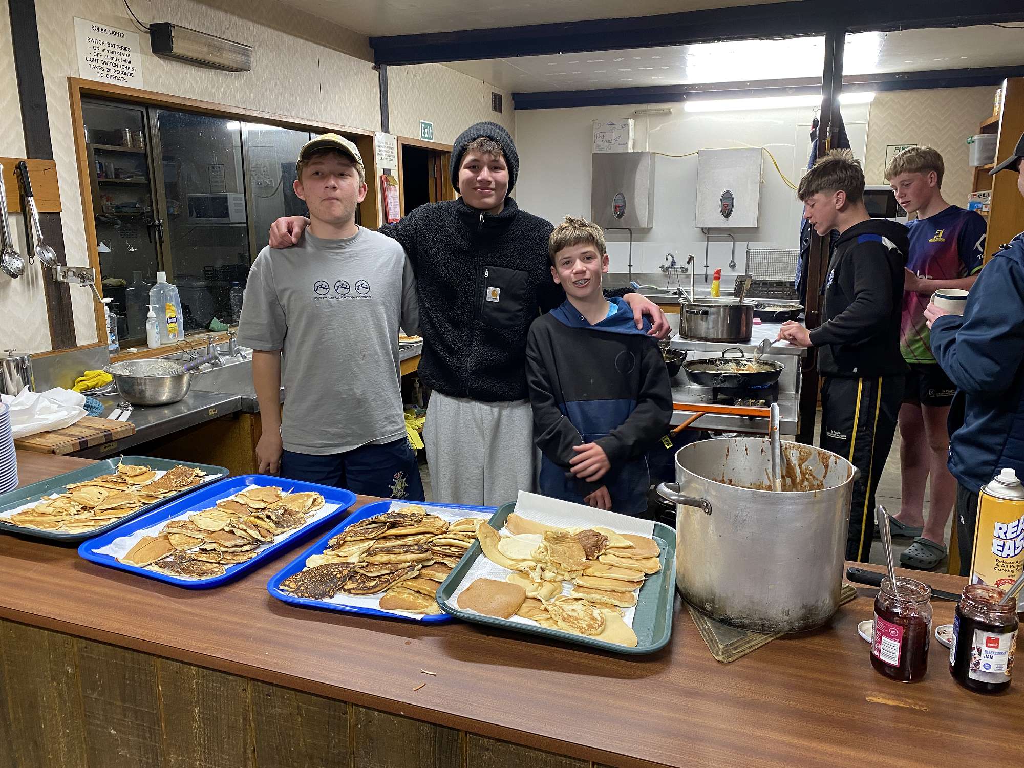 After a morning of getting chores done and sorting out overnight equipment, the rest of Thursday was devoted to some kayaking, orienteering, and a whole lot of eating. As if the huge pot of stew wasn’t enough, Zac and his team whipped up a large batch of pancakes for dessert.