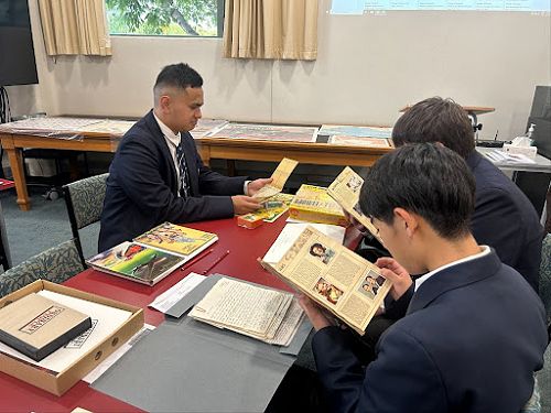 We thank the Hocken Library staff for their hard work in pulling together such a great range of materials for the boys to explore, for hosting us, and for providing such a valuable educational experience.