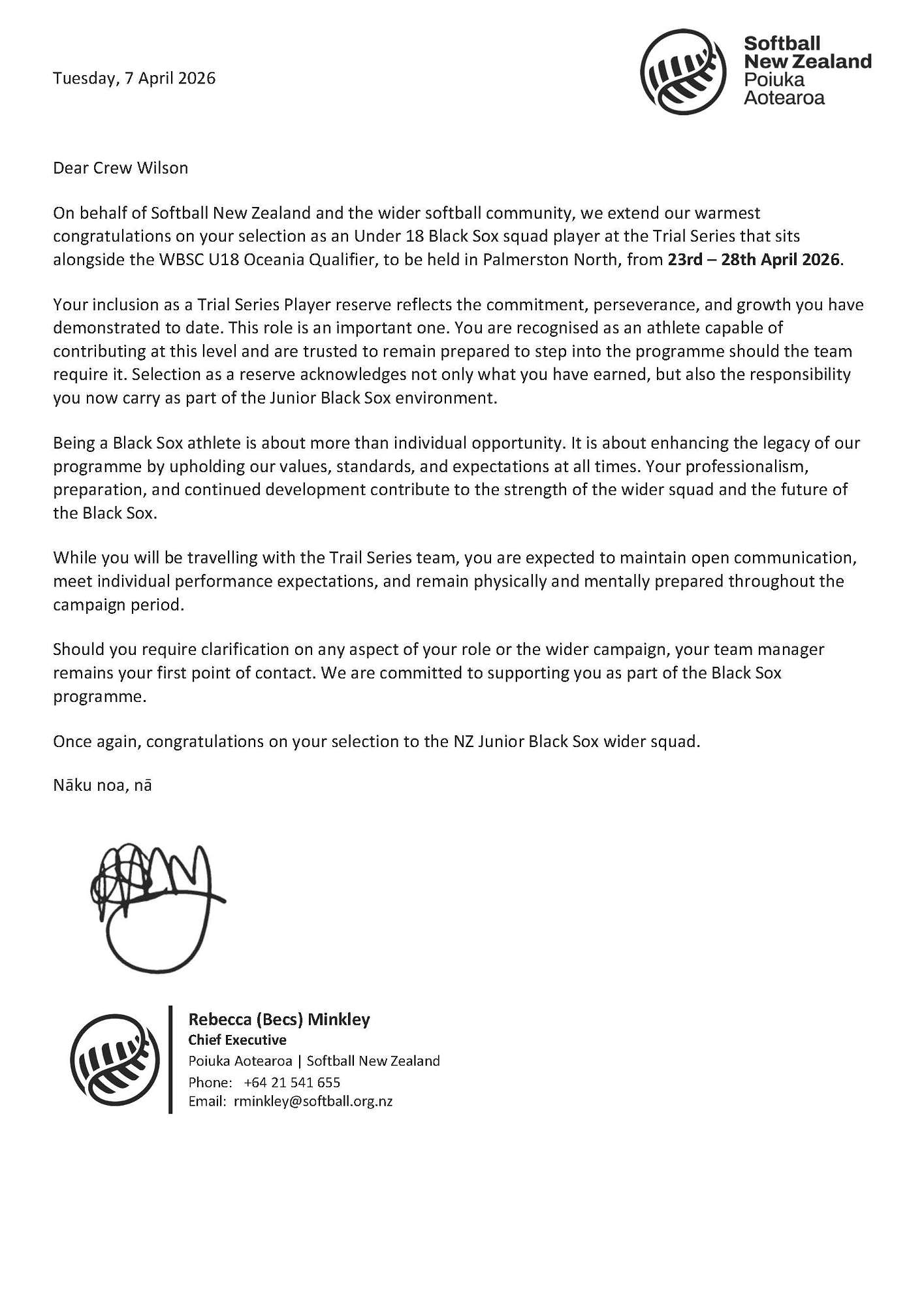 While Crew is competing up north, his whānau, friends, and the entire Southern Magpies Softball whānau are cheering him on from the sidelines and from home.
