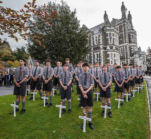 We extend our sincere thanks to our honoured guests and the musical contributors who made the service so moving: our school choir, violinist Mathew Campbell (Year 12), piper Gus Carr, pianists Sunny Jiang (Year 13) and Sharon McLennan, Choir Director Mr John Buchanan and Mr Konrad Hanson. A stirring rendition of the Last Post was performed by Oban Voice (Year 13).